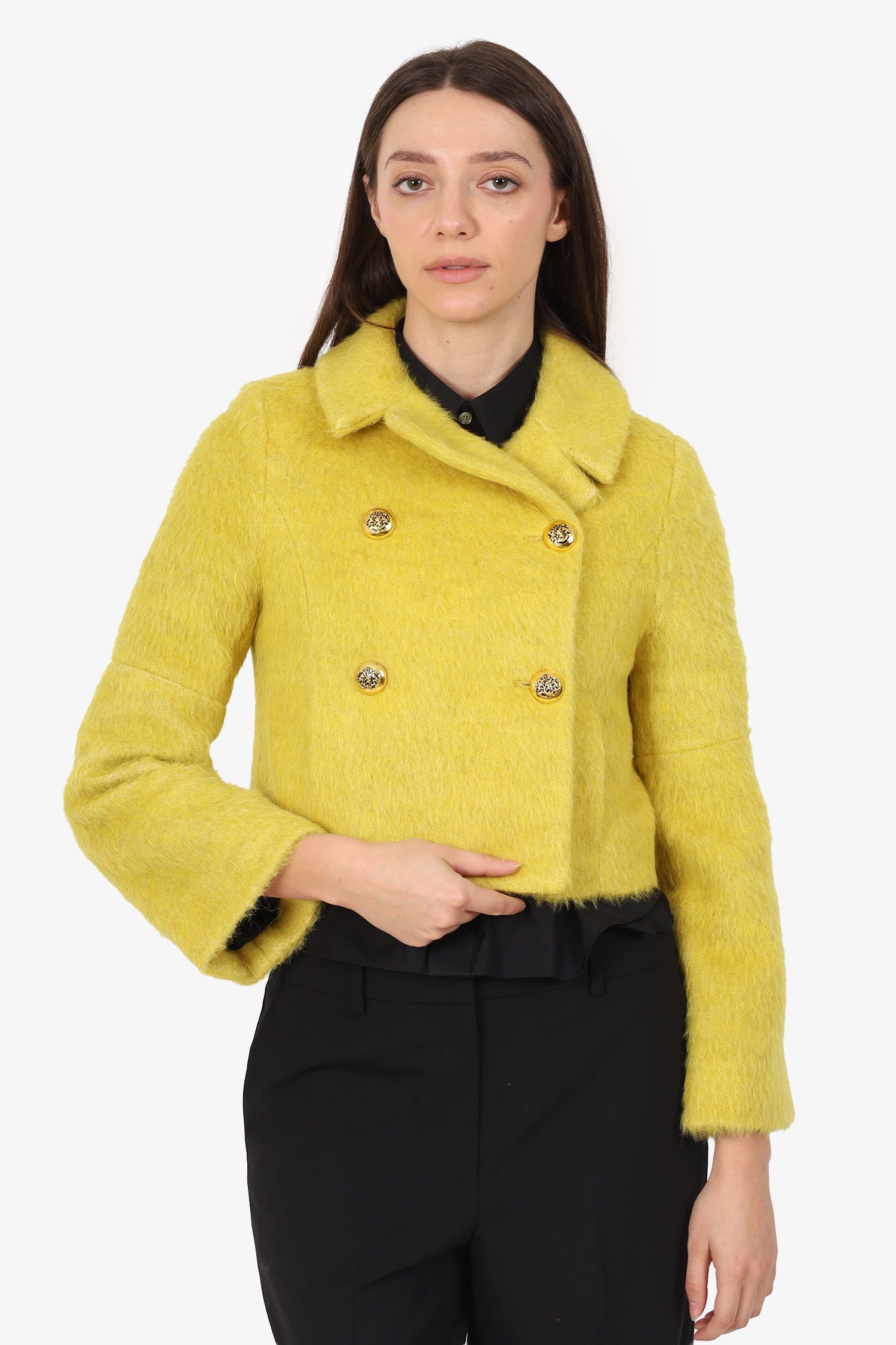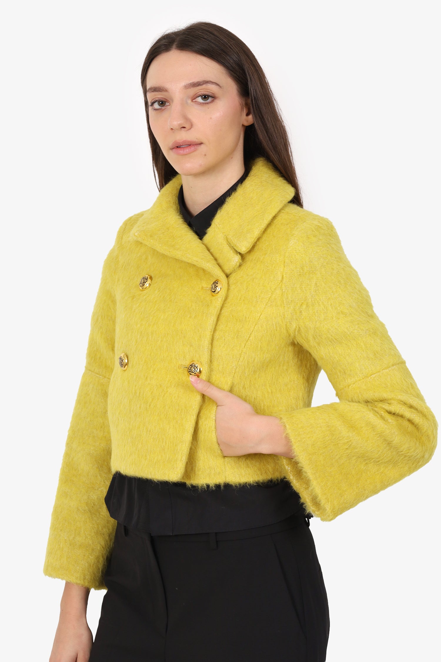 Refresh availabilitySmythe Green Wool/Alpaca Cropped Blazer. Pull-on. Notch lapel. Front button-up closure. 2 exterior front slip pockets. Lined interior. Gold-tone hardware. Tonal stitching.