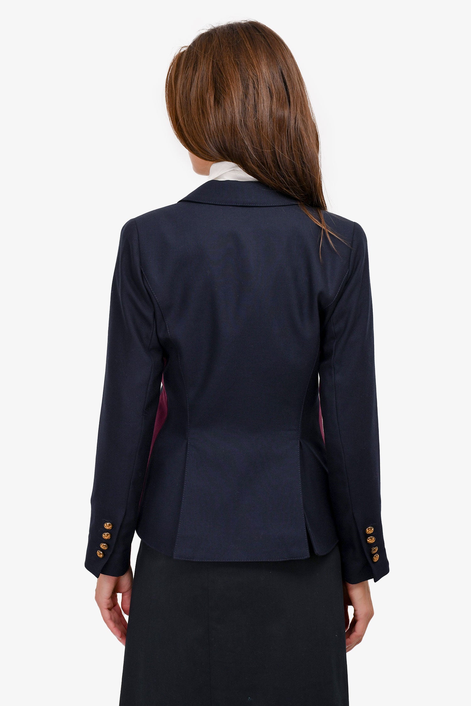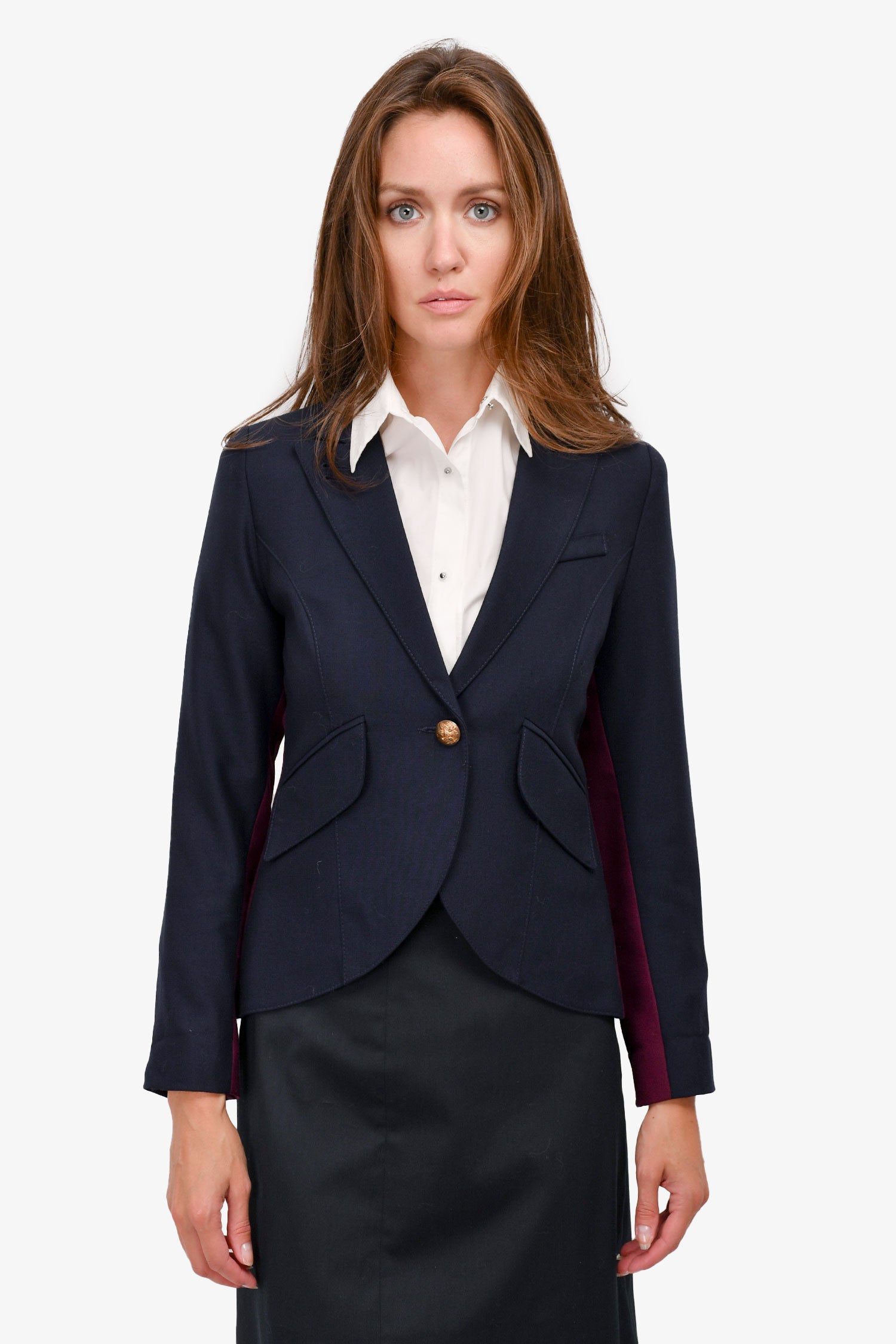 Smythe Navy/Burgundy Virgin Wool Single Breasted Blazer Size 6