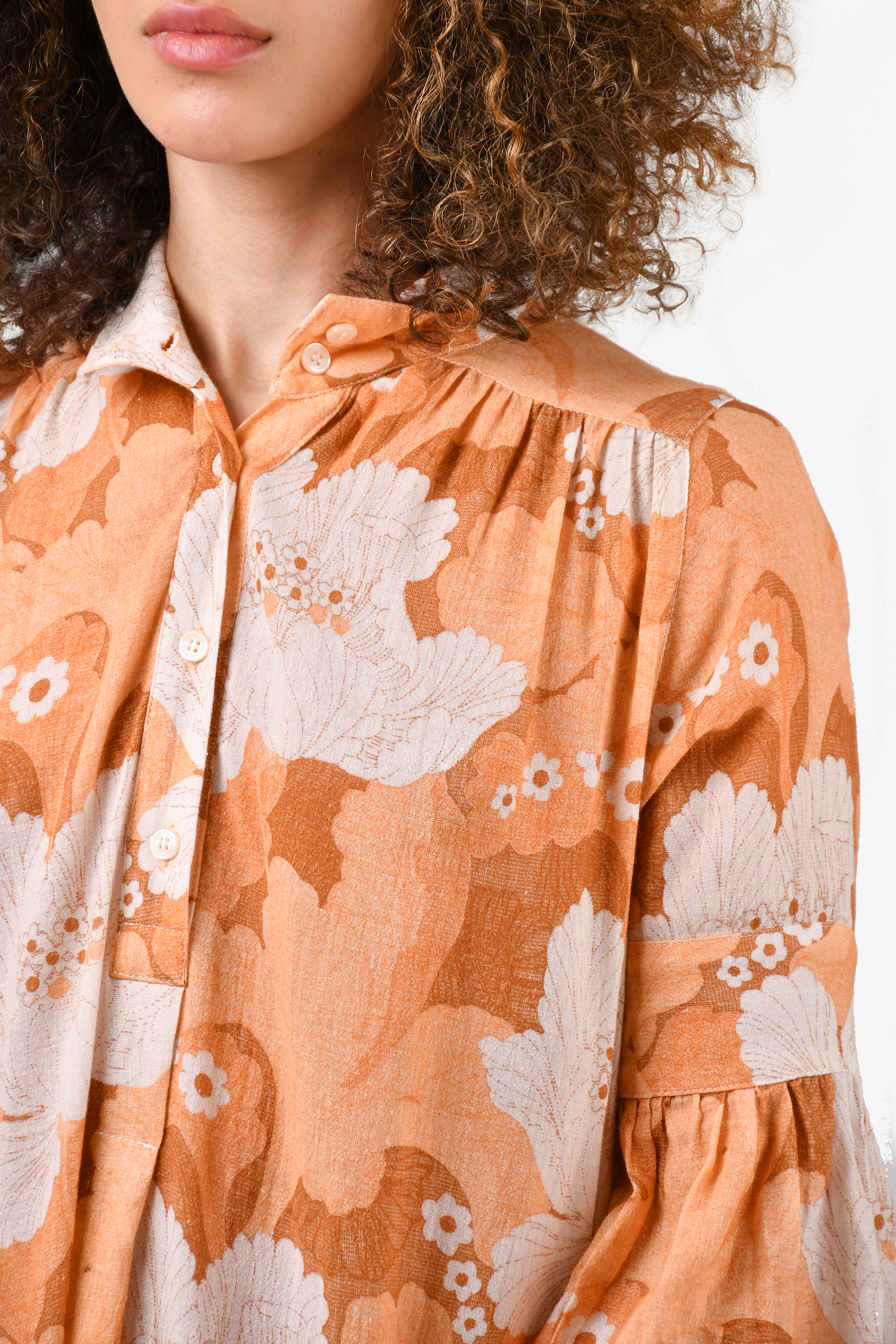 Refresh availabilitySmythe Orange/White Floral Cotton Midi Tunic Dress. Front button-up closure. Unlined. Tonal stitching.