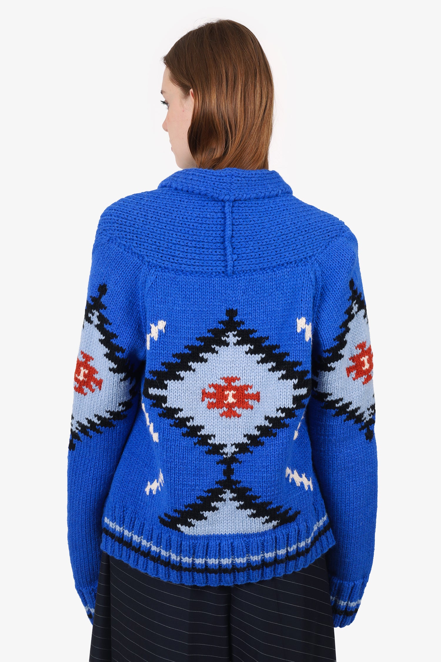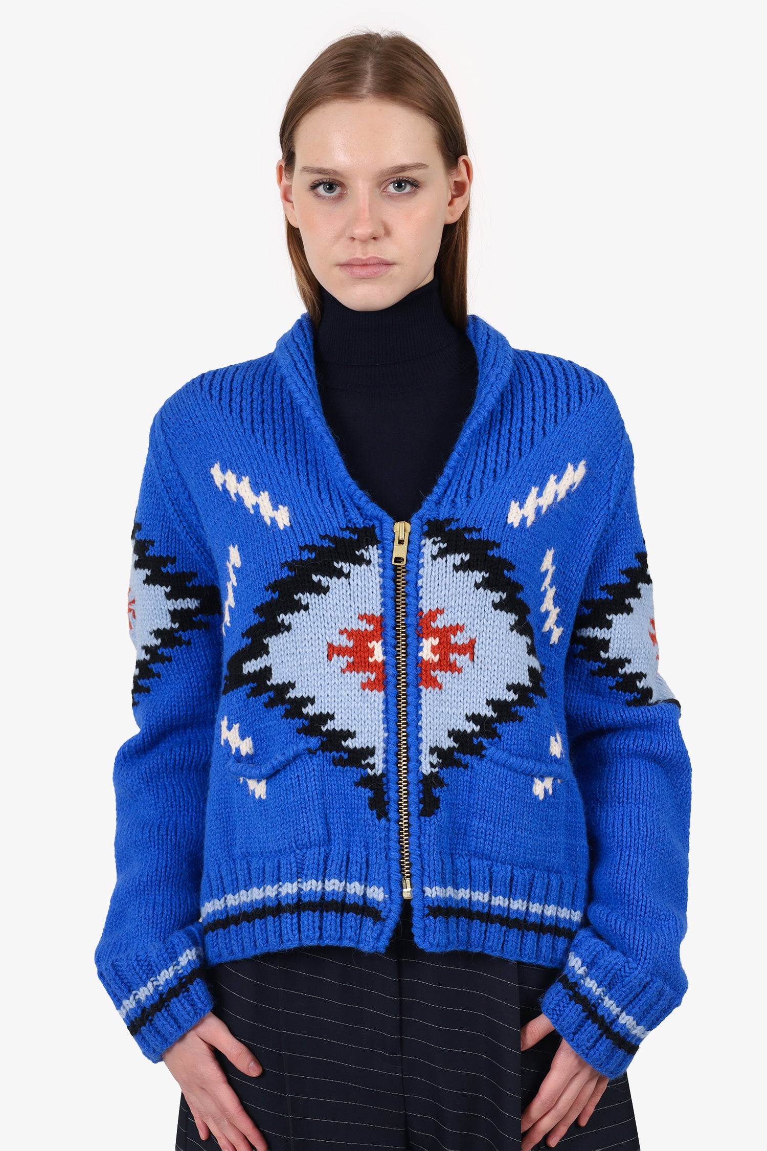 Smythe x Augden Blue Printed Knit Zip-Up Sweater Size L
