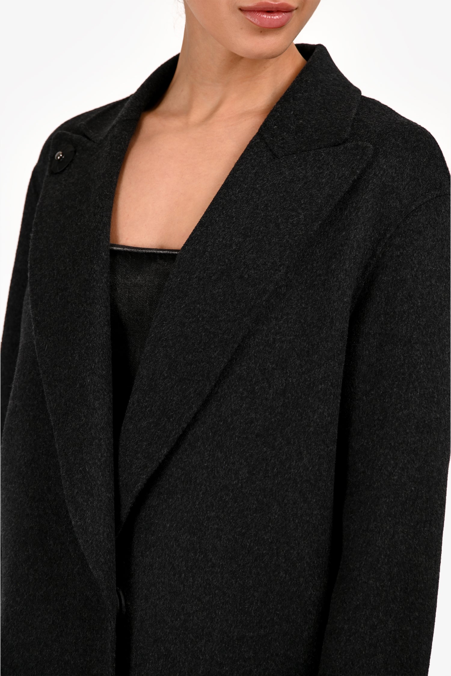 Refresh availabilitySofie D’Hoore Grey Wool Long Coat. Slip-on. Front button-up closure. Notched lapel neckline. 2 exterior slip pockets. Unlined. Tonal stitching.