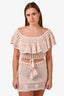 Spell Cream Crochet Ruffle Front Tie Top + Matching Mini Skirt Size XS