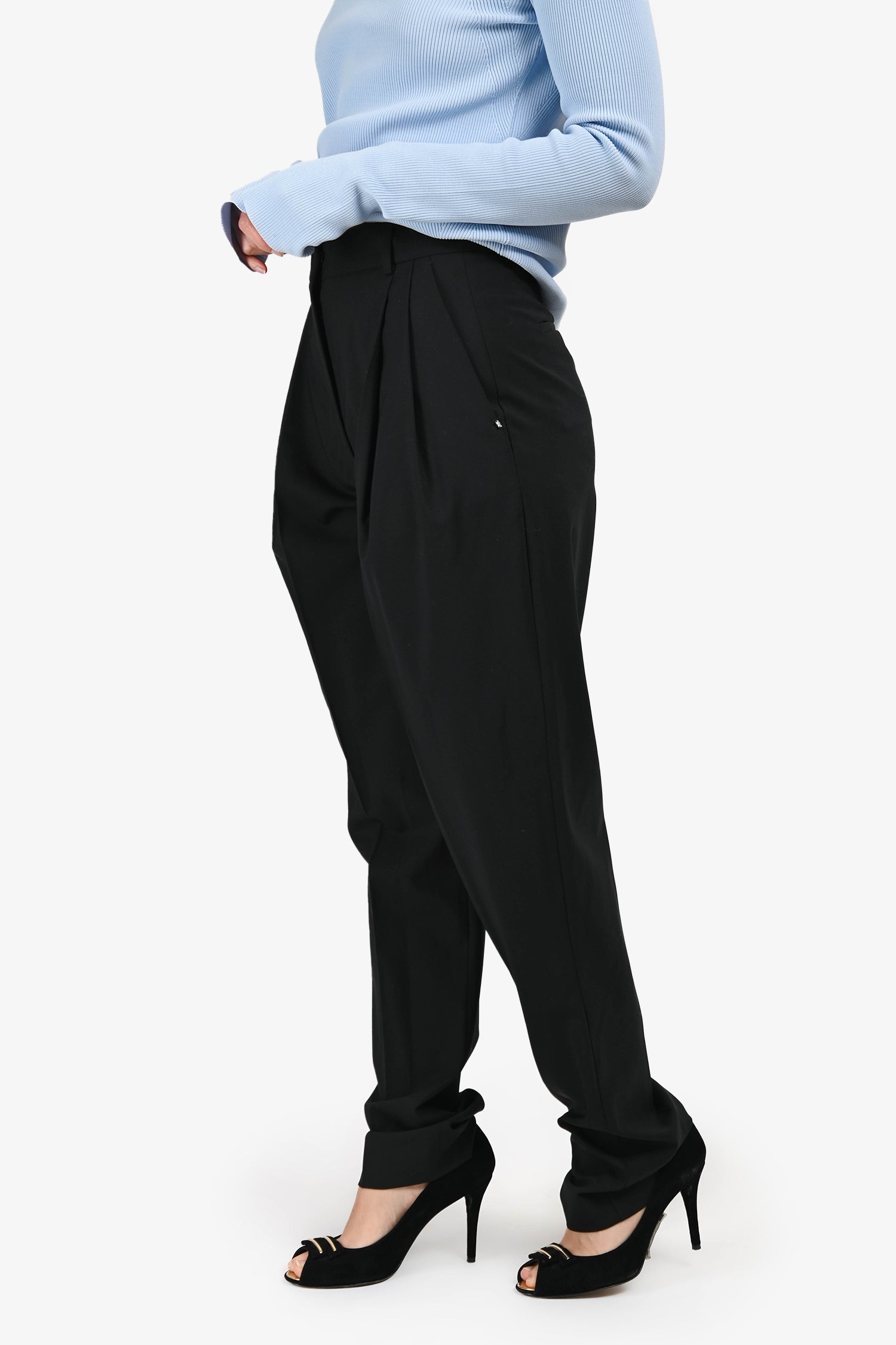Refresh availabilitySport Max Black Wool High Waisted Trousers. Pull-on. Front zip, hook and button closure. Waistband belt loops. 4 exterior pockets; 2 front slip, 2 rear slip. Tonal stitching.