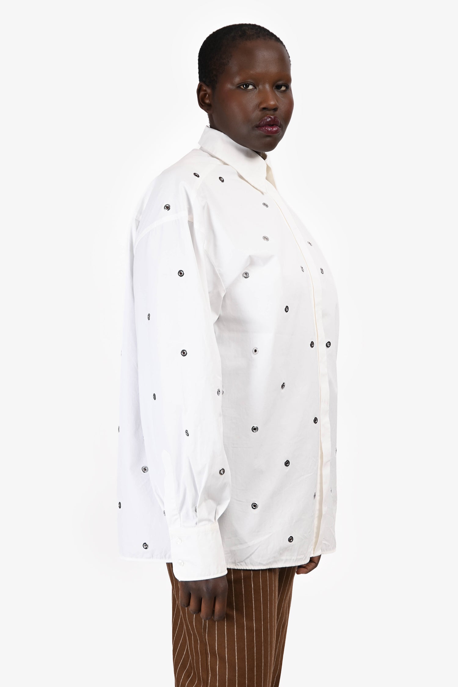 Sportmax White Cotton Grommet Button Down Shirt Estimated Size 10