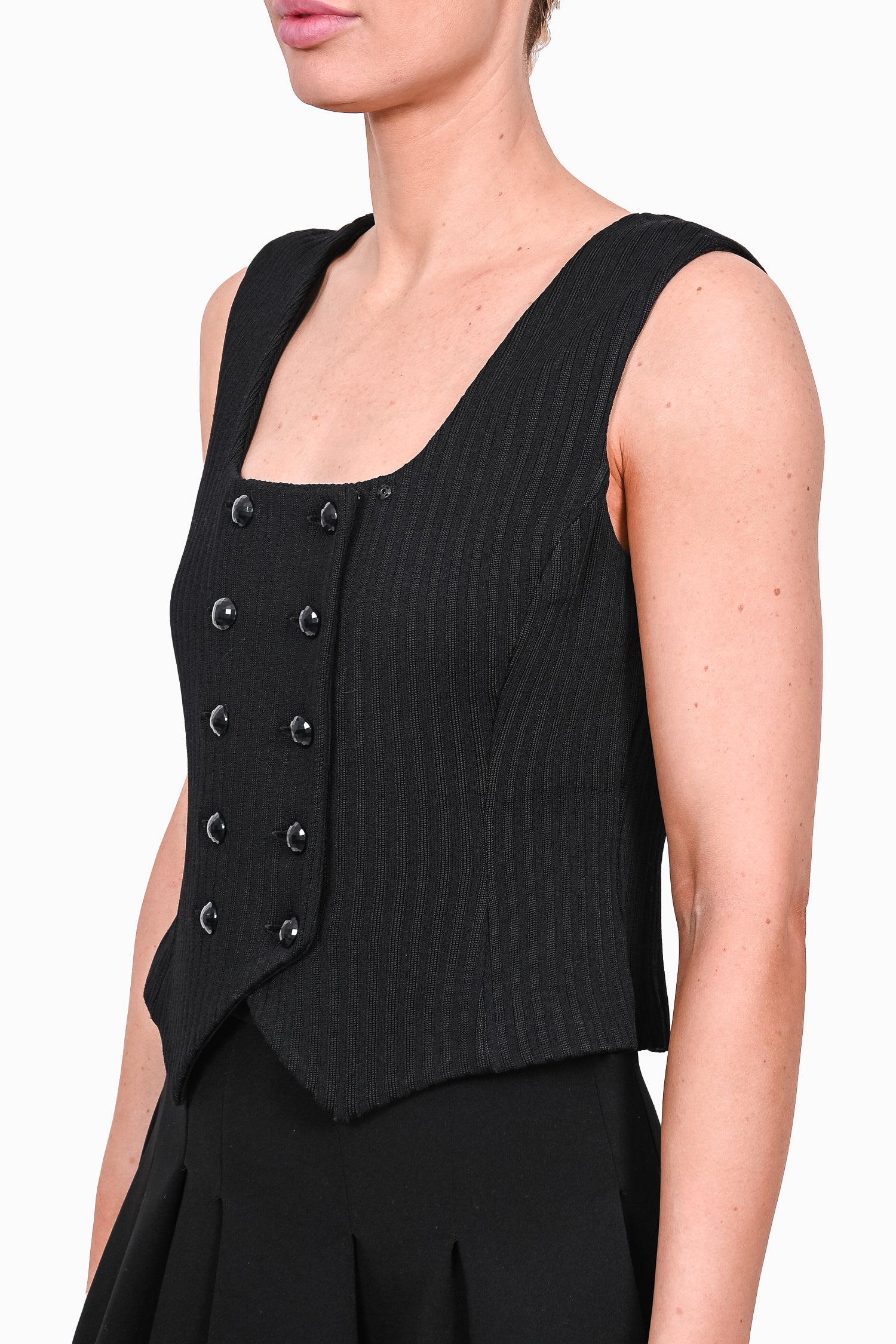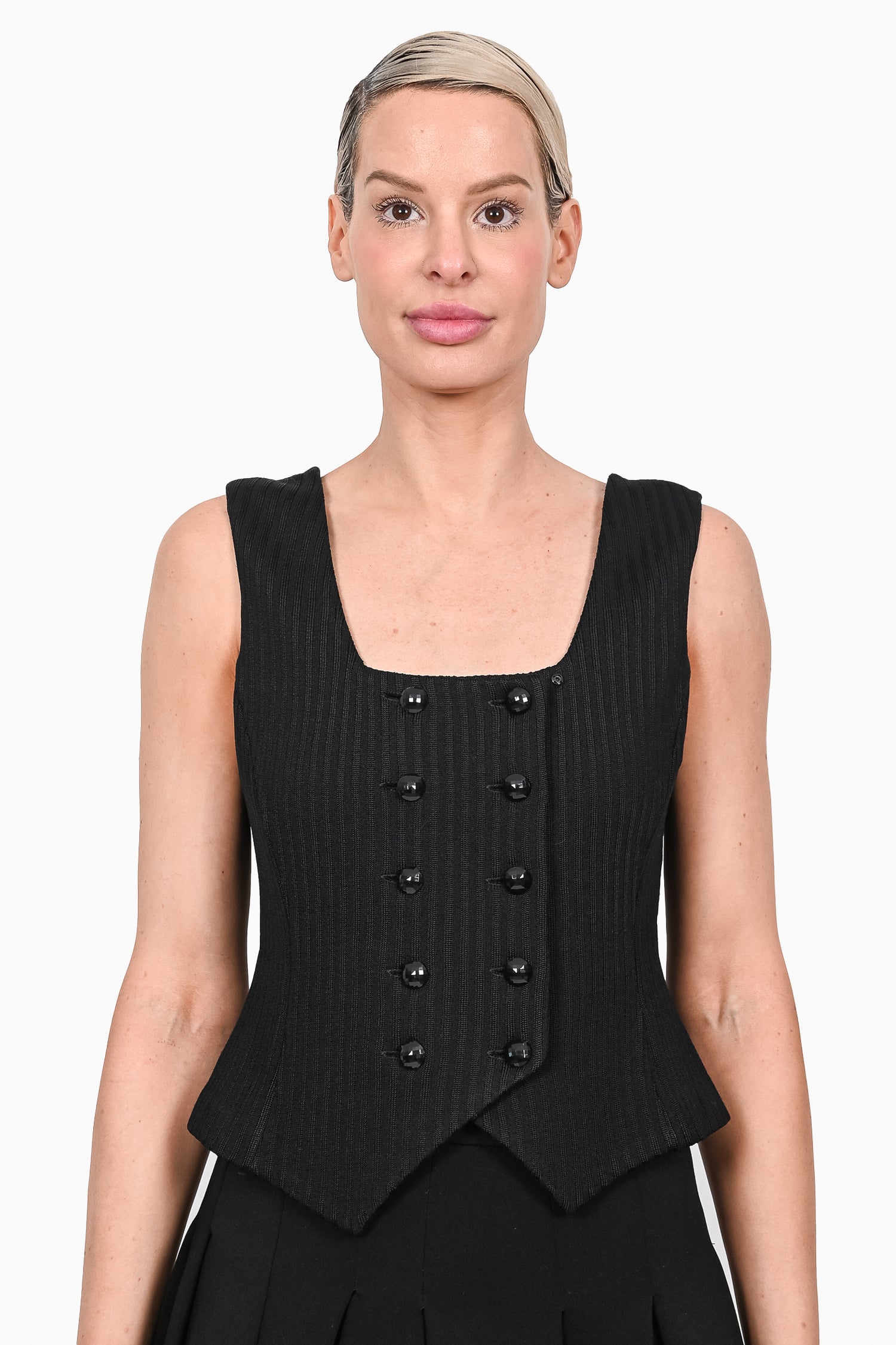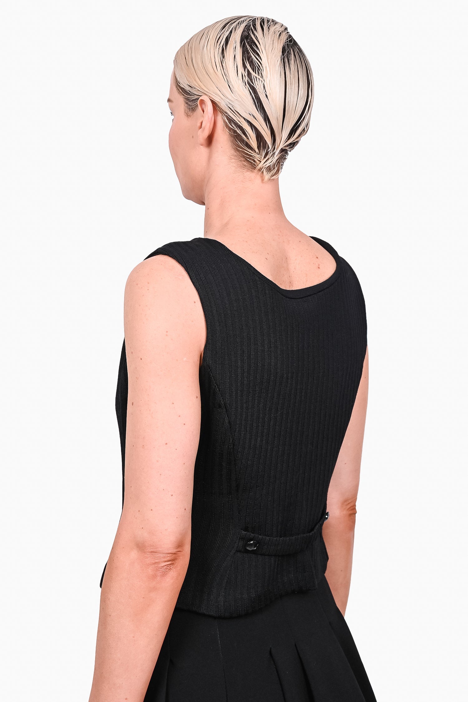 St. John Black Ribbed Buttoned Sweater Vest Size S