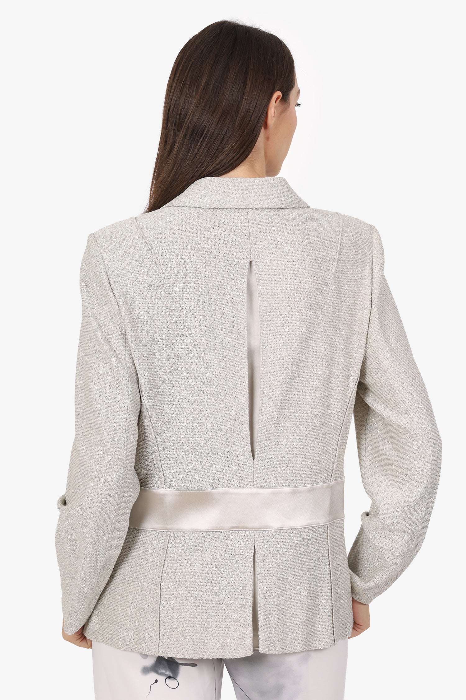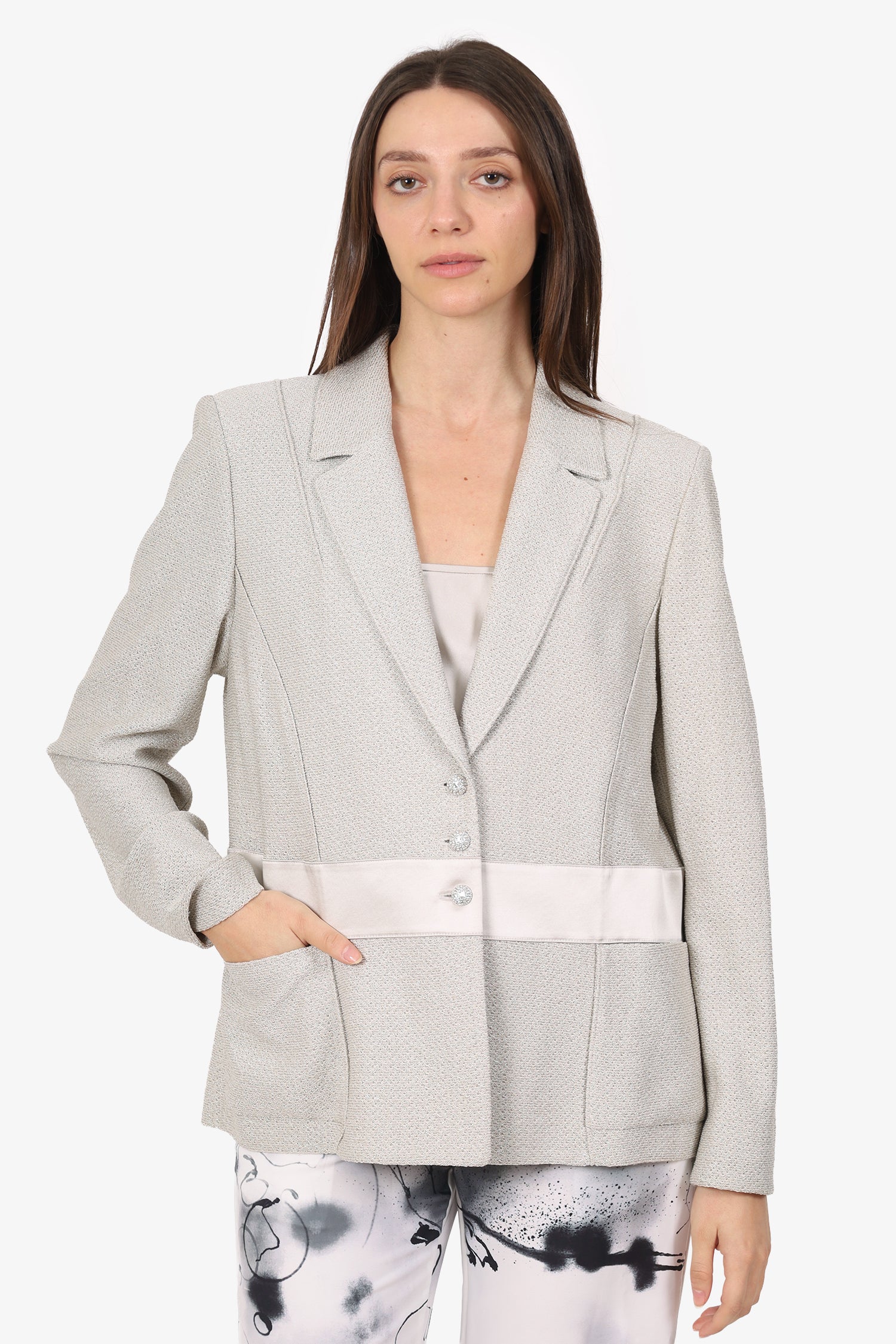 St. John Silver Metallic Crystal Button Blazer With Slip Size L