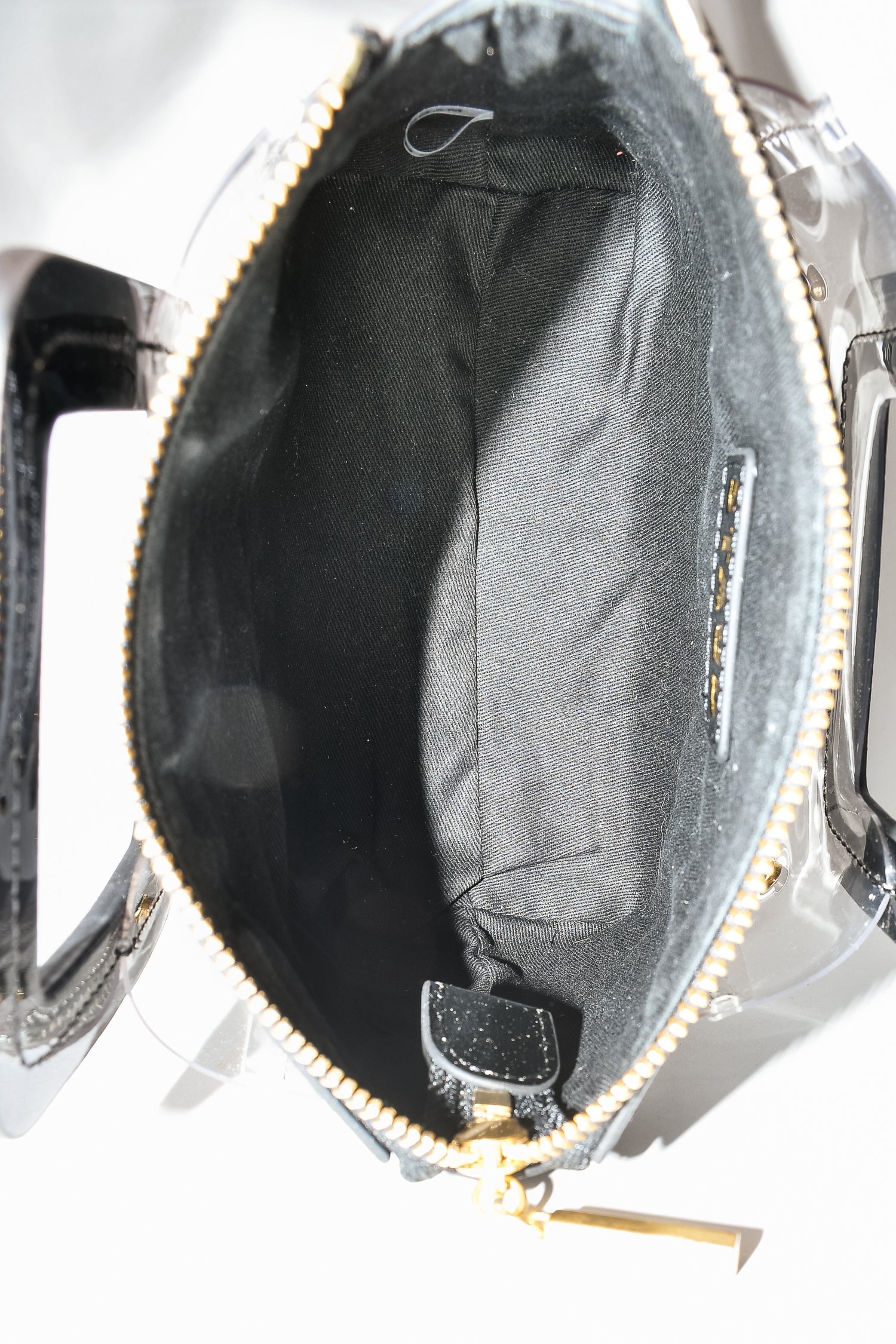 Refresh availabilityStaud PVC Black Leather Trimmed Multicolour Gemstone Top Handle Bag. Twin top handles. Top zip closure. Gold tone hardware. Tonal stitching.