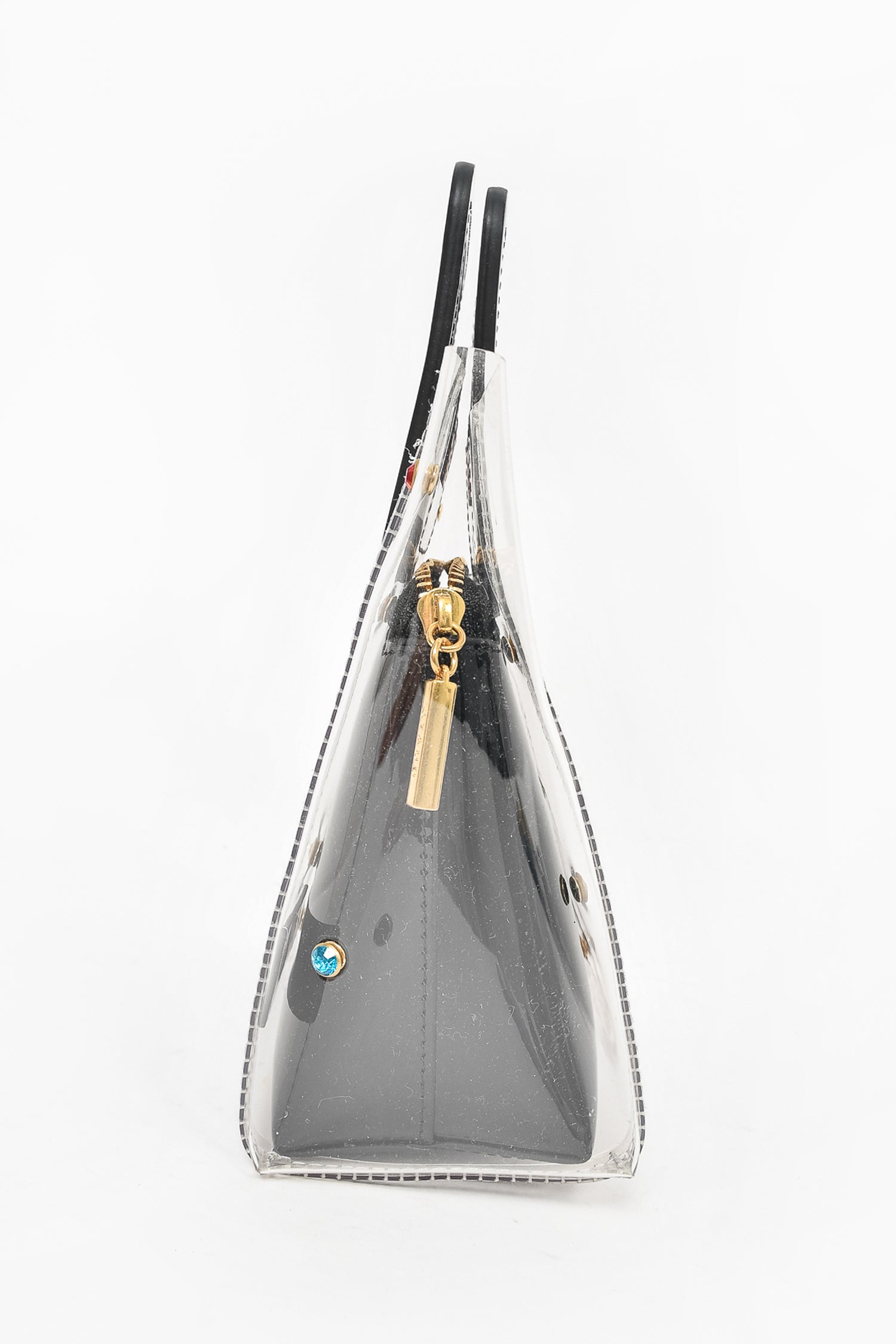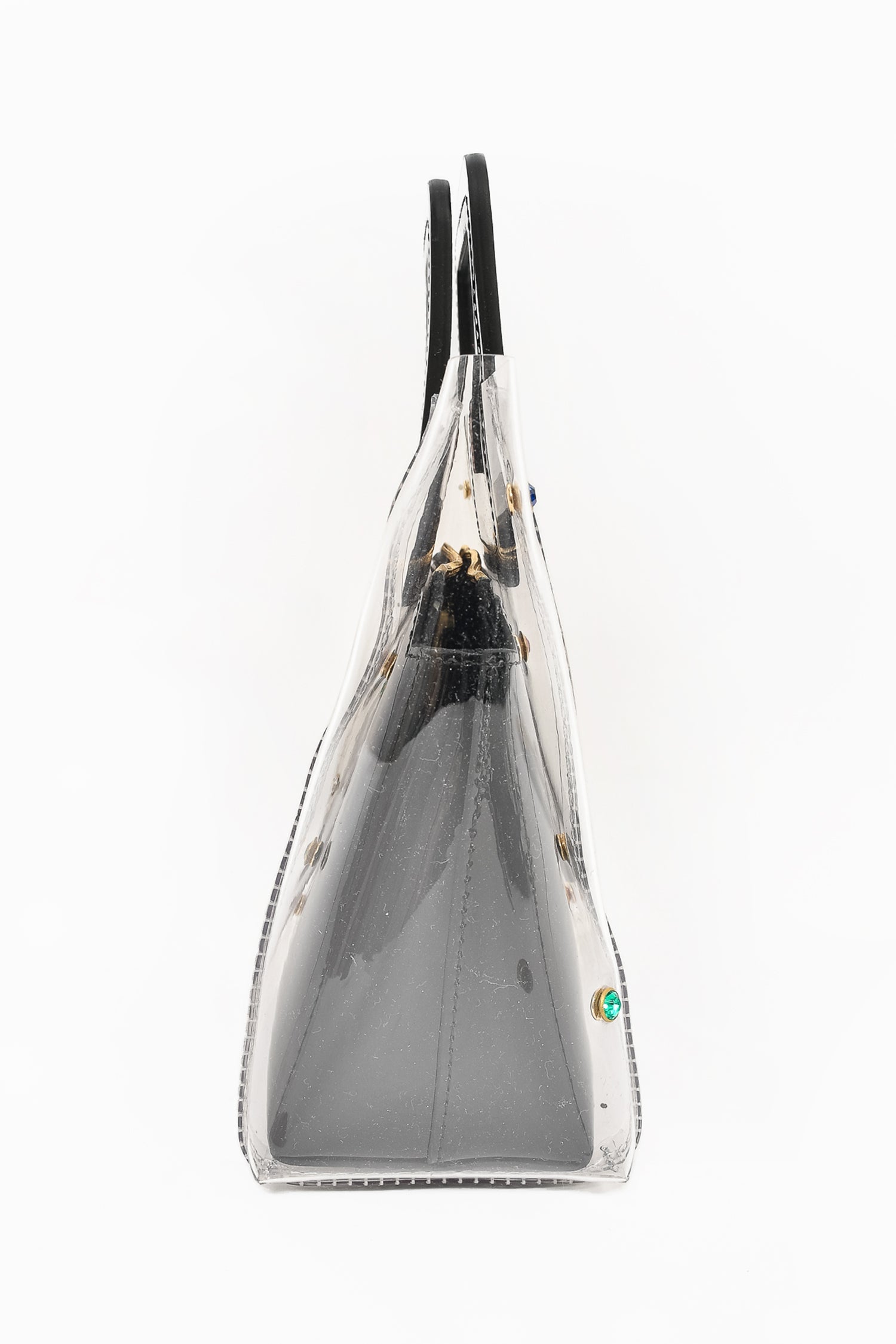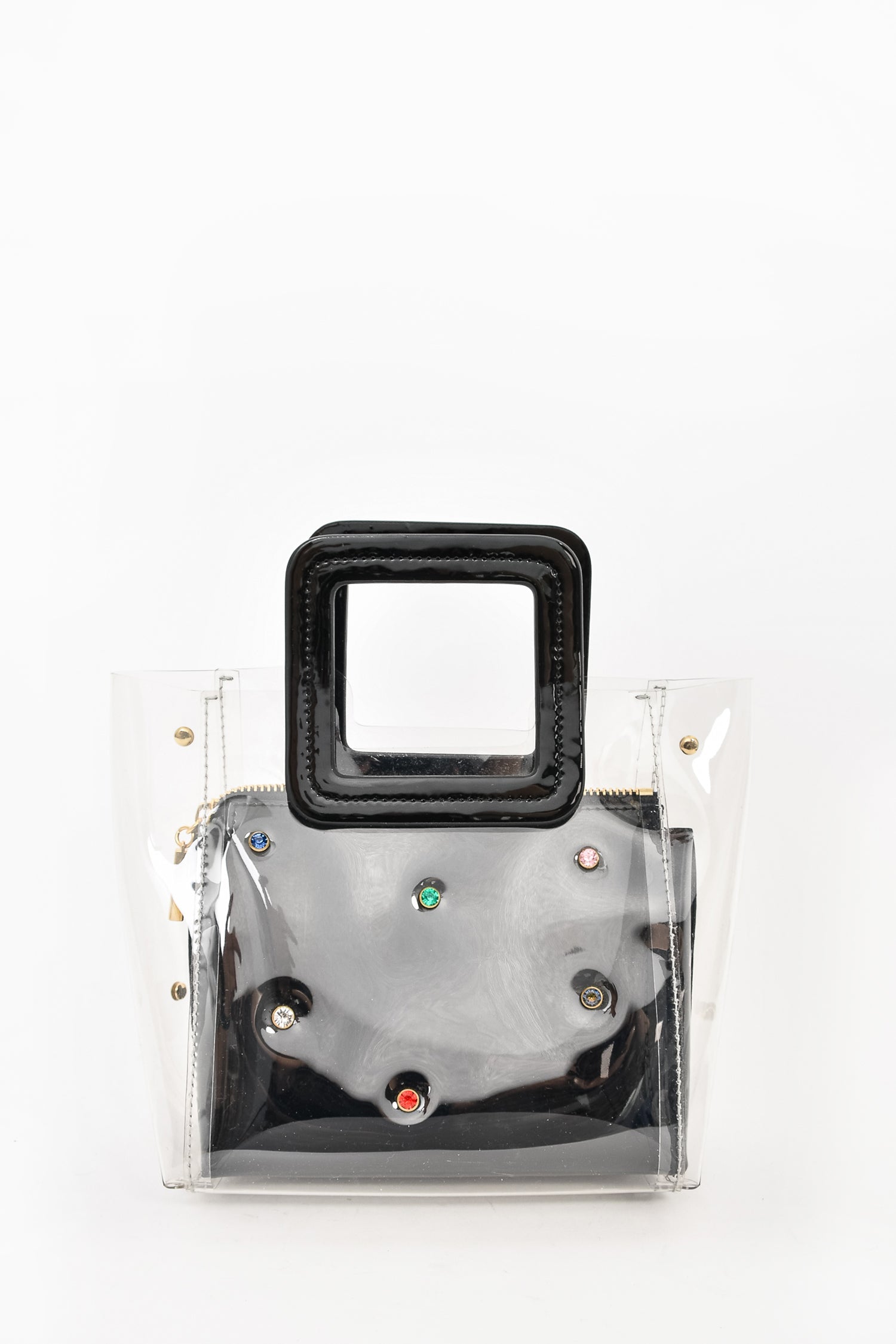Staud PVC Black Leather Trimmed Multicolour Gemstone Top Handle Bag