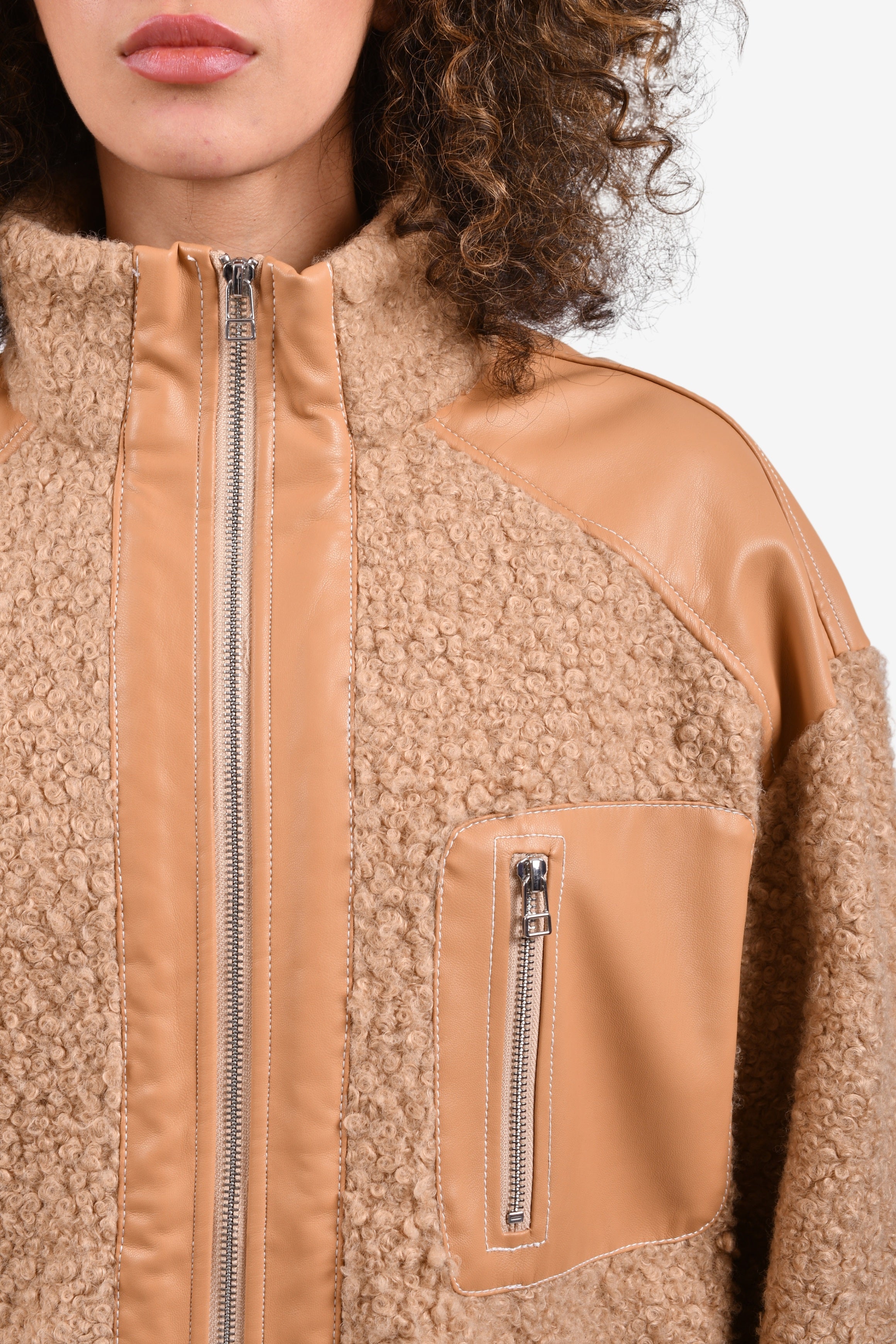 Refresh availabilityStaud Tan Faux Shearling/Leather-Trimmed Jacket. Front pockets. Unlined. Ribbed cuffs. Tonal stitching.