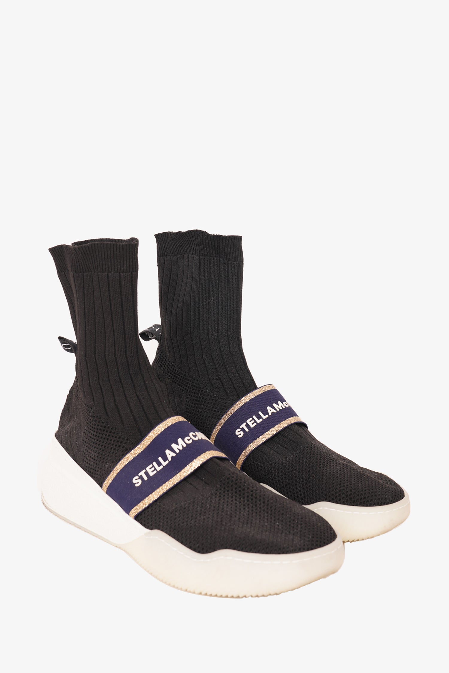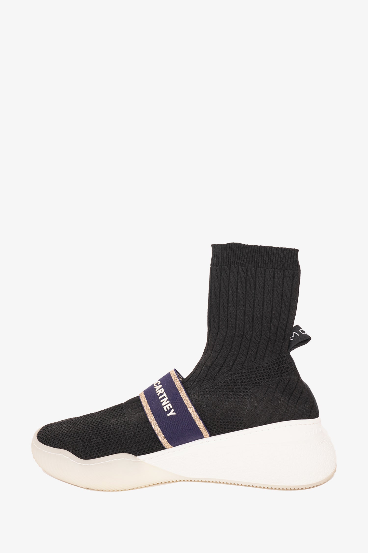 Refresh availabilityStella McCartney Black Sock Sneaker. Round toe. Stretch ankle. Tonal stitching.