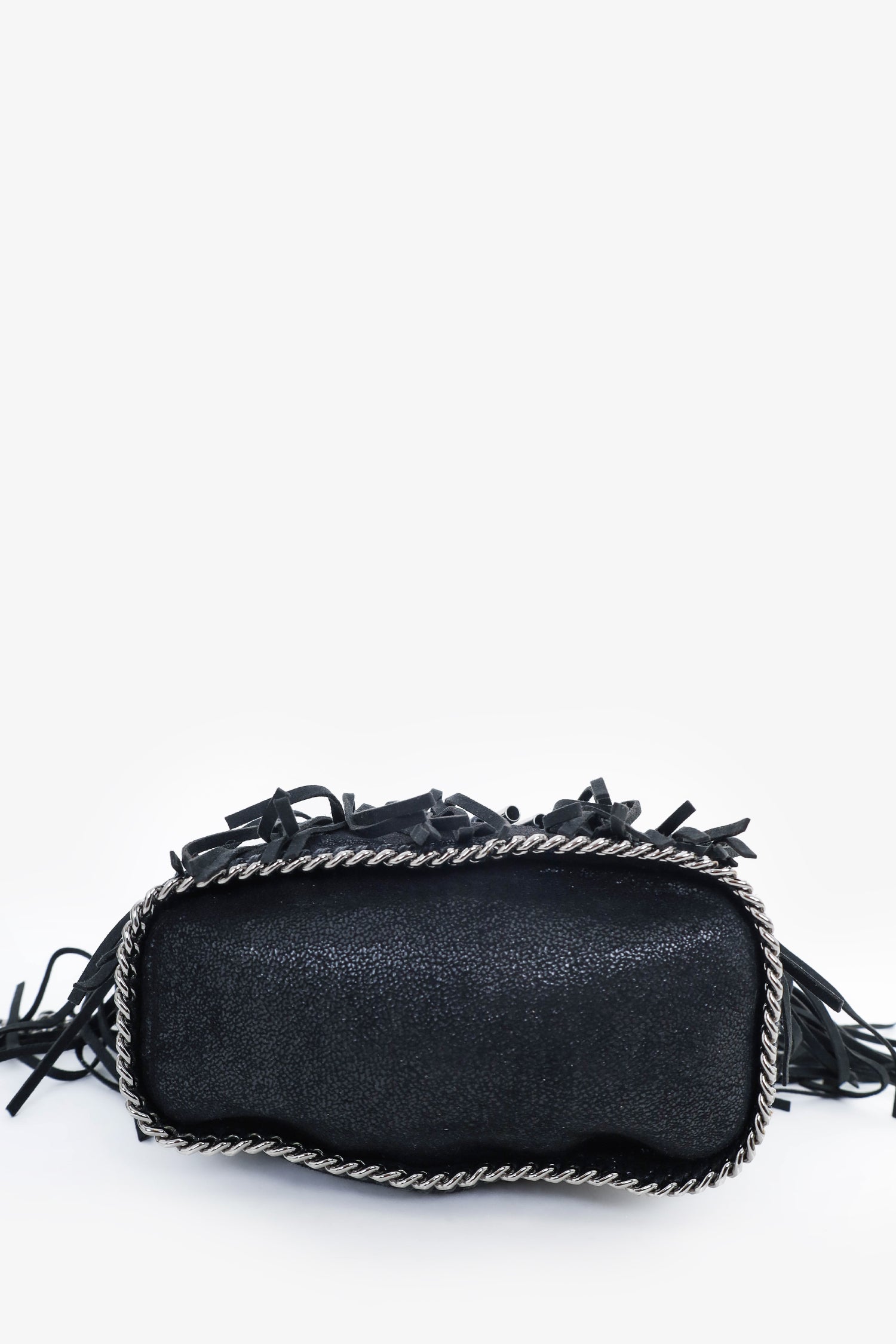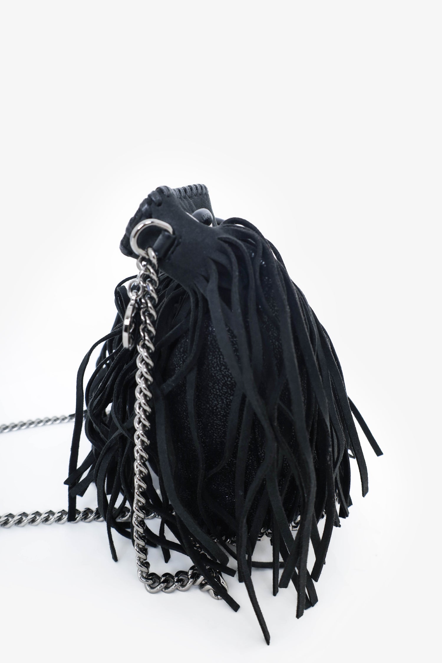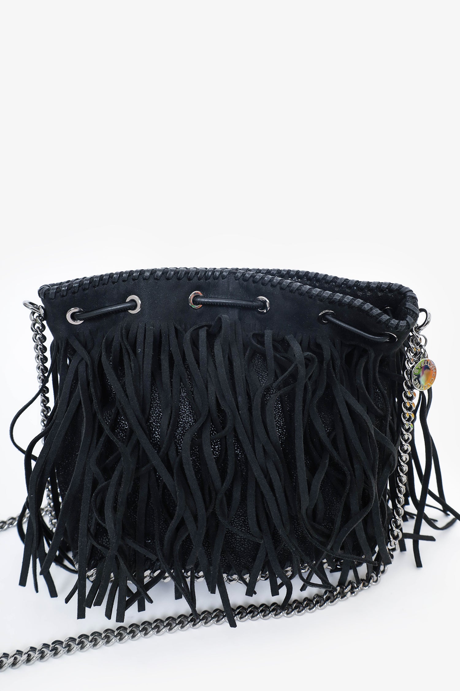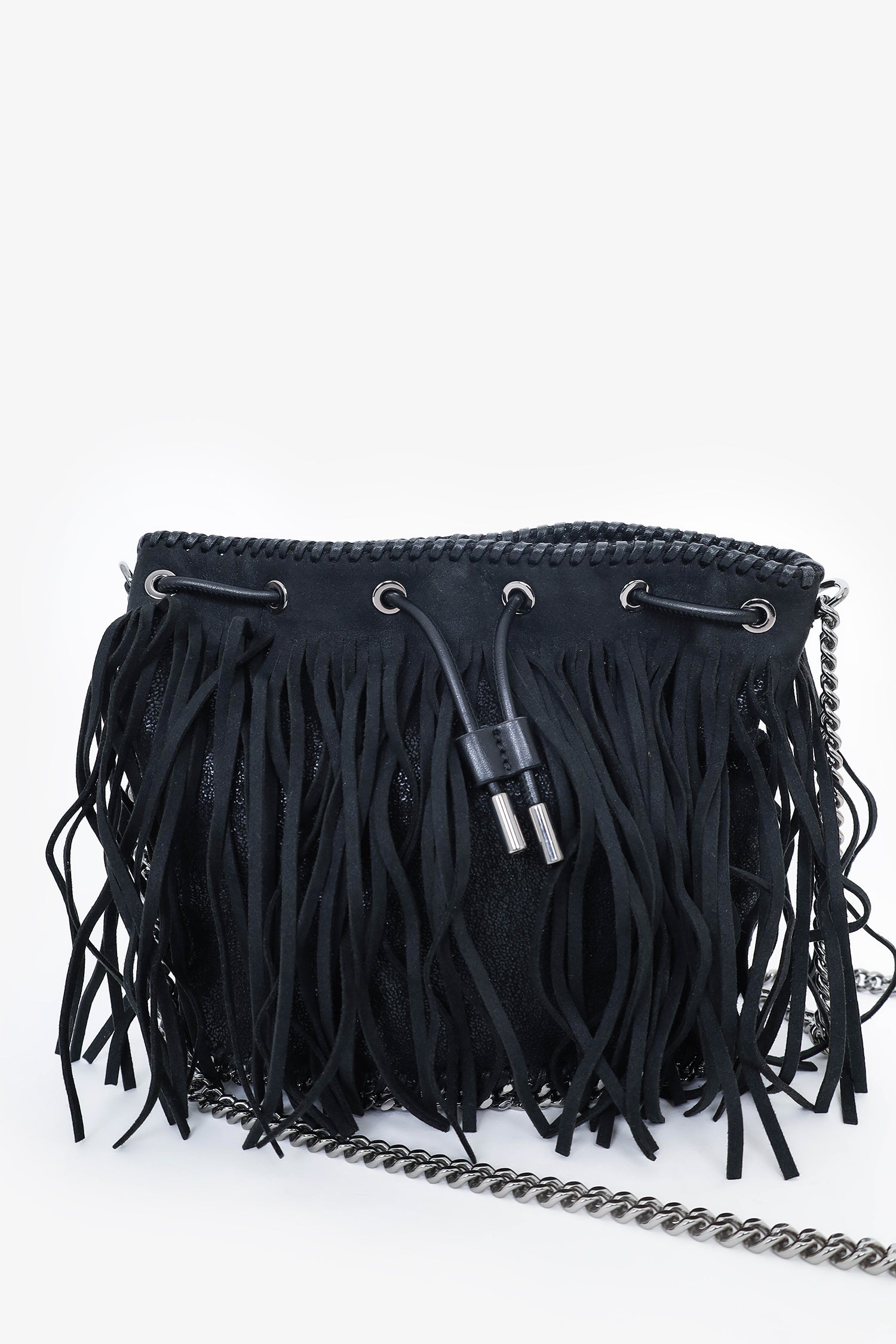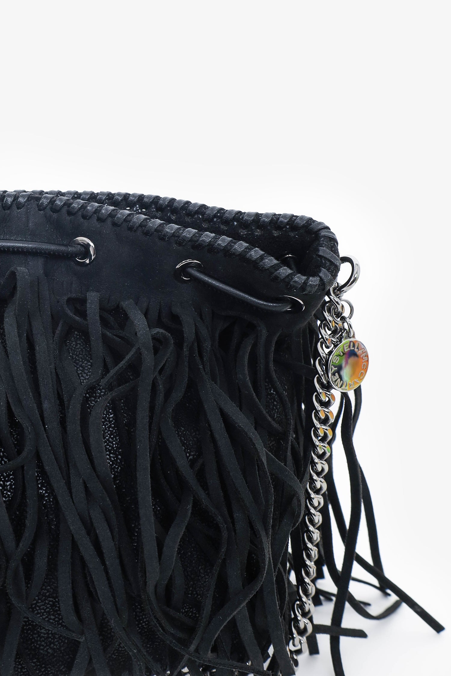 Stella McCartney Black Suede Fringe Falabella Bucket Bag