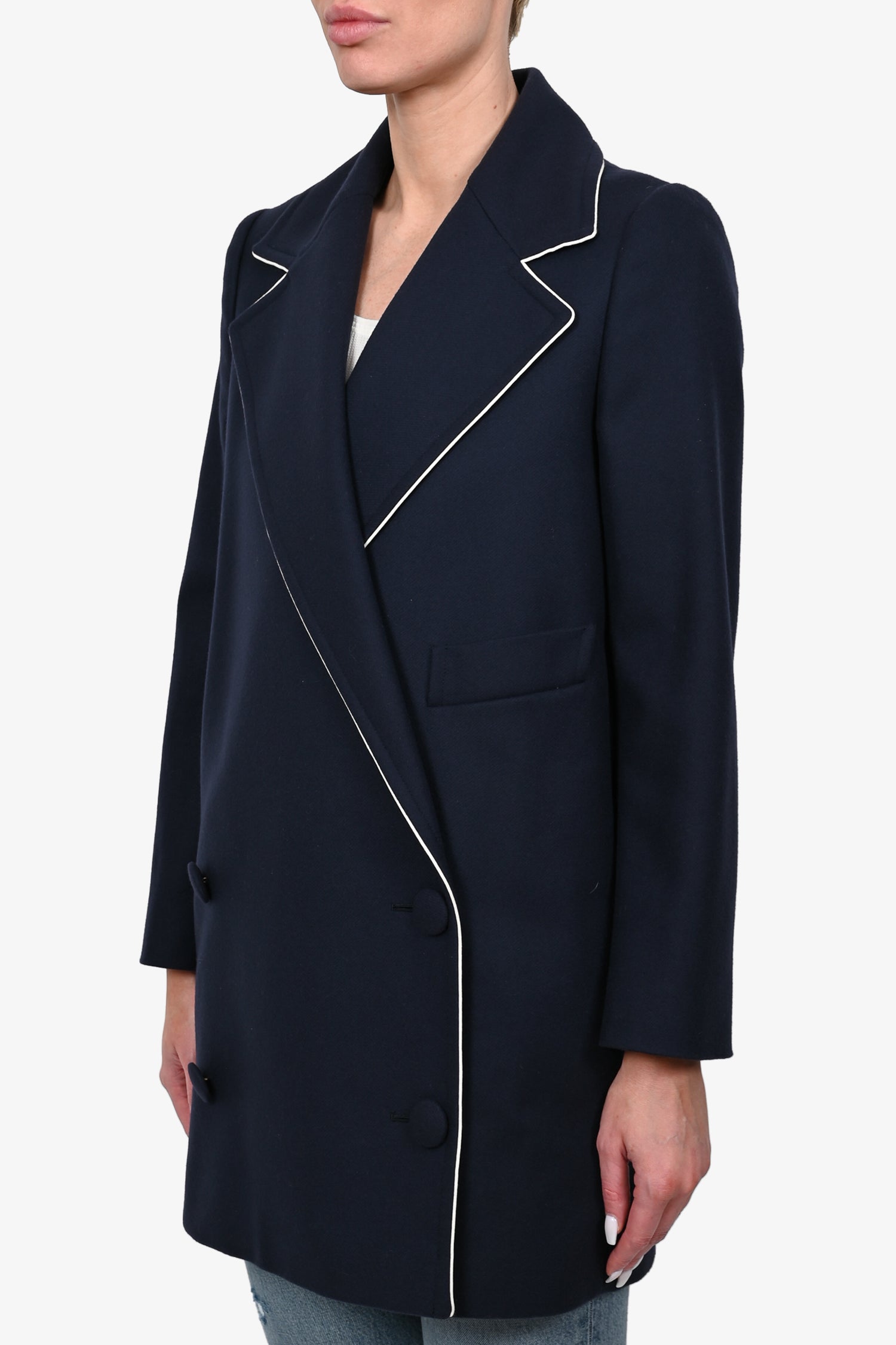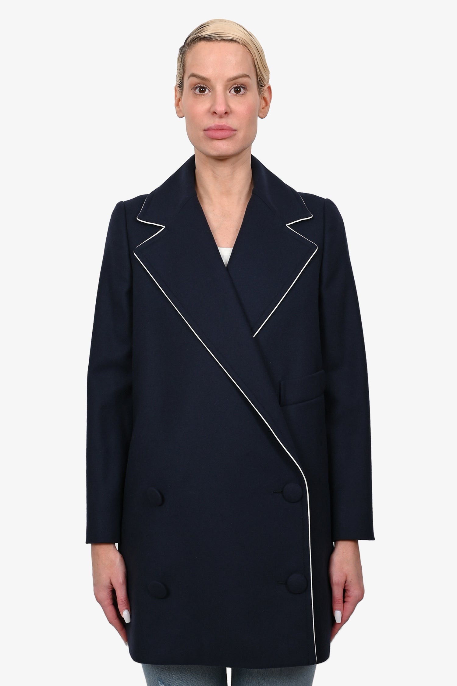 Stella McCartney Navy w/ White Piping Wool/Cashmere Coat sz 42