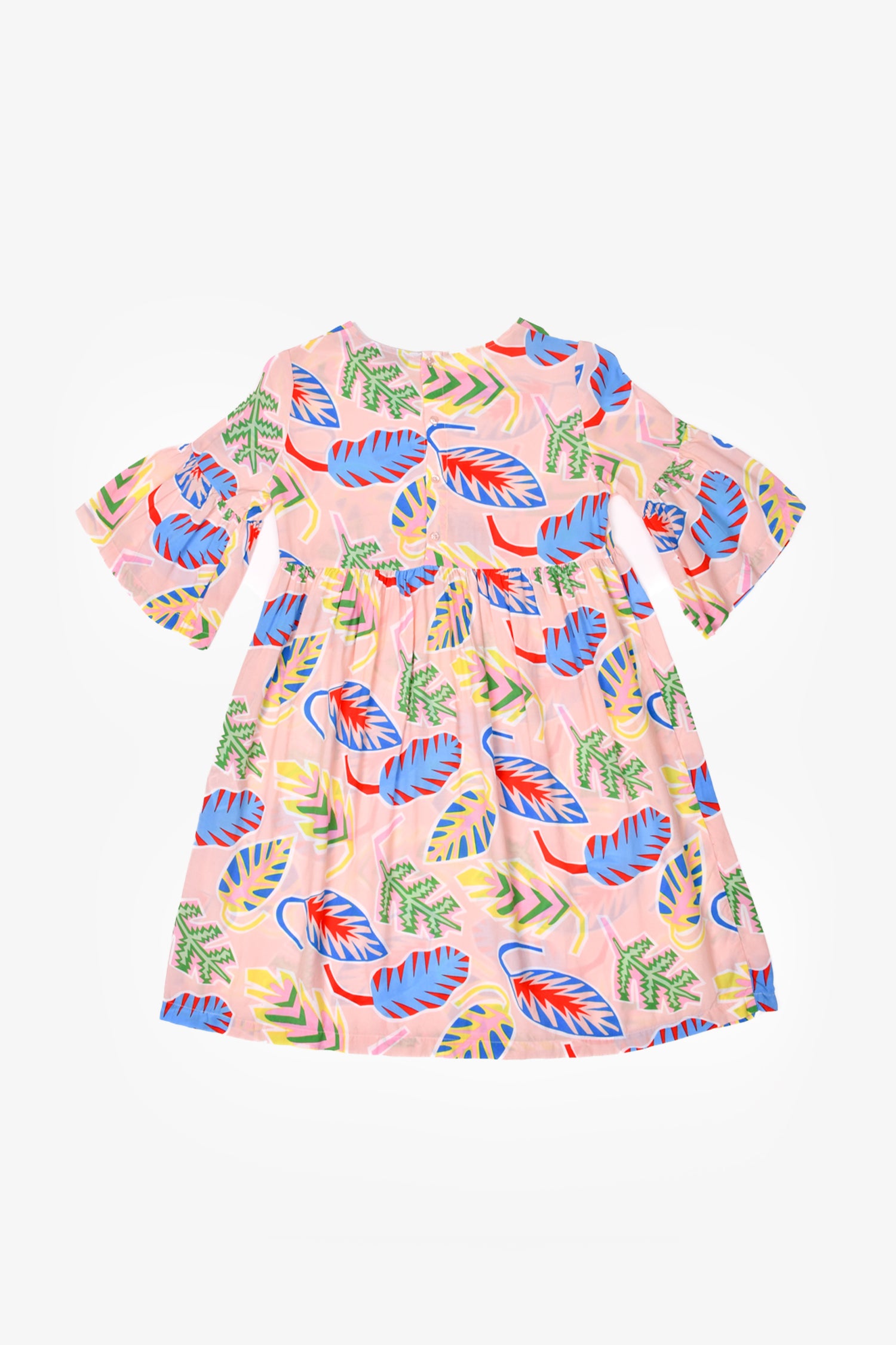 Refresh availabilityStella McCartney Pink/Multicolour Leaf Printed 3/4 Sleeve Dress. Rear button-up closure. Round neck. Unlined. Tonal stitching.