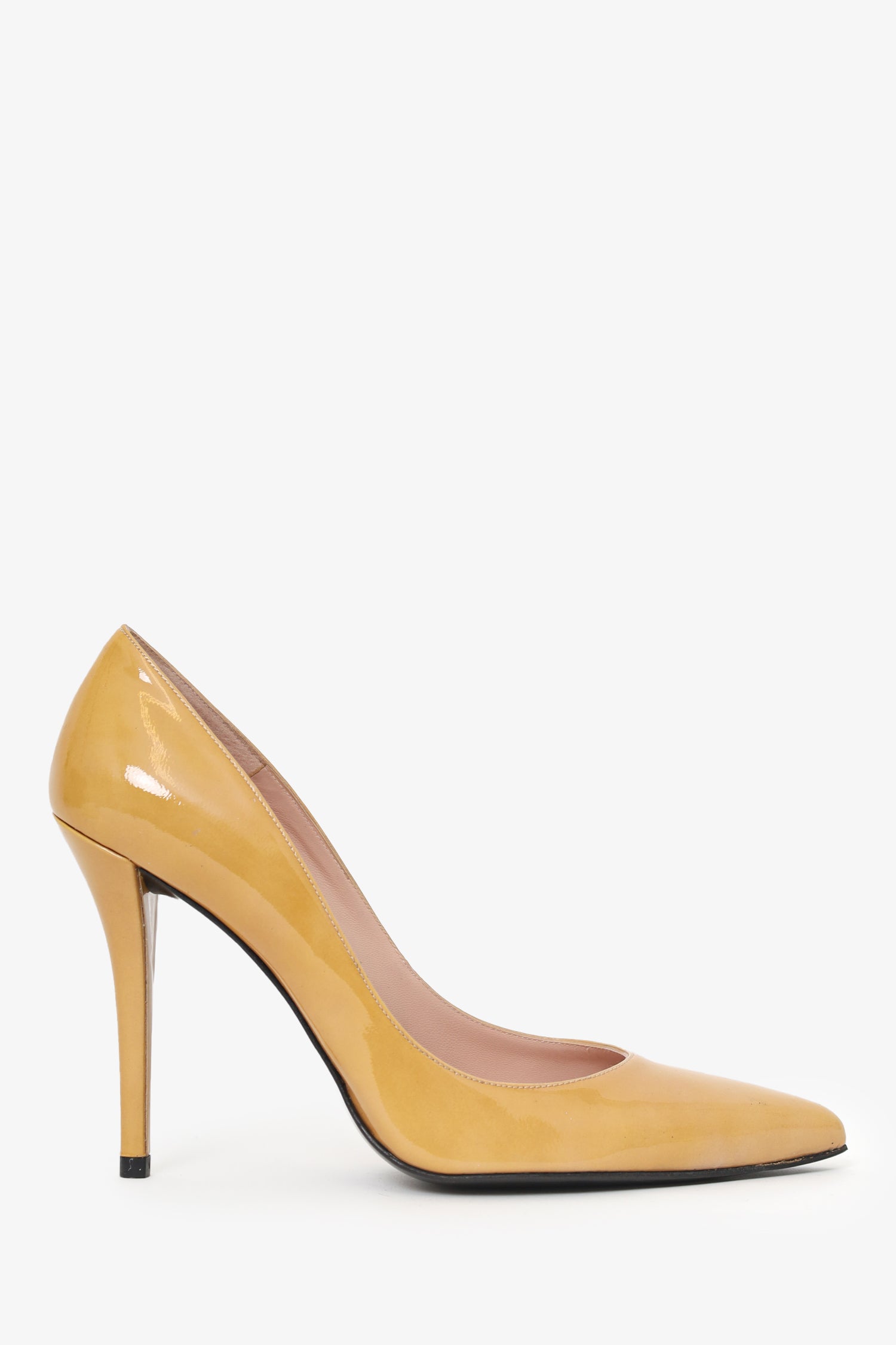 Refresh availabilityStuart Weitzman Beige Patent Leather Pointed Heels. Slip-on. Pointed-toe. Tonal stitching.