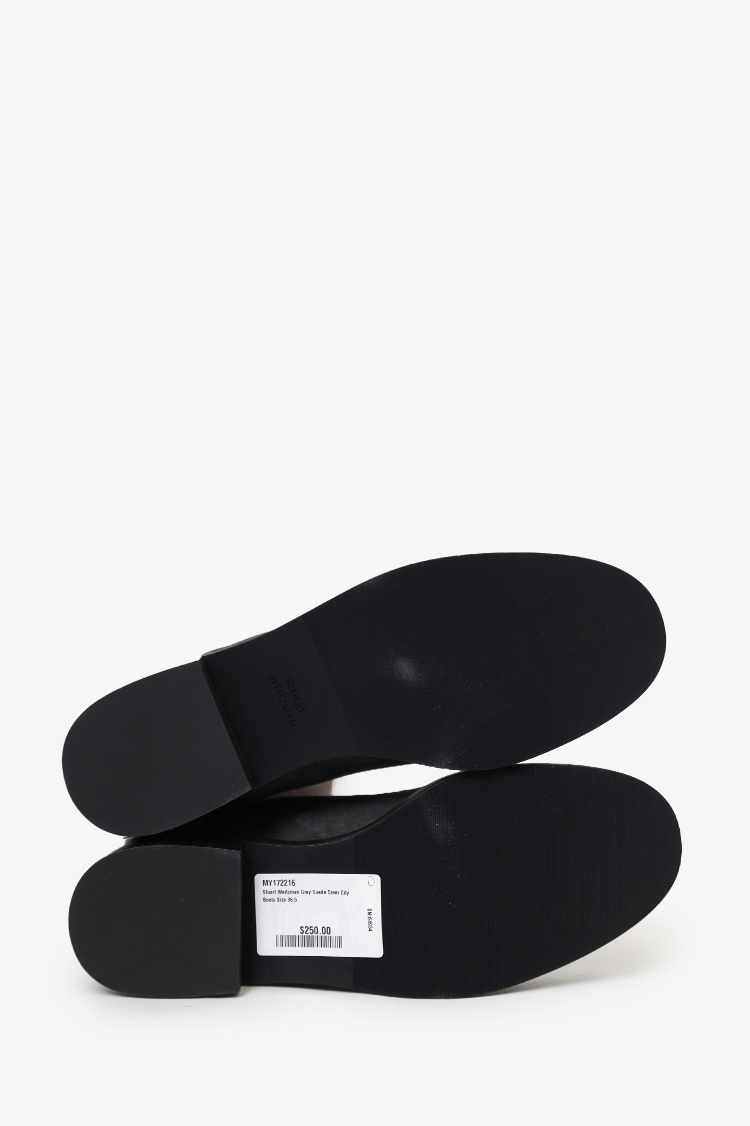 Refresh availabilityStuart Weitzman Grey Suede Creer City Boots. Pull-on. Round-toe. Tonal stitching.