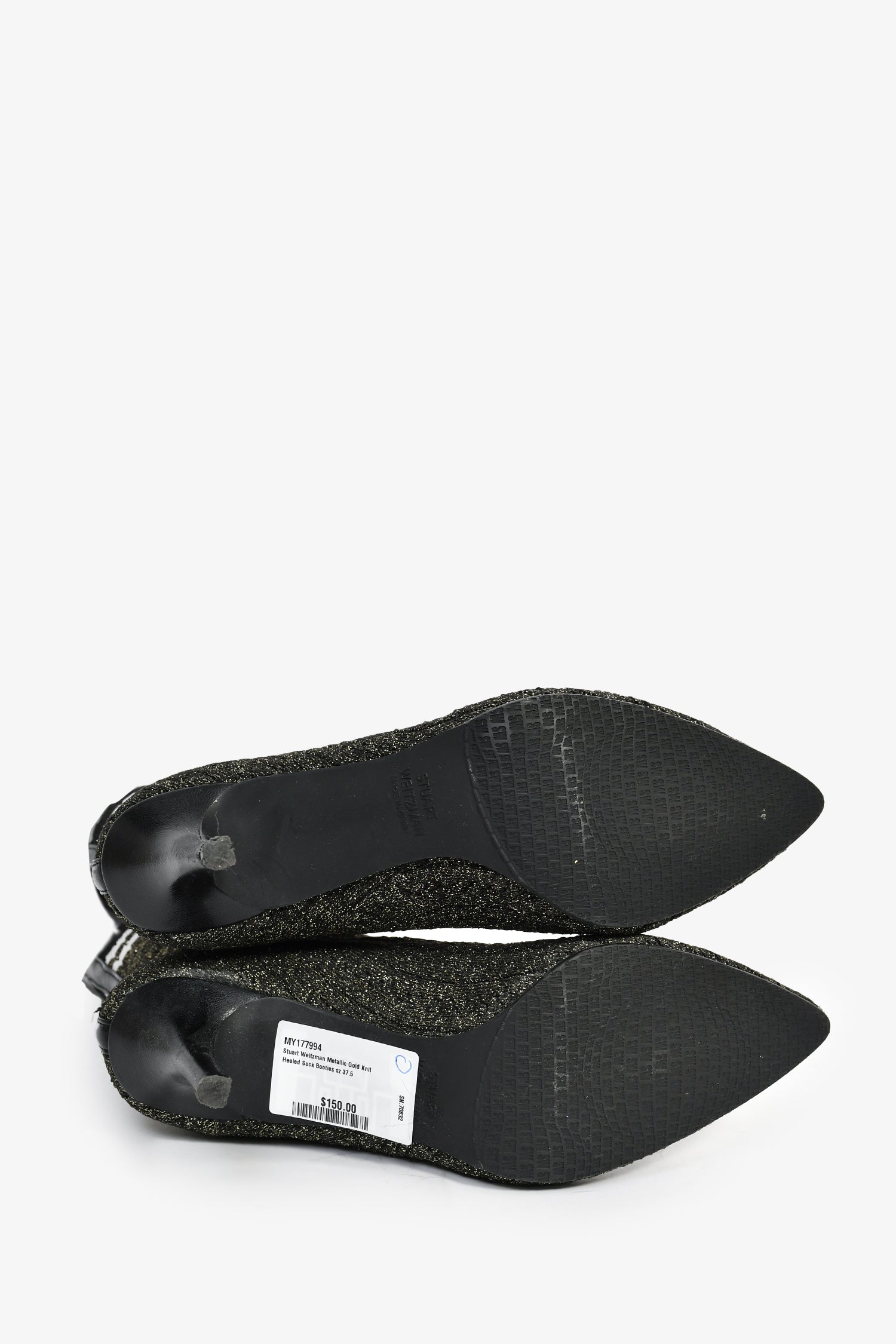 Stuart Weitzman Metallic Gold Knit Heeled Sock Booties Size 37.5