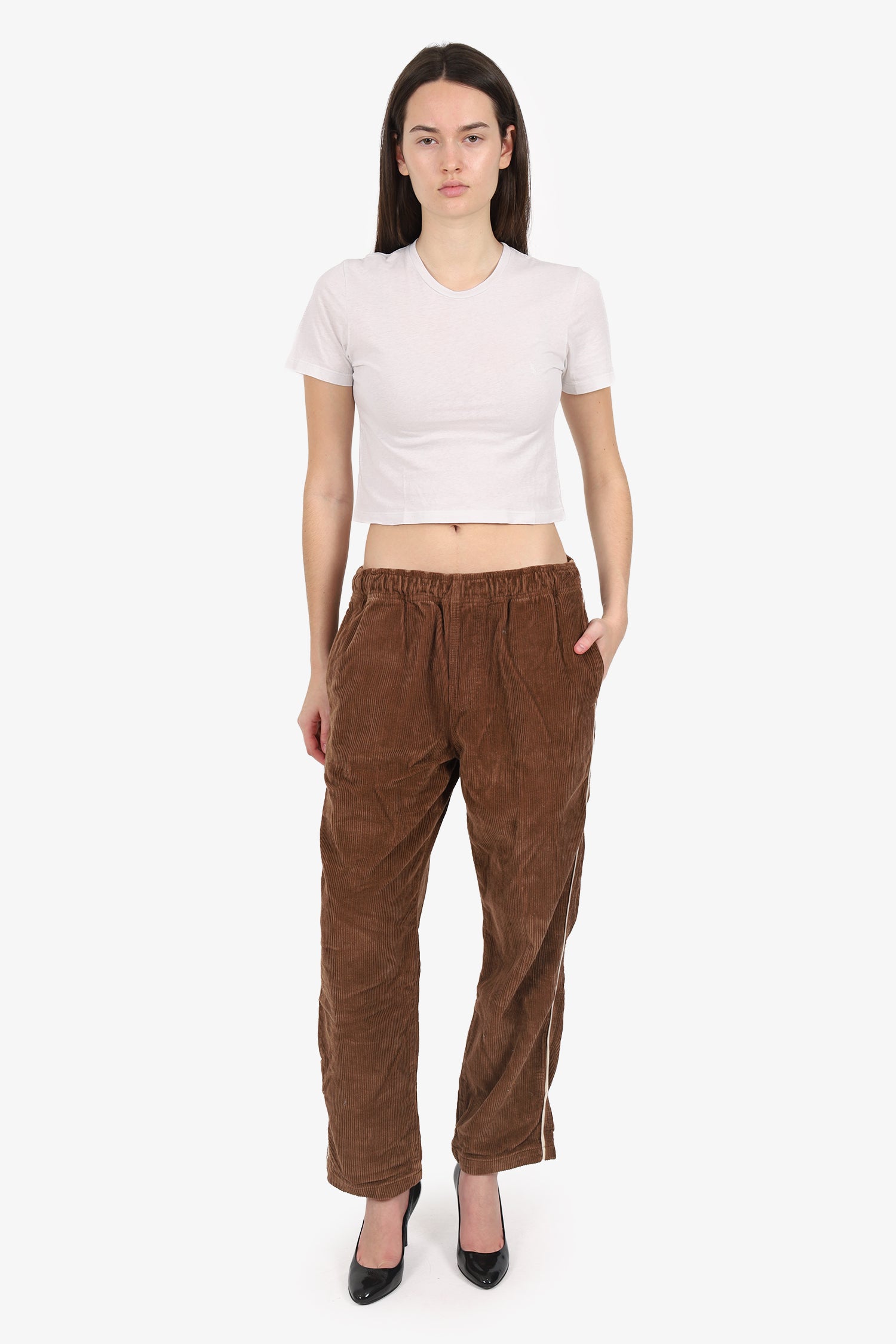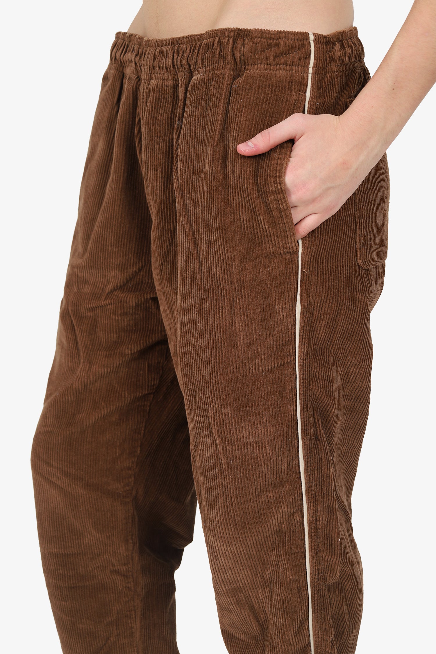 Refresh availabilityStussy Brown Corduroy Pants. Slip-on. Elasticated waist band with drawstring closure. 4 exterior pockets; 2 side slip and 2 rear slip.