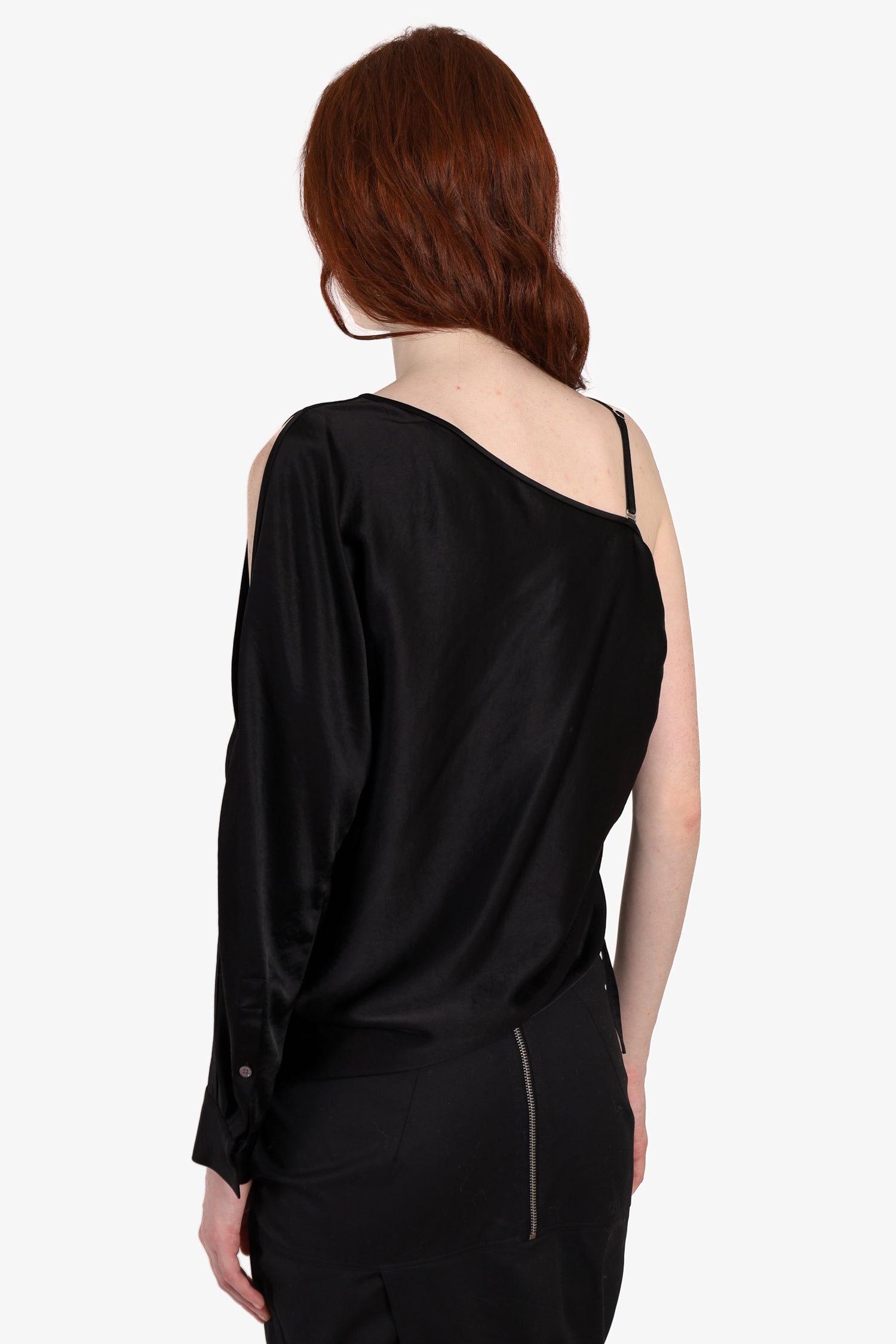 Refresh availabilityT by Alexander Wang Black Ruched Sleeveless Top. Pull-over. Asymmetrical neckline. Tonal stitching.