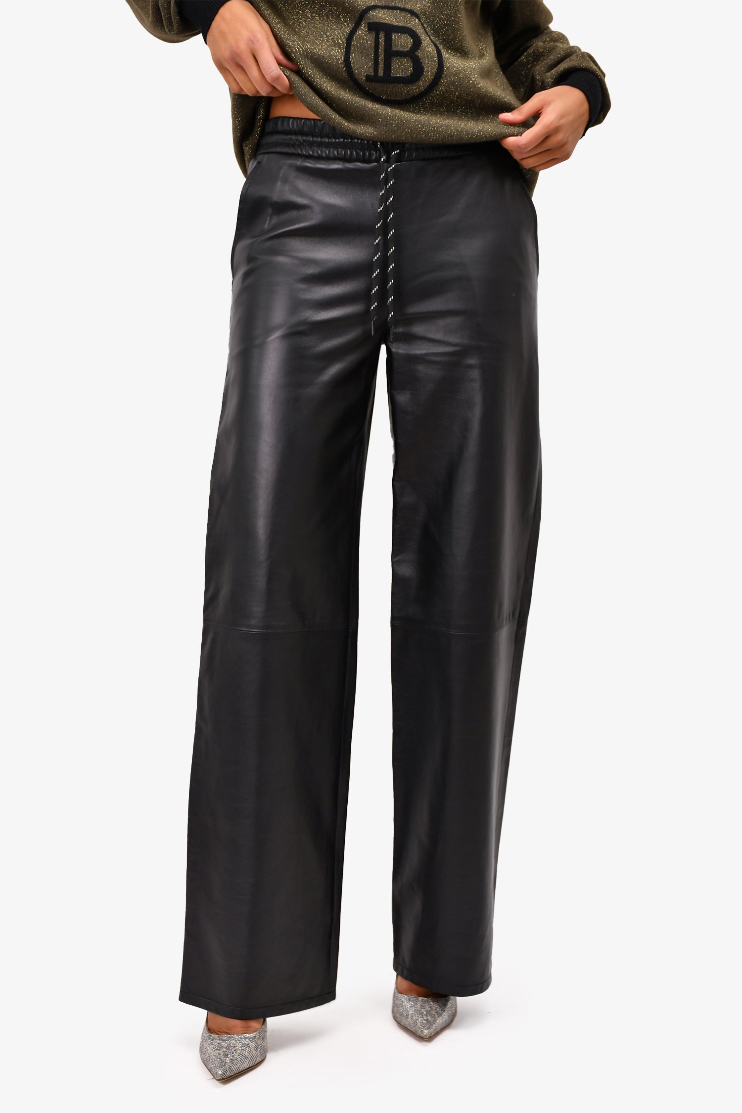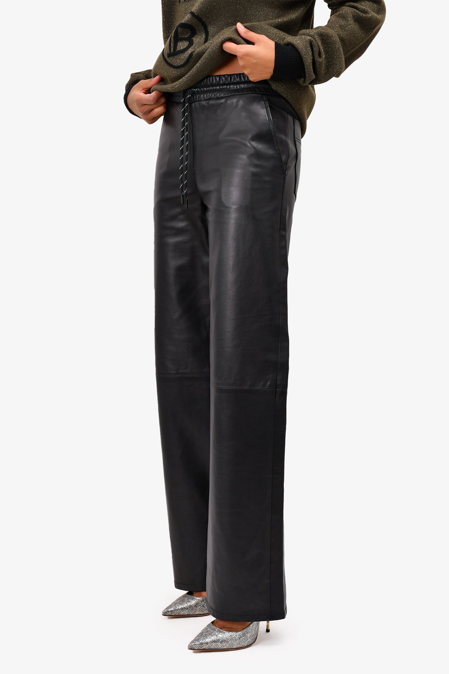 Refresh availabilityT by Alexander Wang Leather Drawstring Wide Leg Pants.
