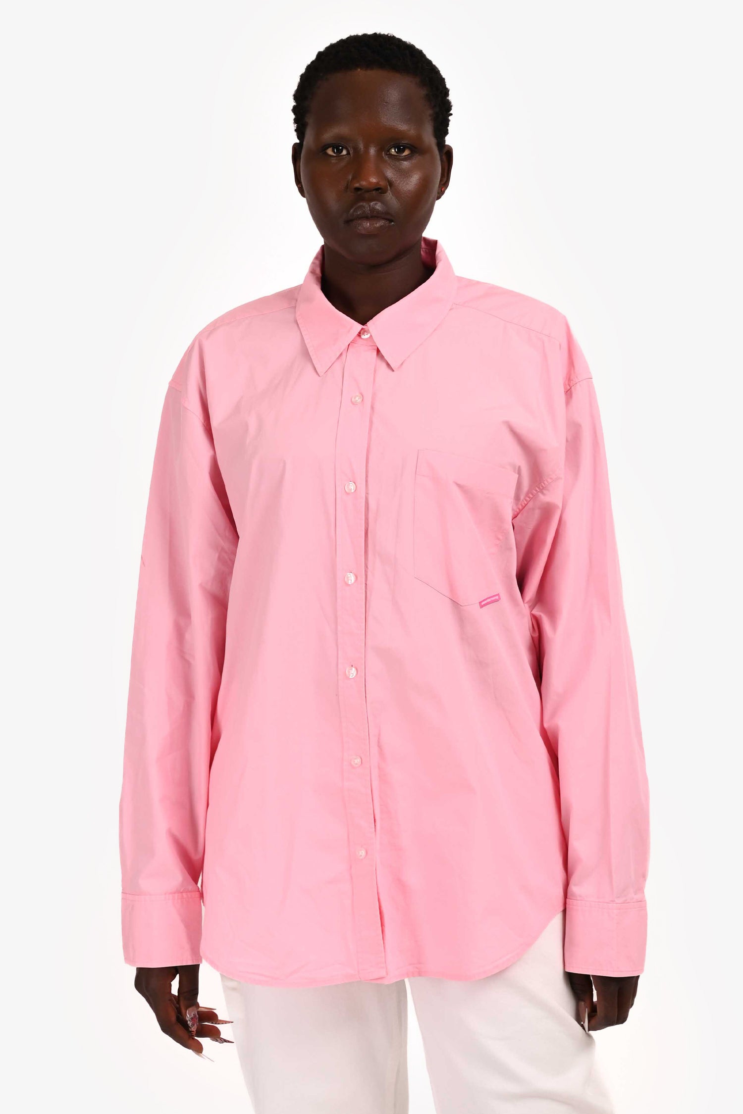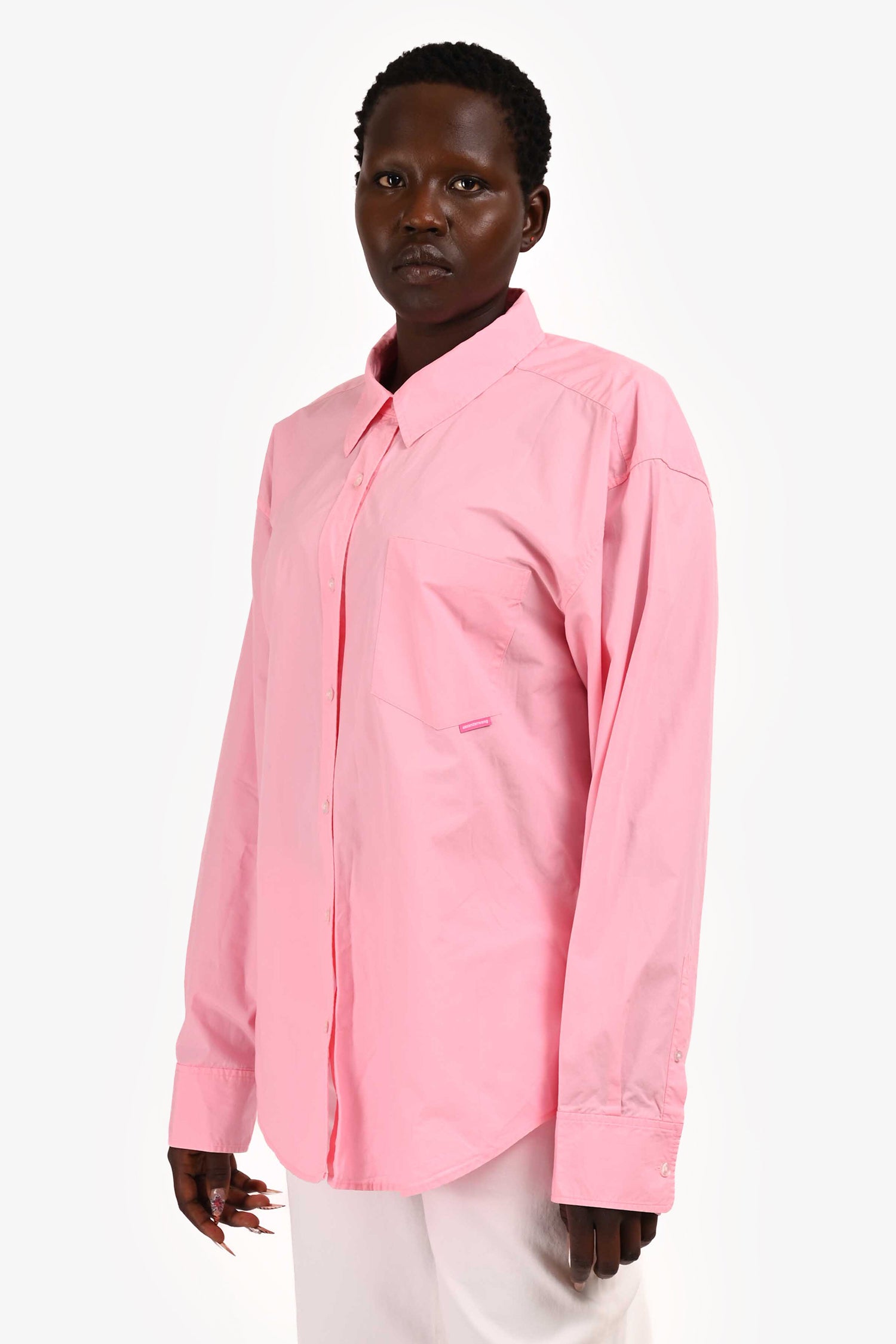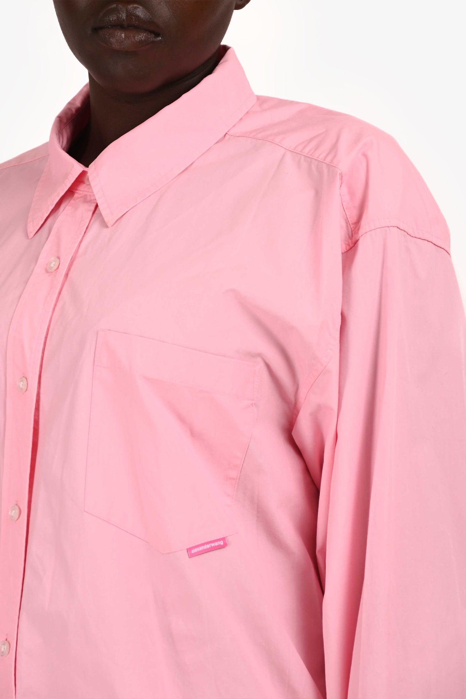 Refresh availabilityT by Alexander Wang Pink Cotton Button Up Top. Front button placket. Patch pocket. Long sleeves. Tonal stitching.