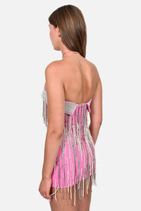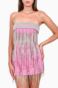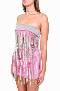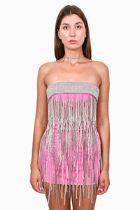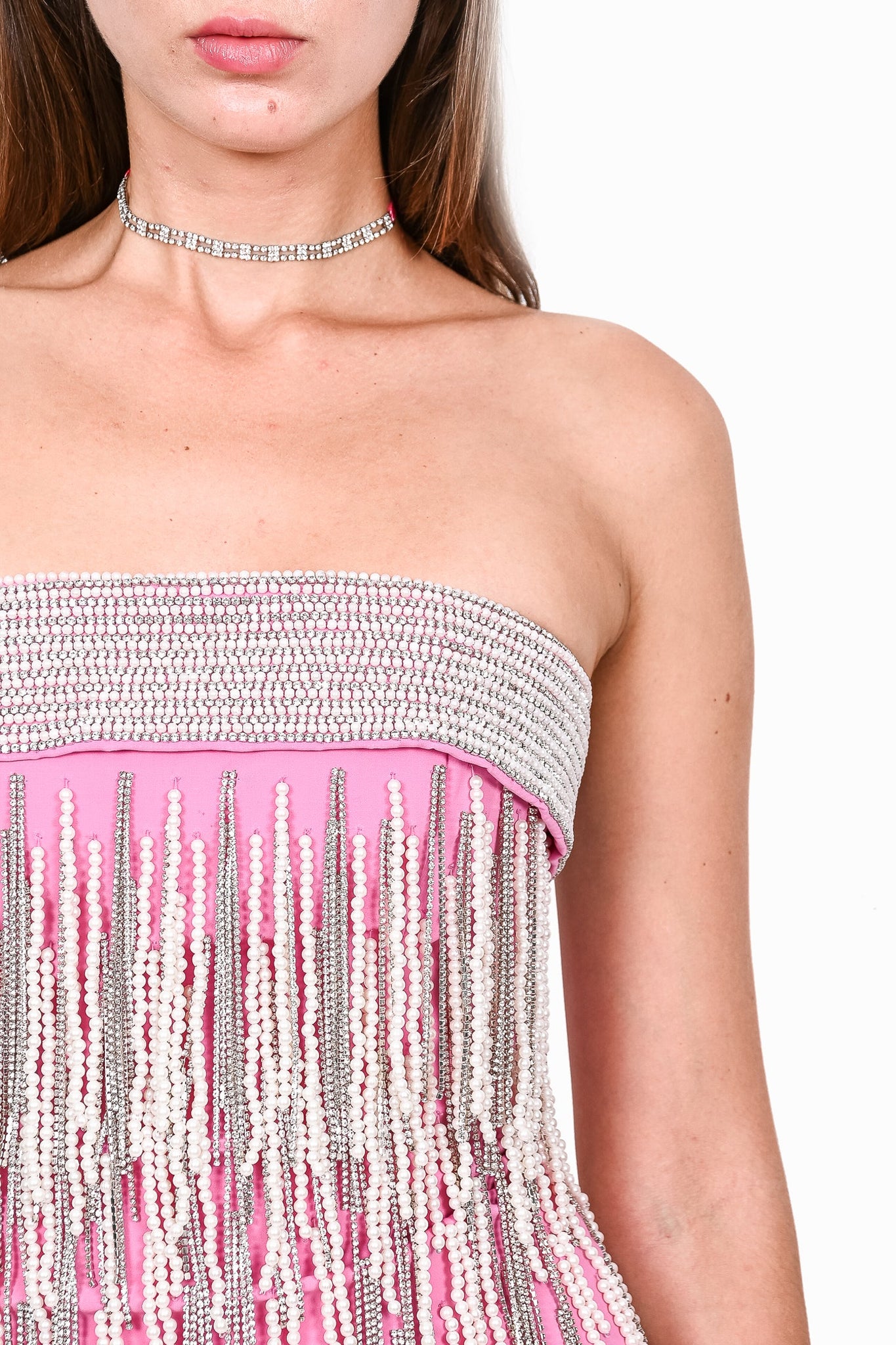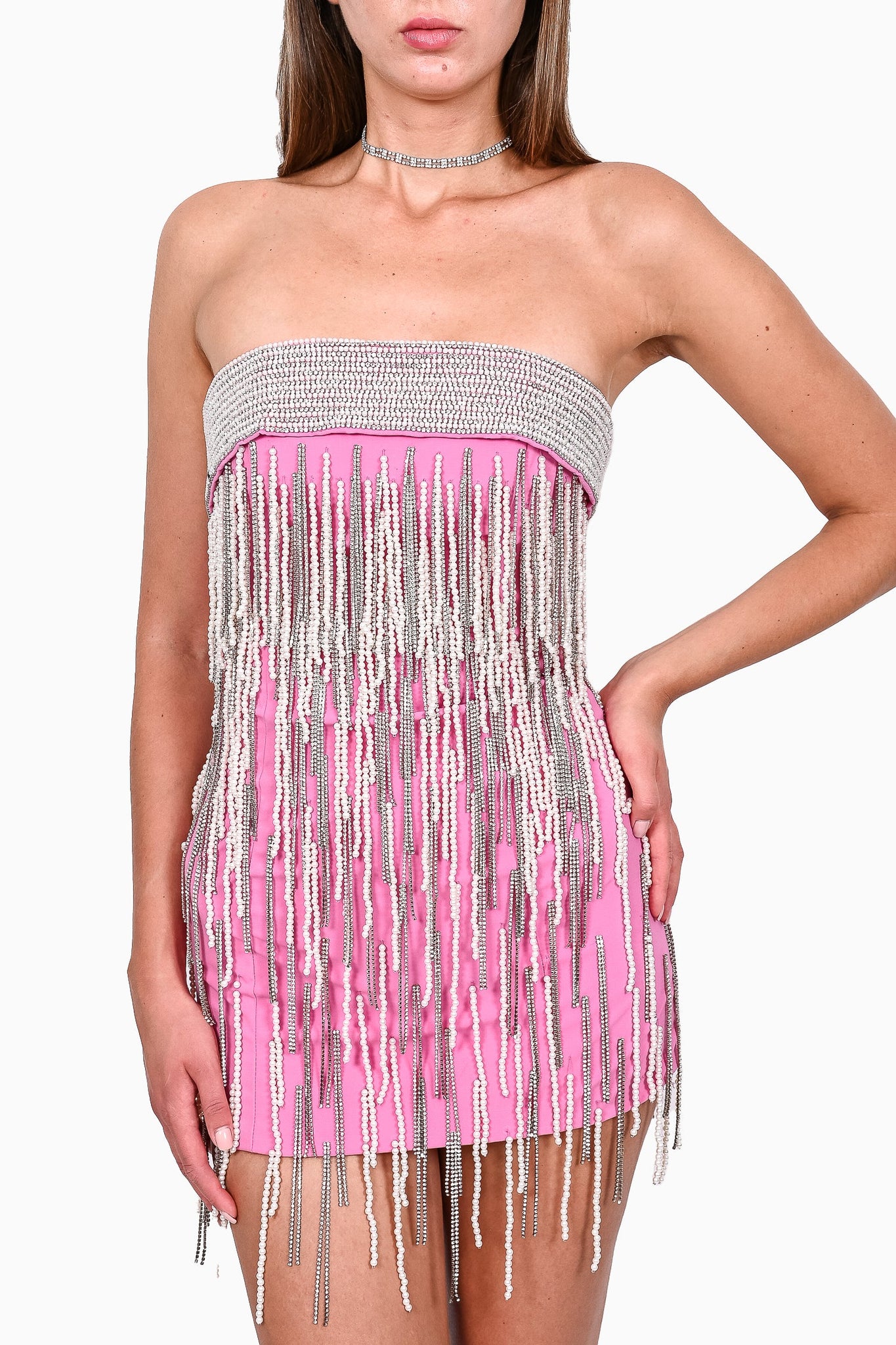 Refresh availabilityThe Attico Pink Wool Crystal/Faux Pearl Embellished Strapless Mini Dress. Back zipper closure. Fold-over top collar. Matching necklace and extra beads included. Tonal stitching.