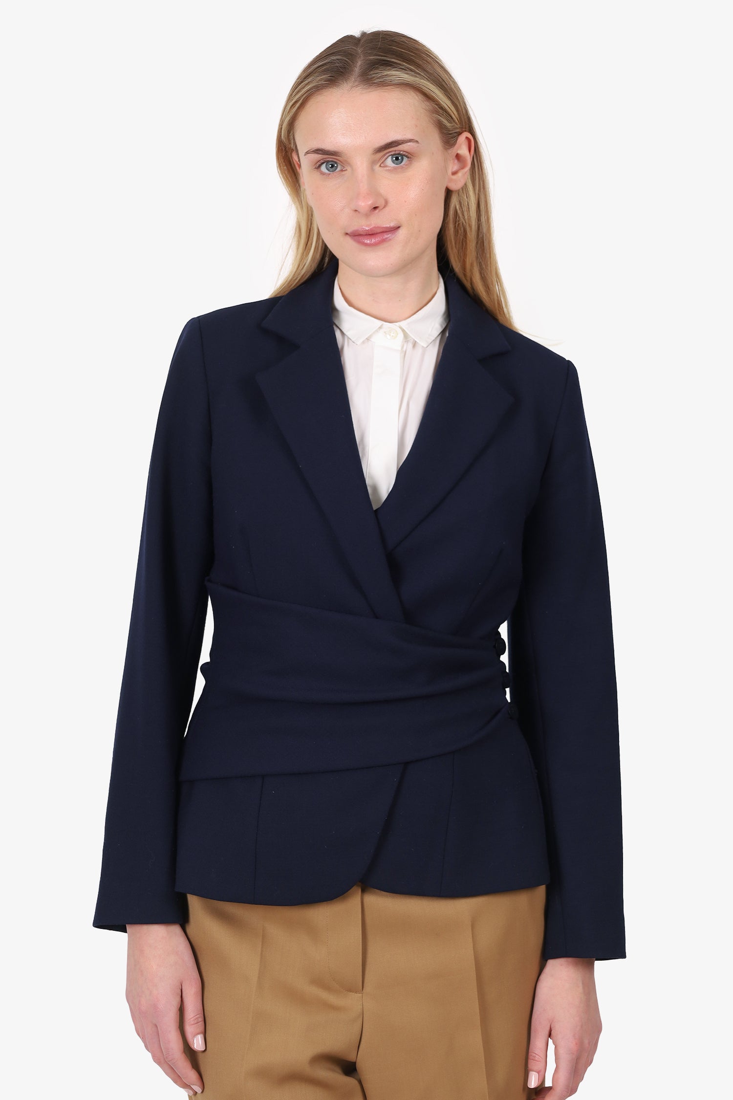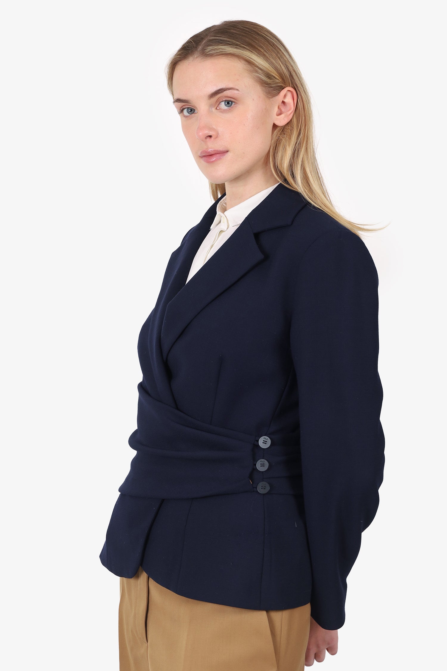 Refresh availabilityThe Fold Navy Cross Over Blazer. Pull-on. Notch lapel. Front button-up closure. Padding to shoulders. Side button details. Lined interior. Tonal stitching.