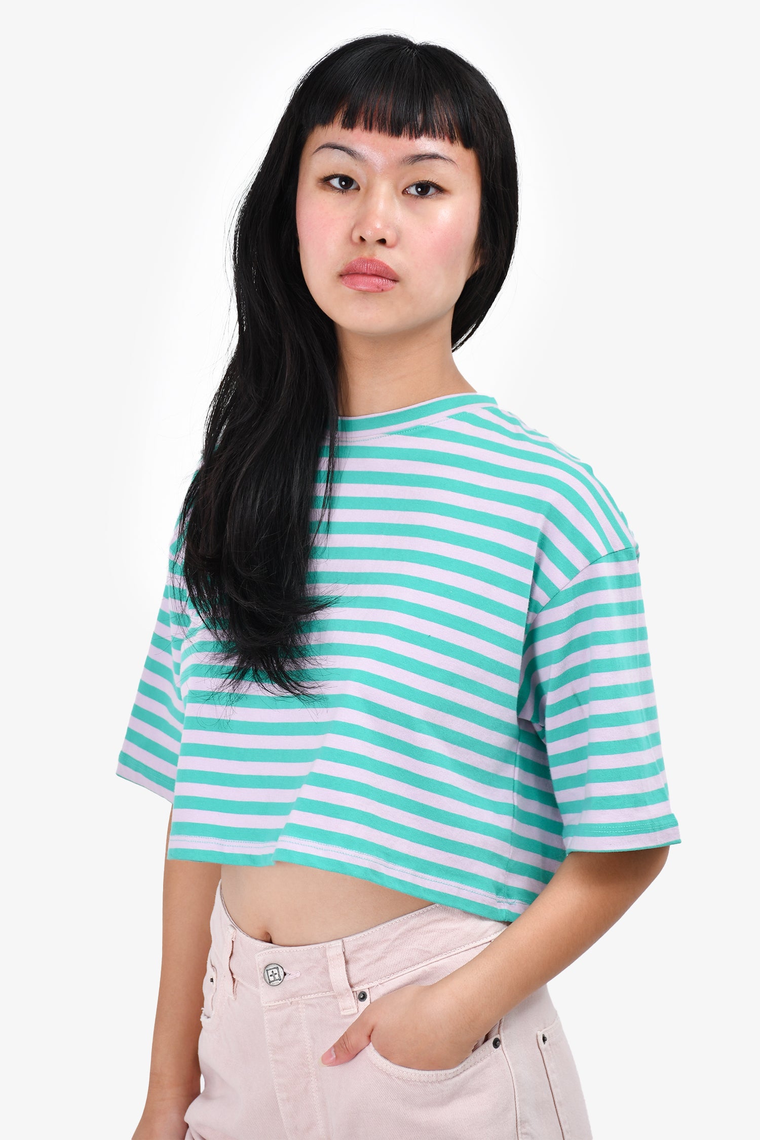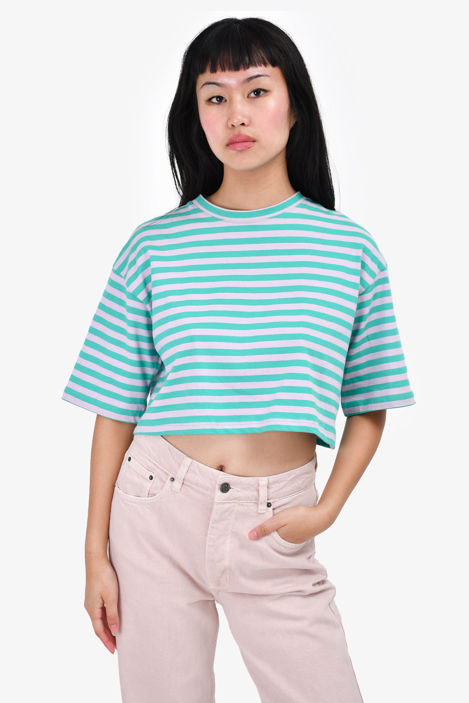 Refresh availabilityThe Frankie Shop Green Striped Crop Top. Round neck. Pull-on.