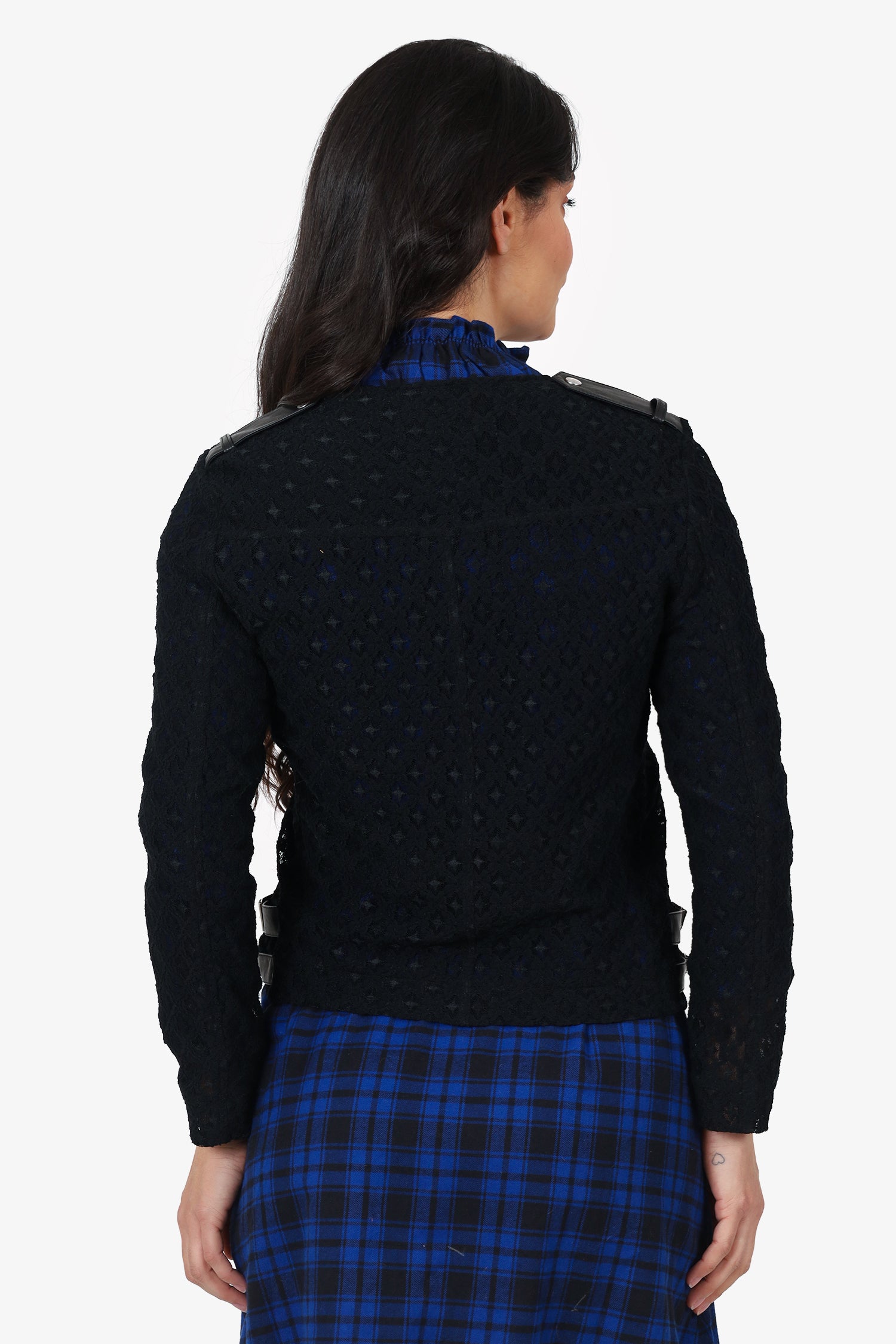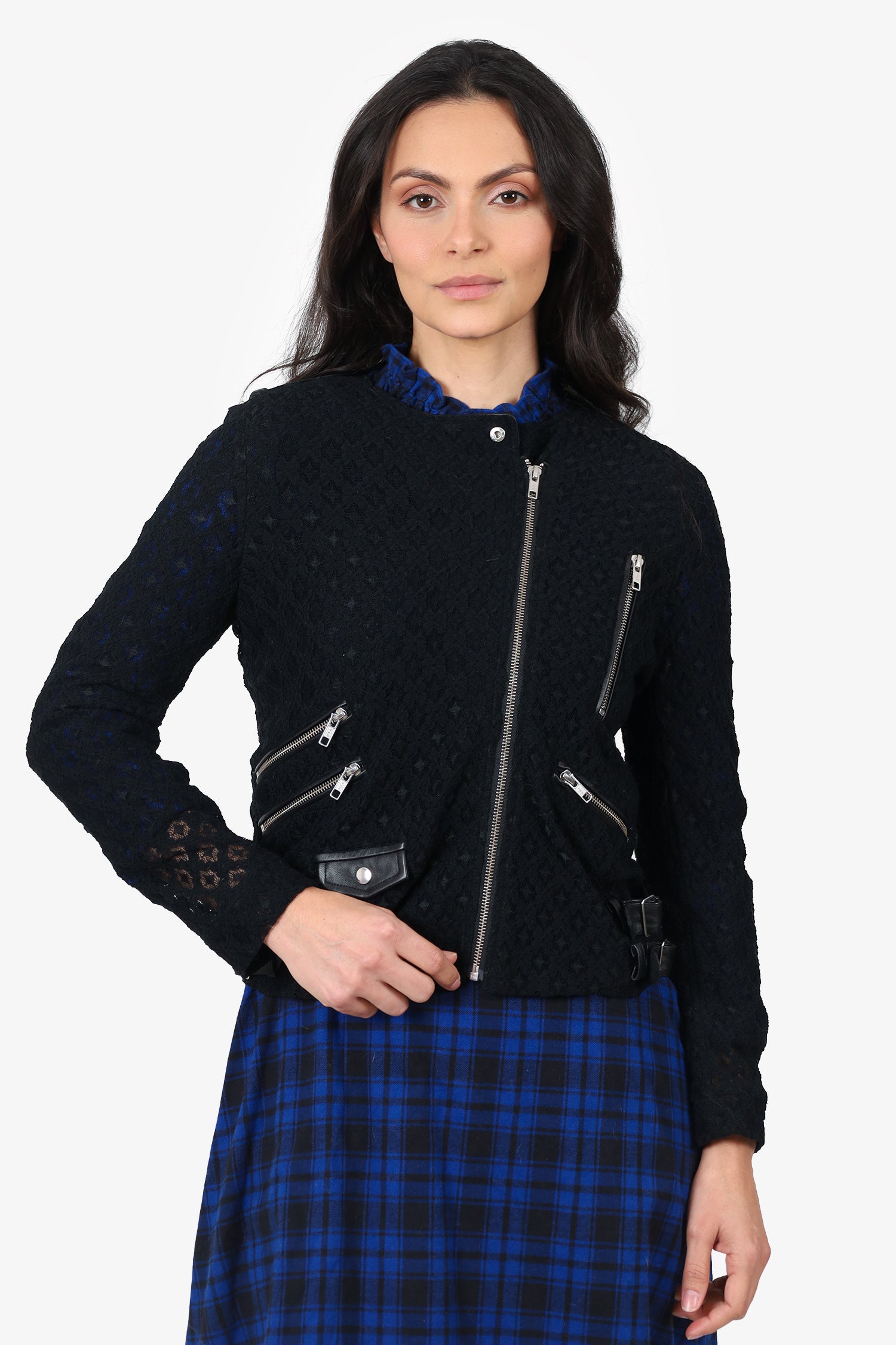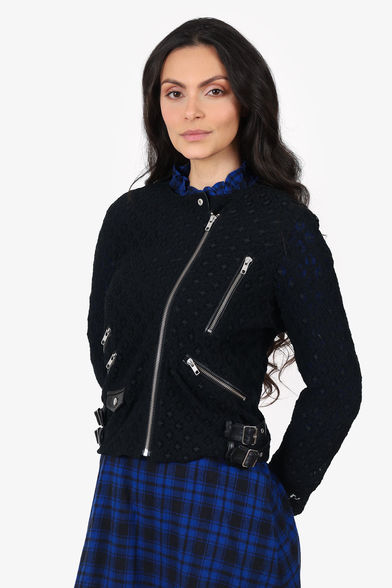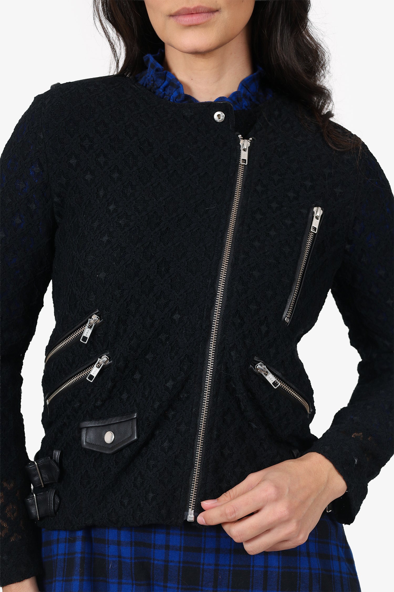 The Kooples Black Lace/Leather Trim Moto Jacket Size S
