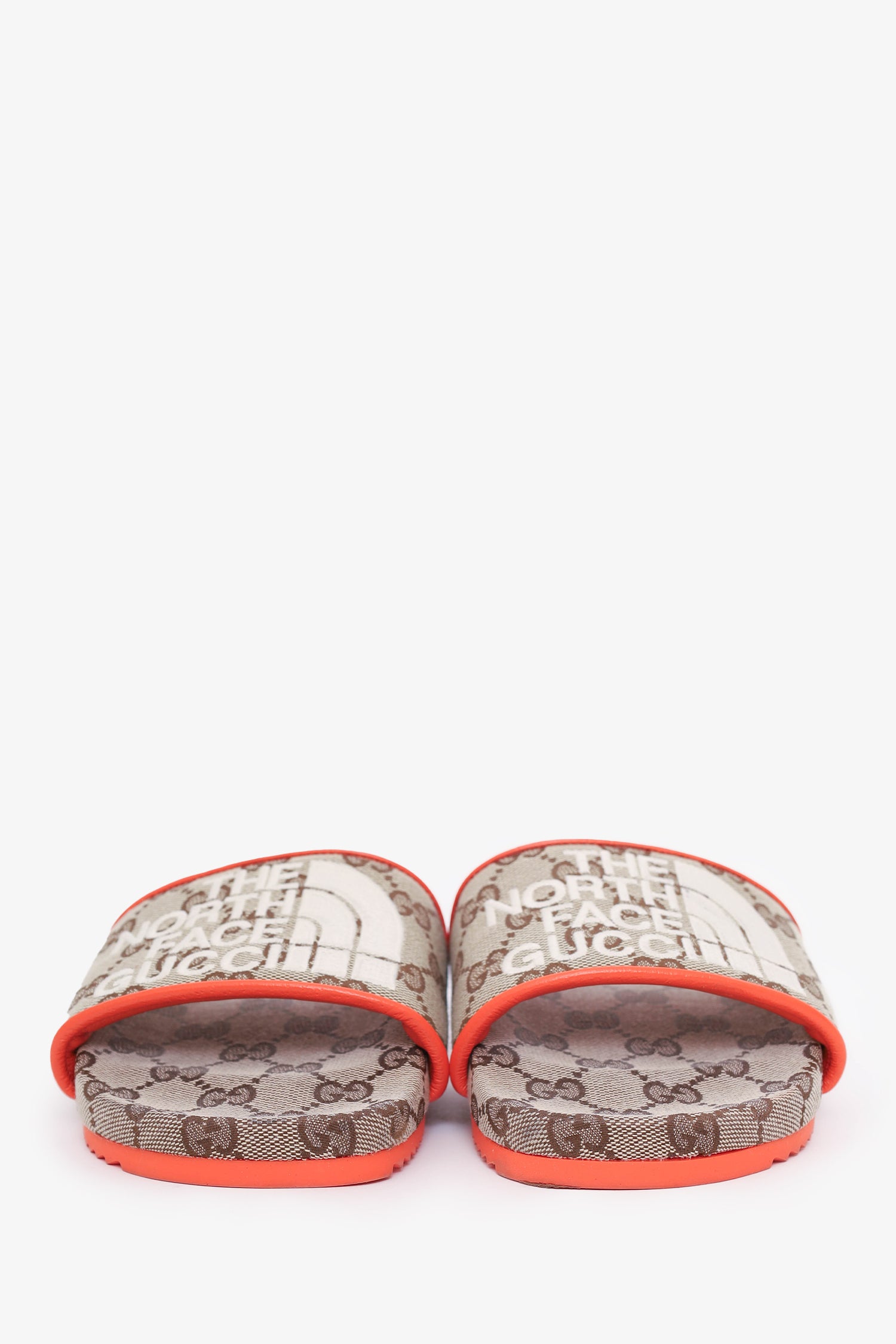 Refresh availabilityThe North Face X Gucci Brown/Orange GG Flat Slides. Slip-on. Tonal stitching.