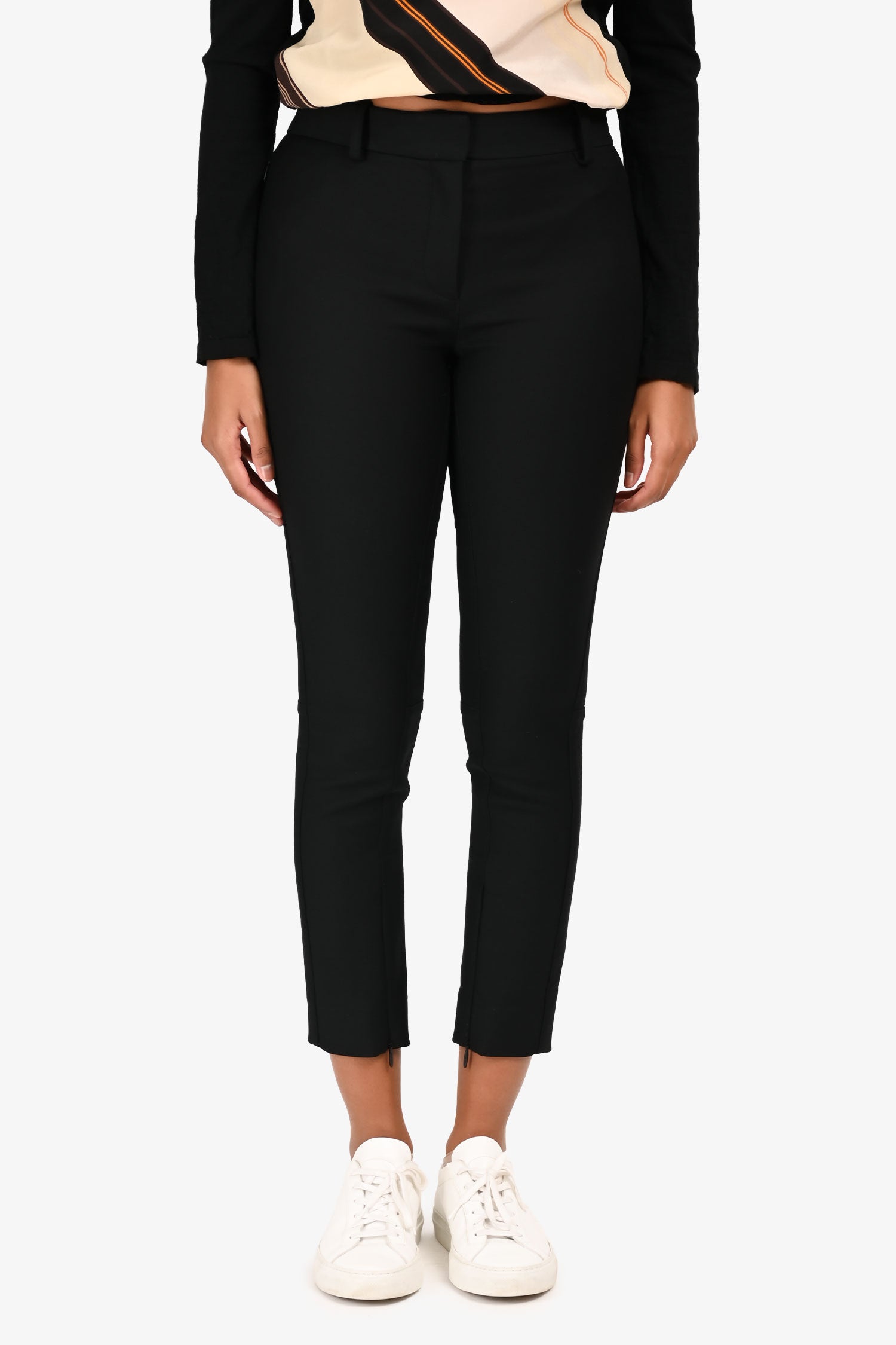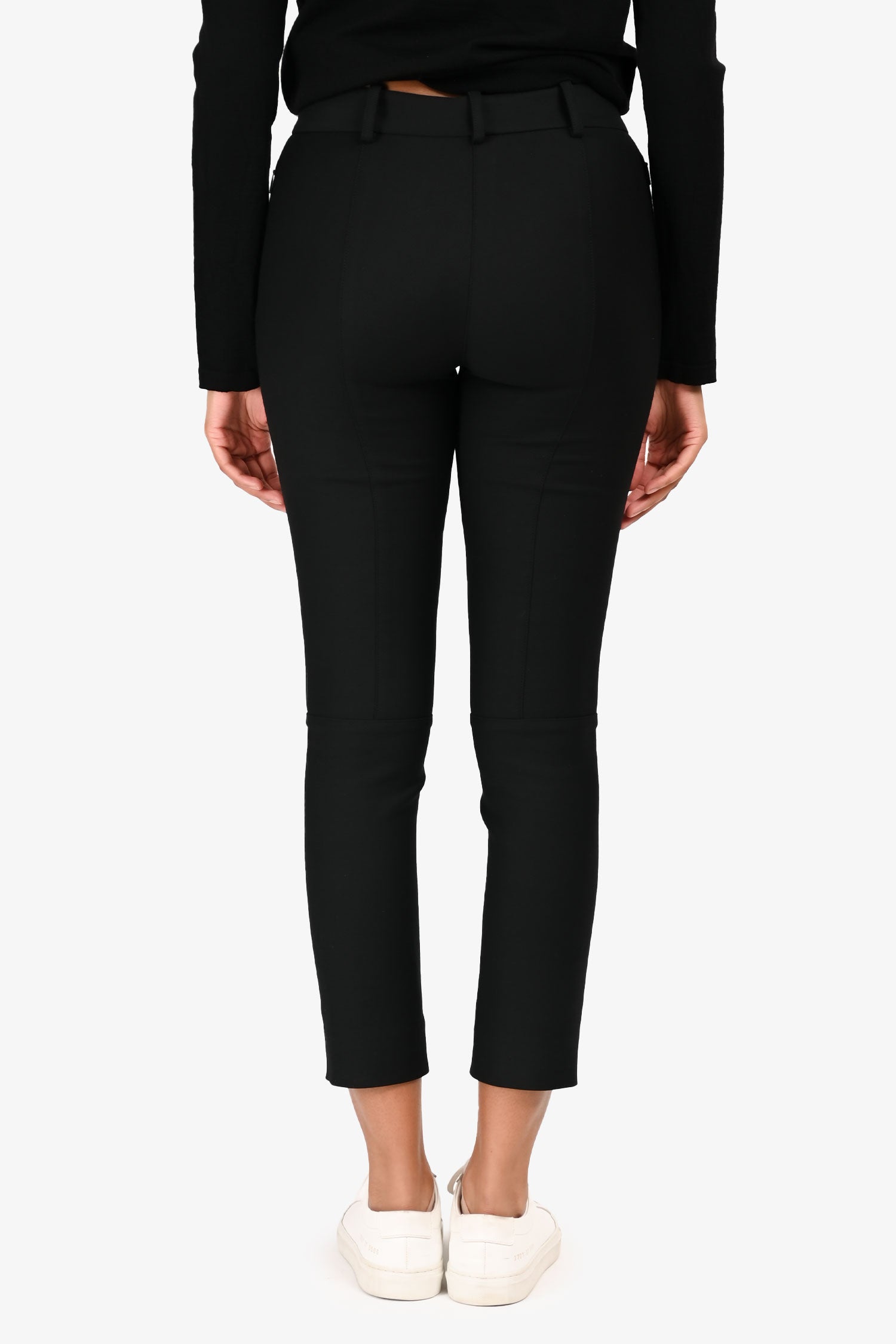Refresh availabilityThe Row Black Fitted Crop Pants. Front fly closure with a clasp. Waistband with belt loops. Two side seam pockets with zipper closures. Zipper detail at the cuffs. Tonal stitching.