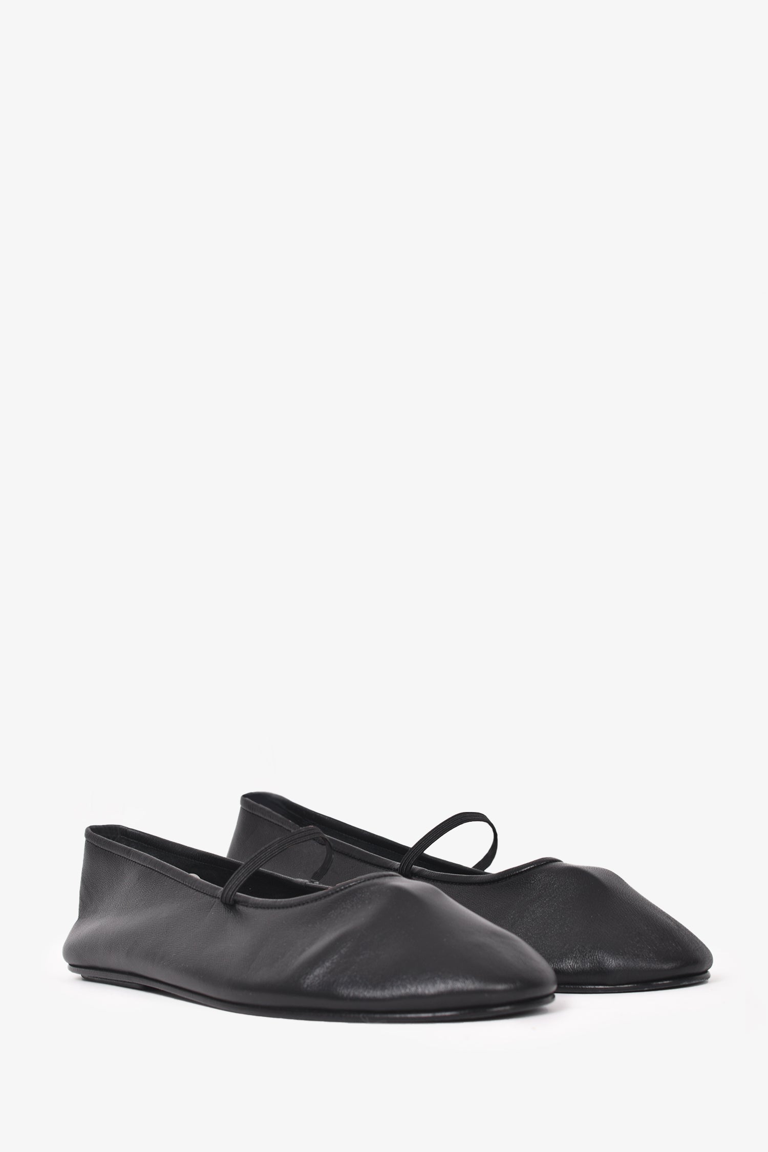Refresh availabilityThe Row Black Leather Ballet Flats. Round toe. Slip-on. Tonal stitching.