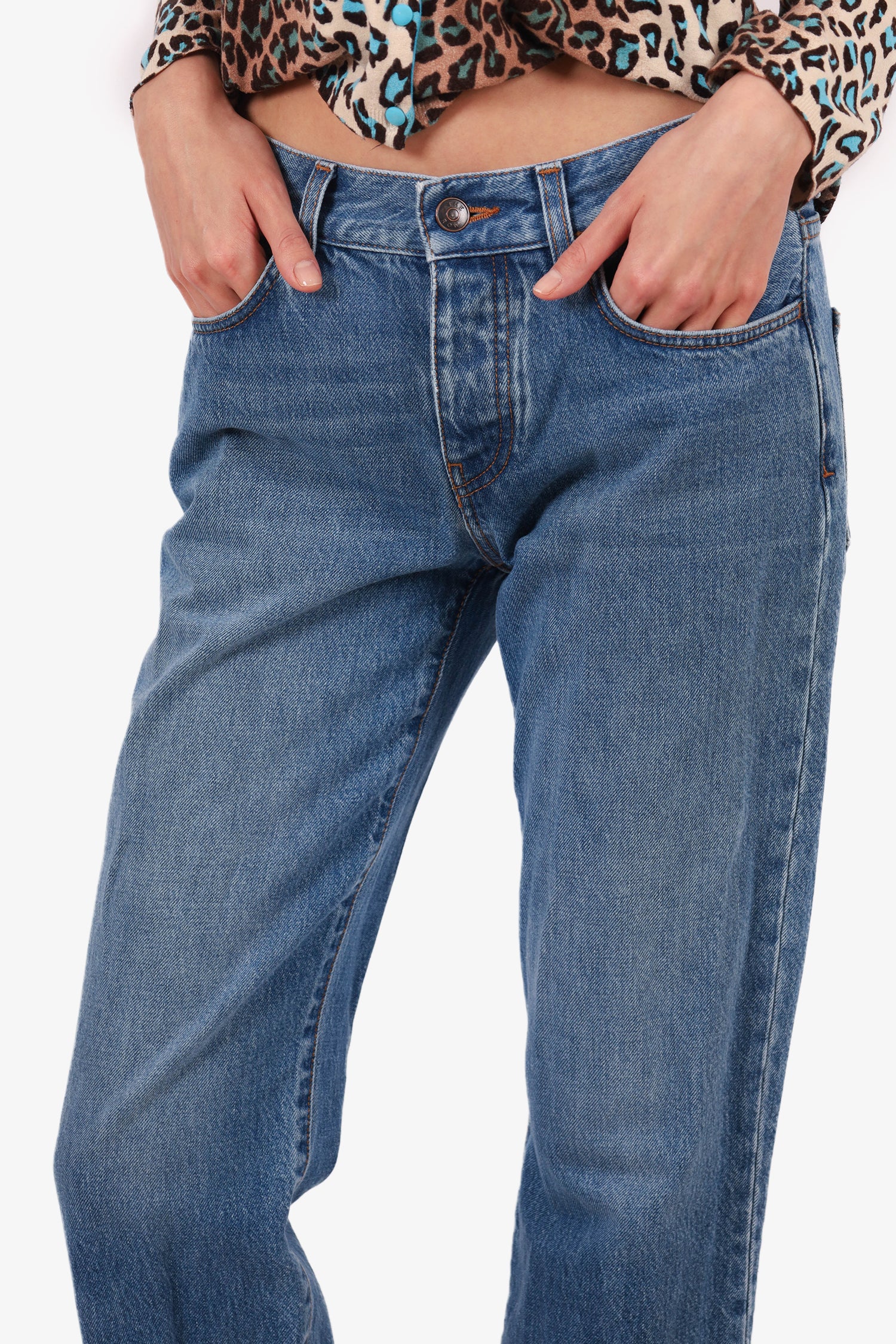 Refresh availabilityThe Row Blue Straight Jeans. Front button and zip closure. Front and rear slip pockets. Waist belt loops. Contrast stitching.