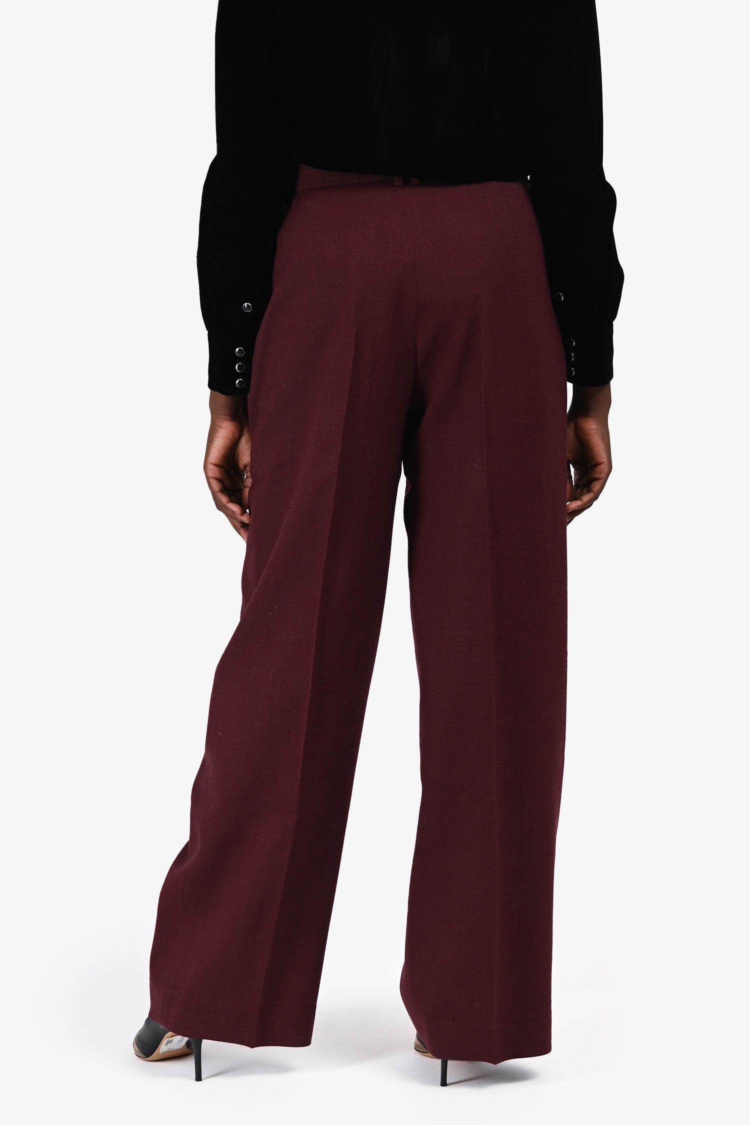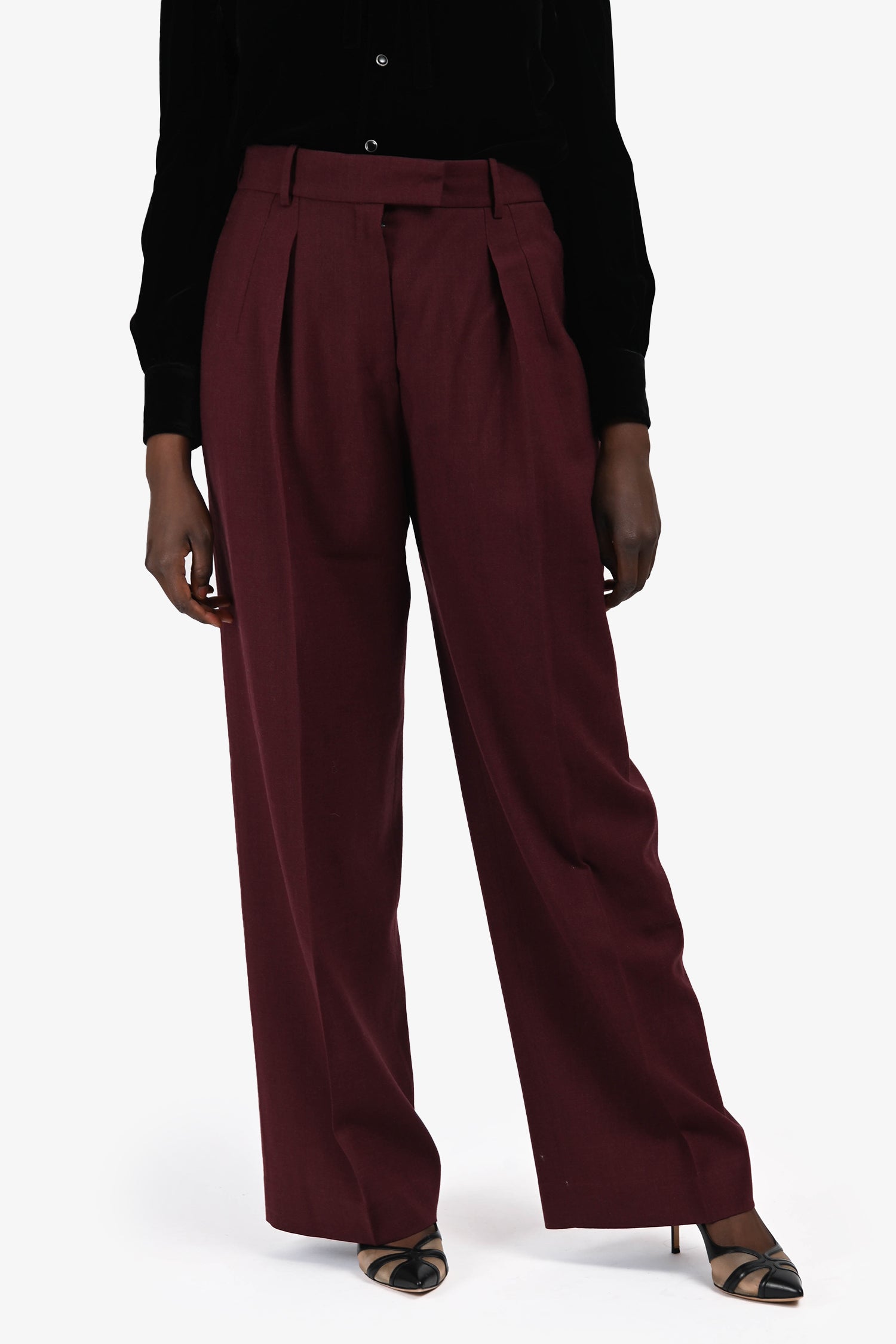 The Row Burgundy Wool Straight Leg Trousers Size 8