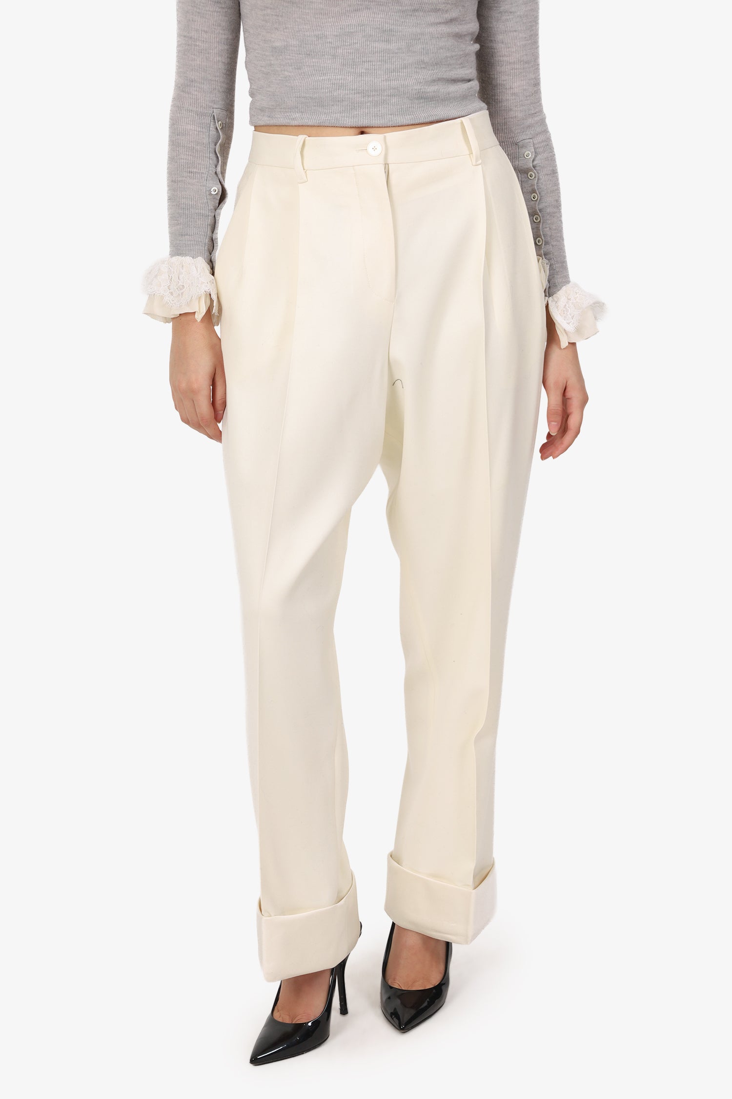 The Row Cream Wool Cuffed Hem Trousers Size 8
