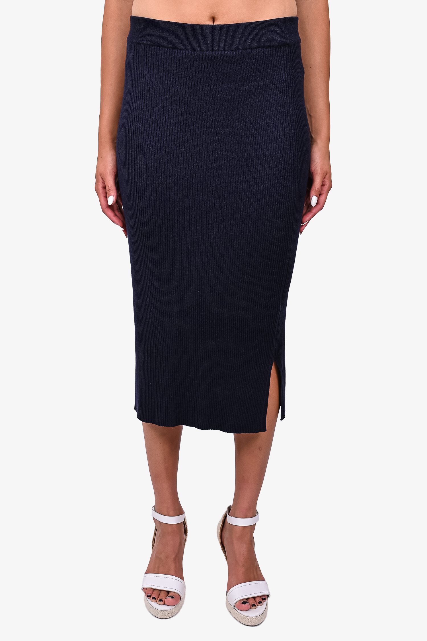 Refresh availabilityThe Row Navy Silk/Cotton Ribbed Maxi Skirt. Elasticized waist. Tonal stitching.