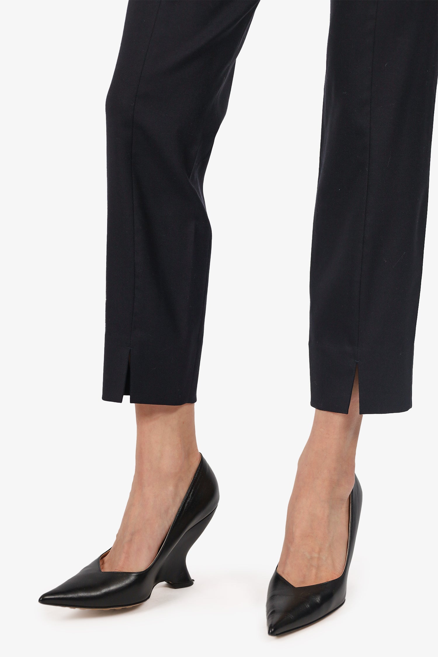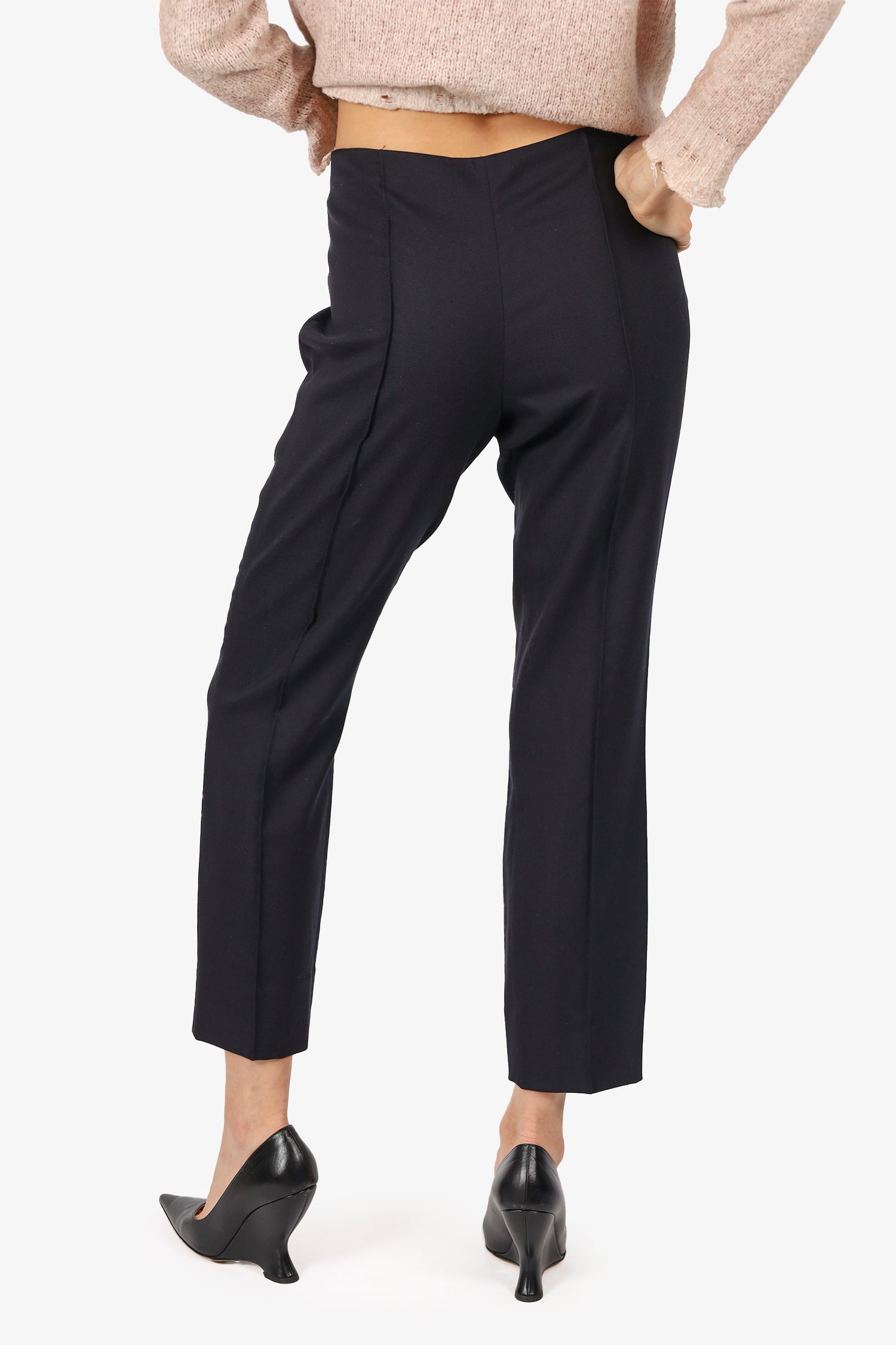 Refresh availabilityThe Row Navy Wool/Silk Straight Pants. Pull-on. Side zip closure. Centre split hem on ankle cuffs. Tonal stitching.