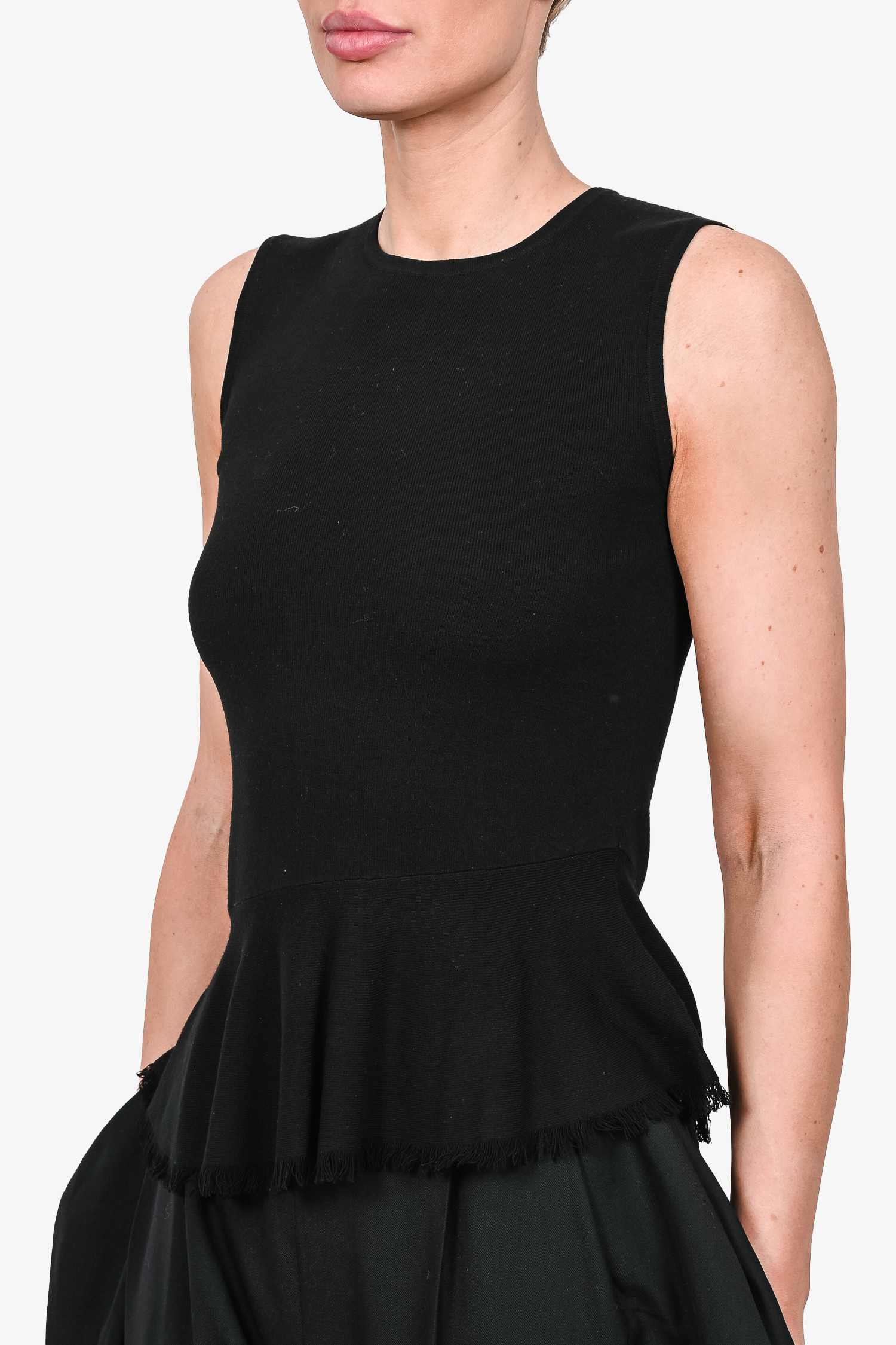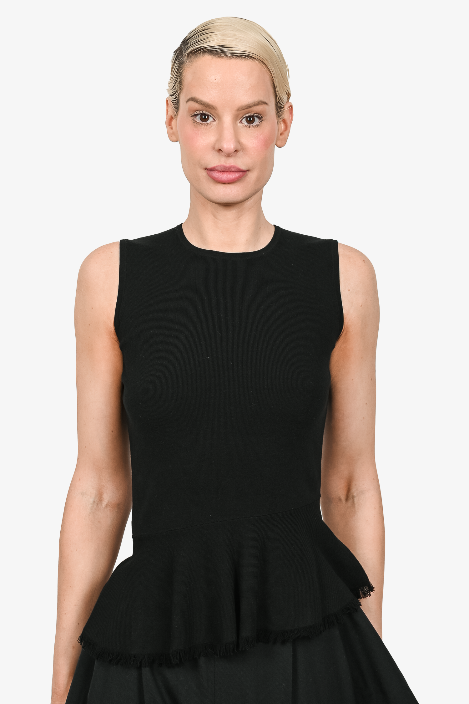 Refresh availabilityTheory Black Sleeveless Peplum Fringe Top. Round neck. Tonal stitching.