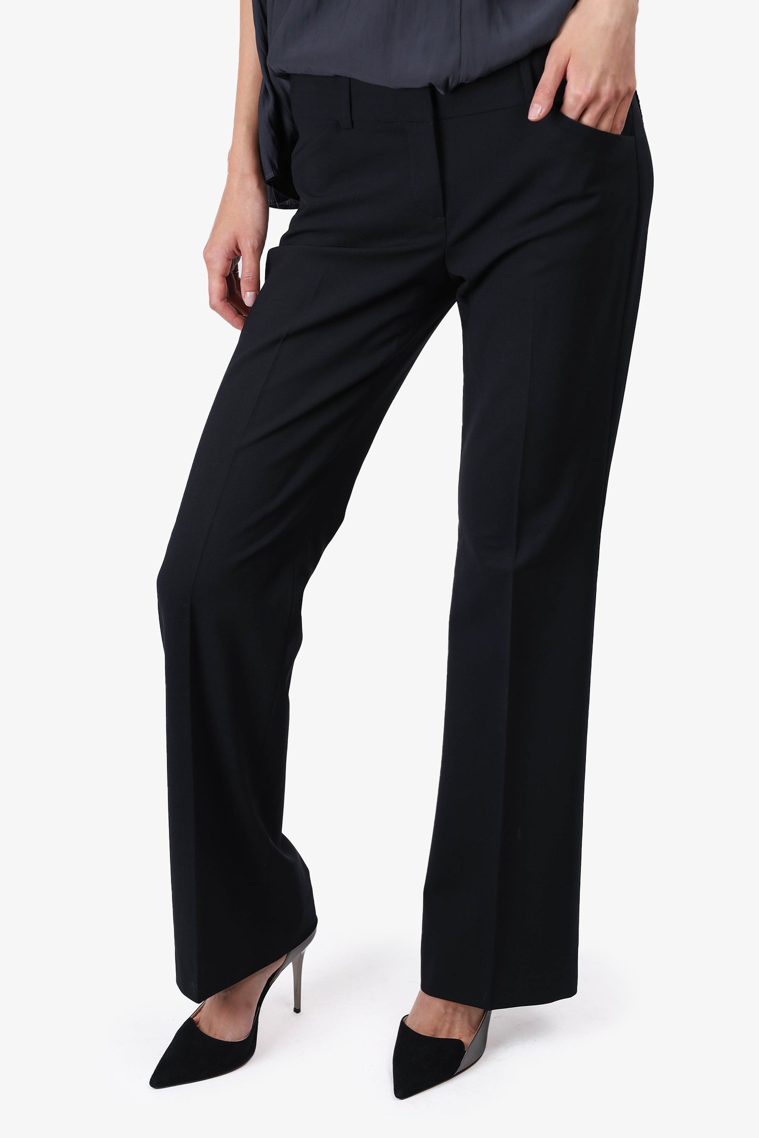 Refresh availabilityTheory Black Virgin Wool Trousers. Front zip and hook closure. Unlined. Tonal stitching.