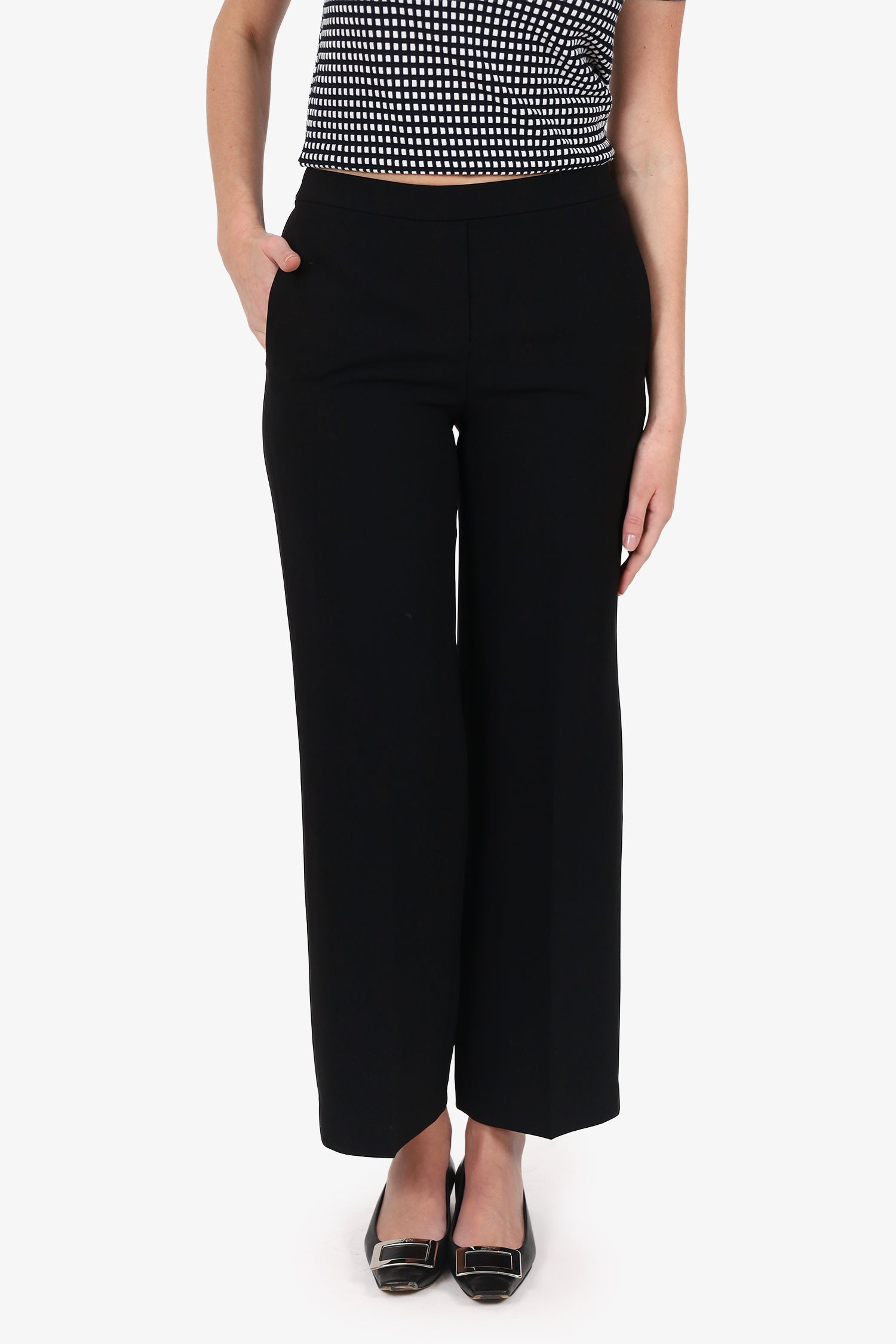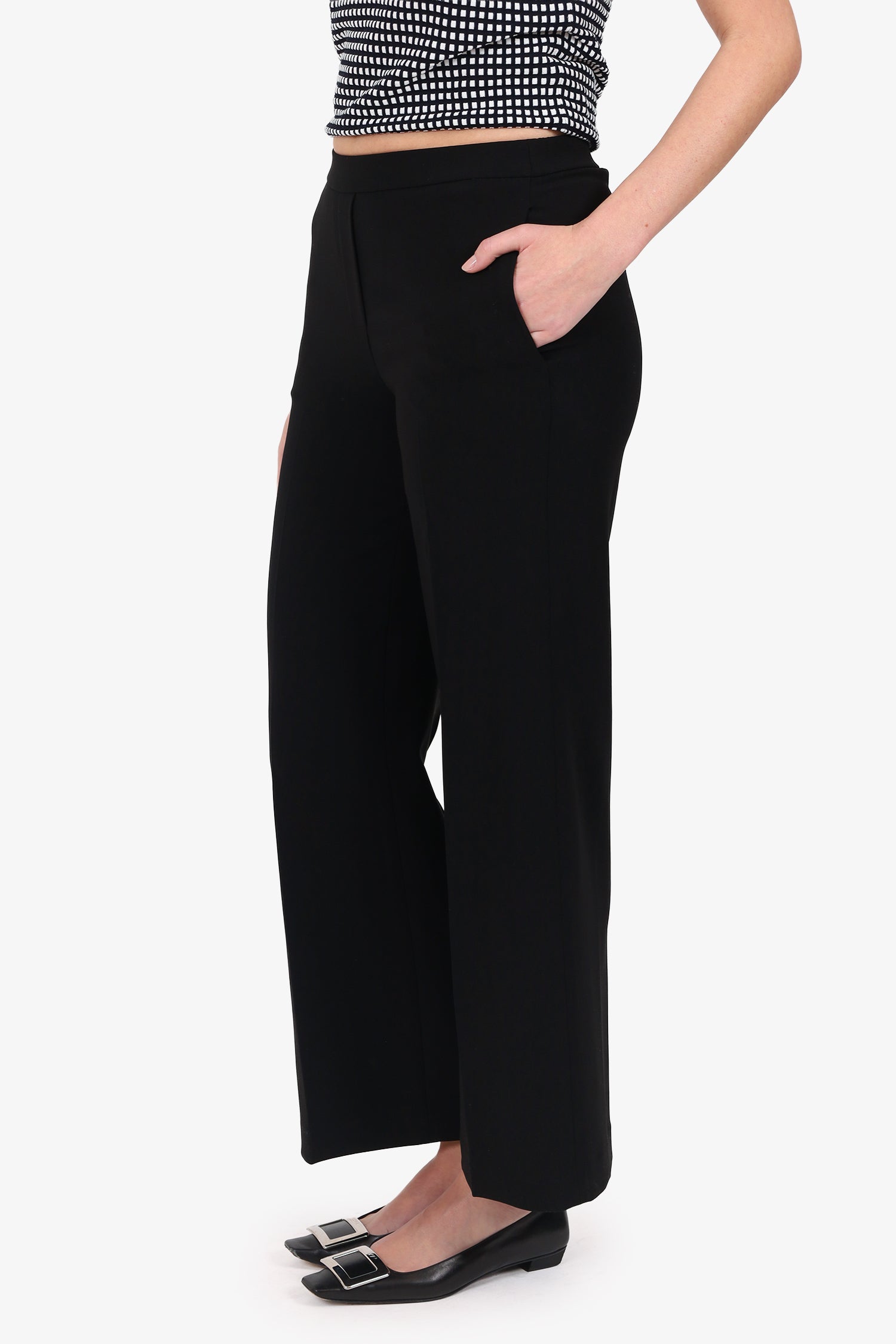 Refresh availabilityTheory Black Crepe Pants. Slip-on. Elasticized waistband. 3 exterior pockets; 2 side and 1 rear. Tonal stitching.