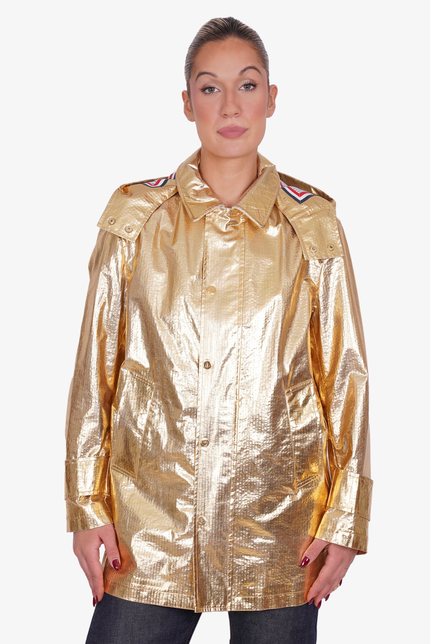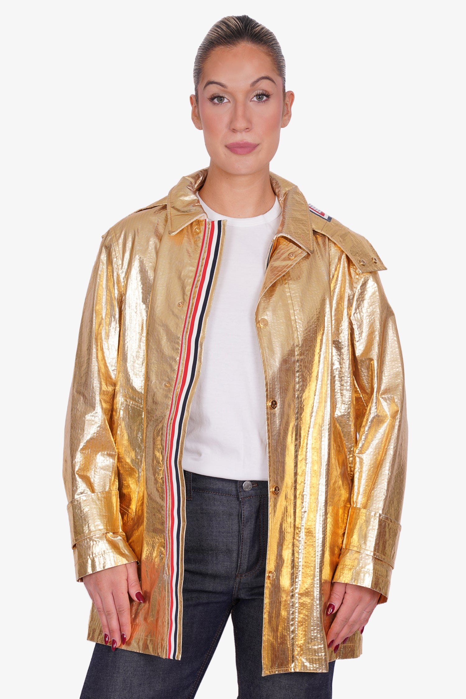 Thom Browne Gold Metallic Hooded Jacket with Stripes Size 0 Mens