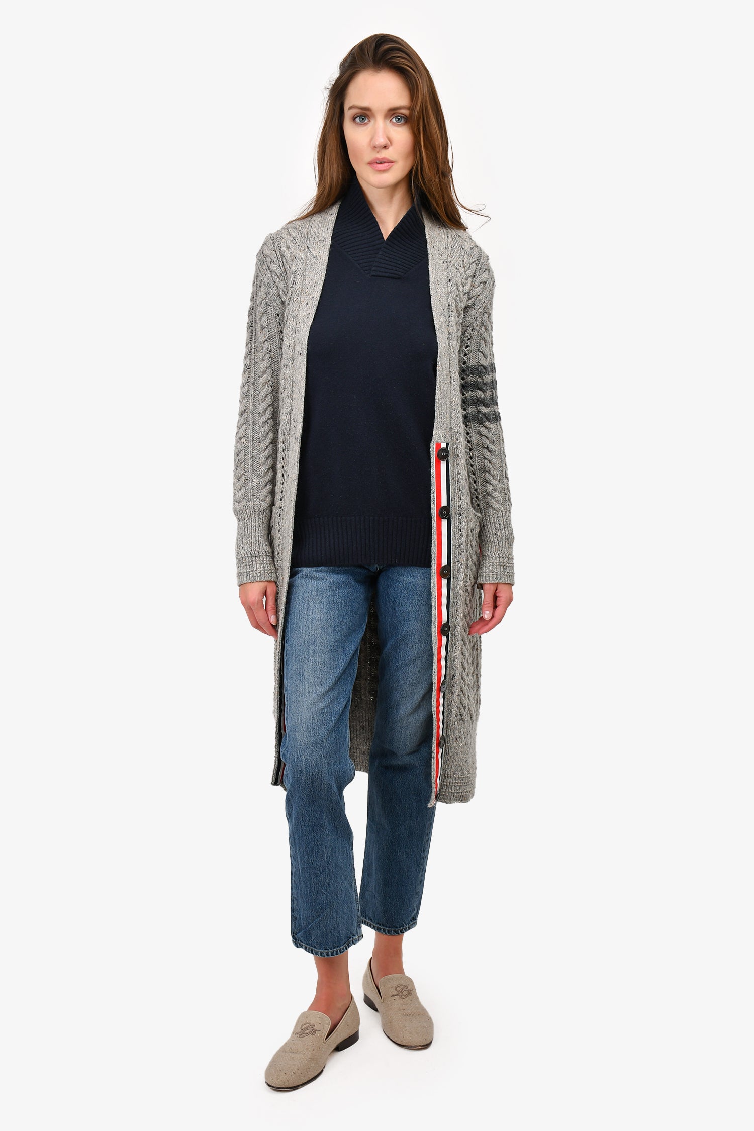 Thom Browne Grey Wool/Mohair Belted Cardigan Size 36