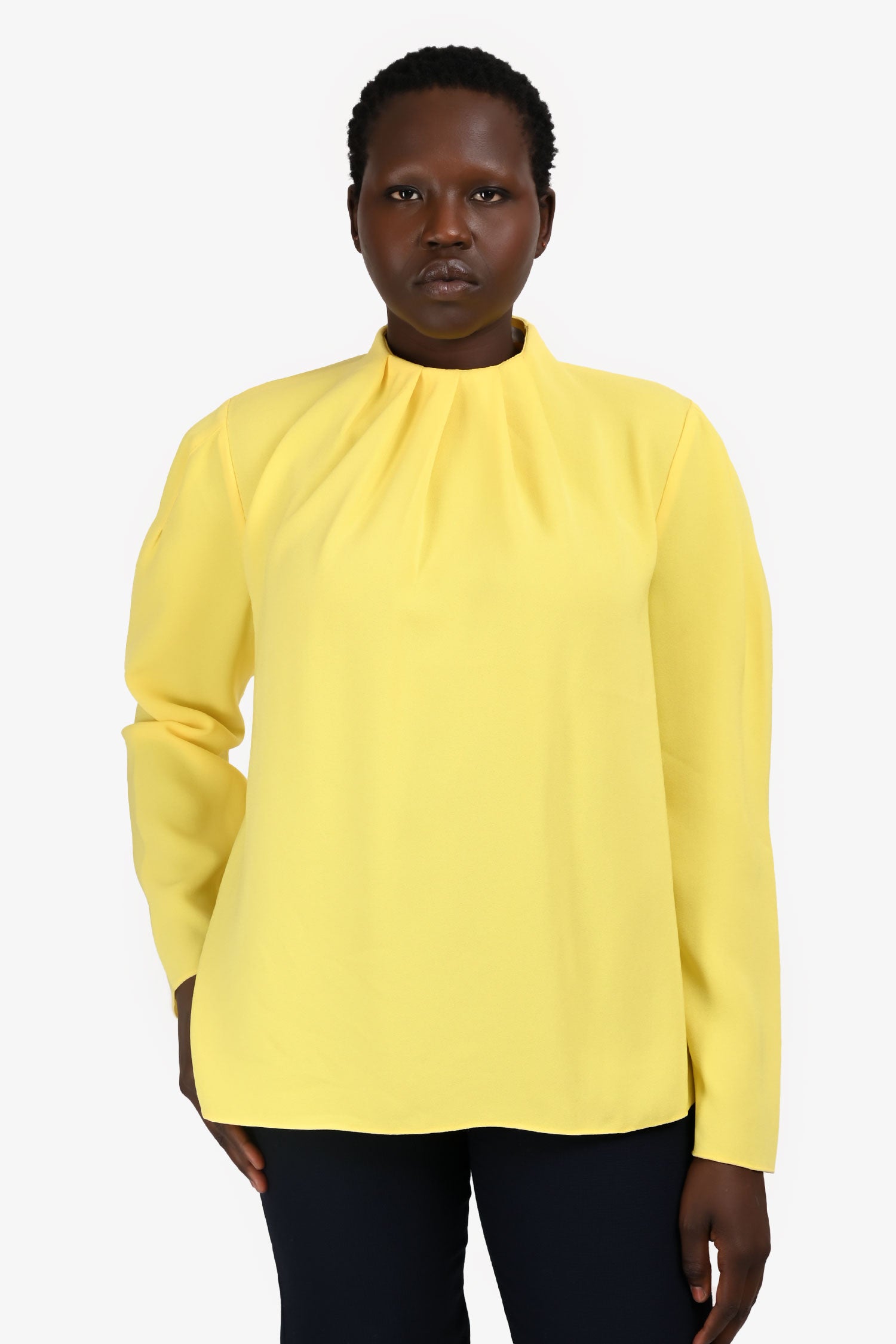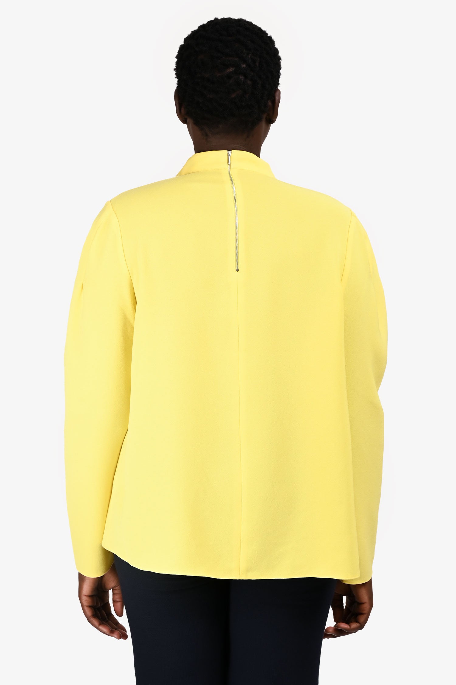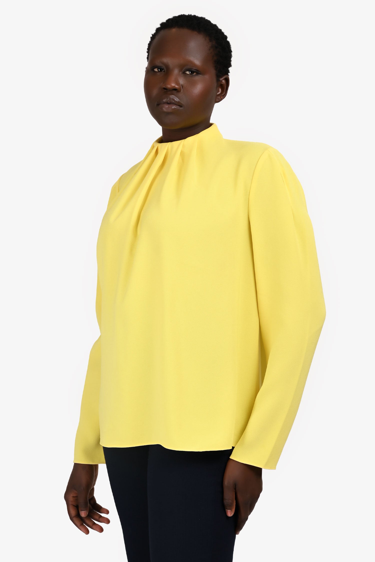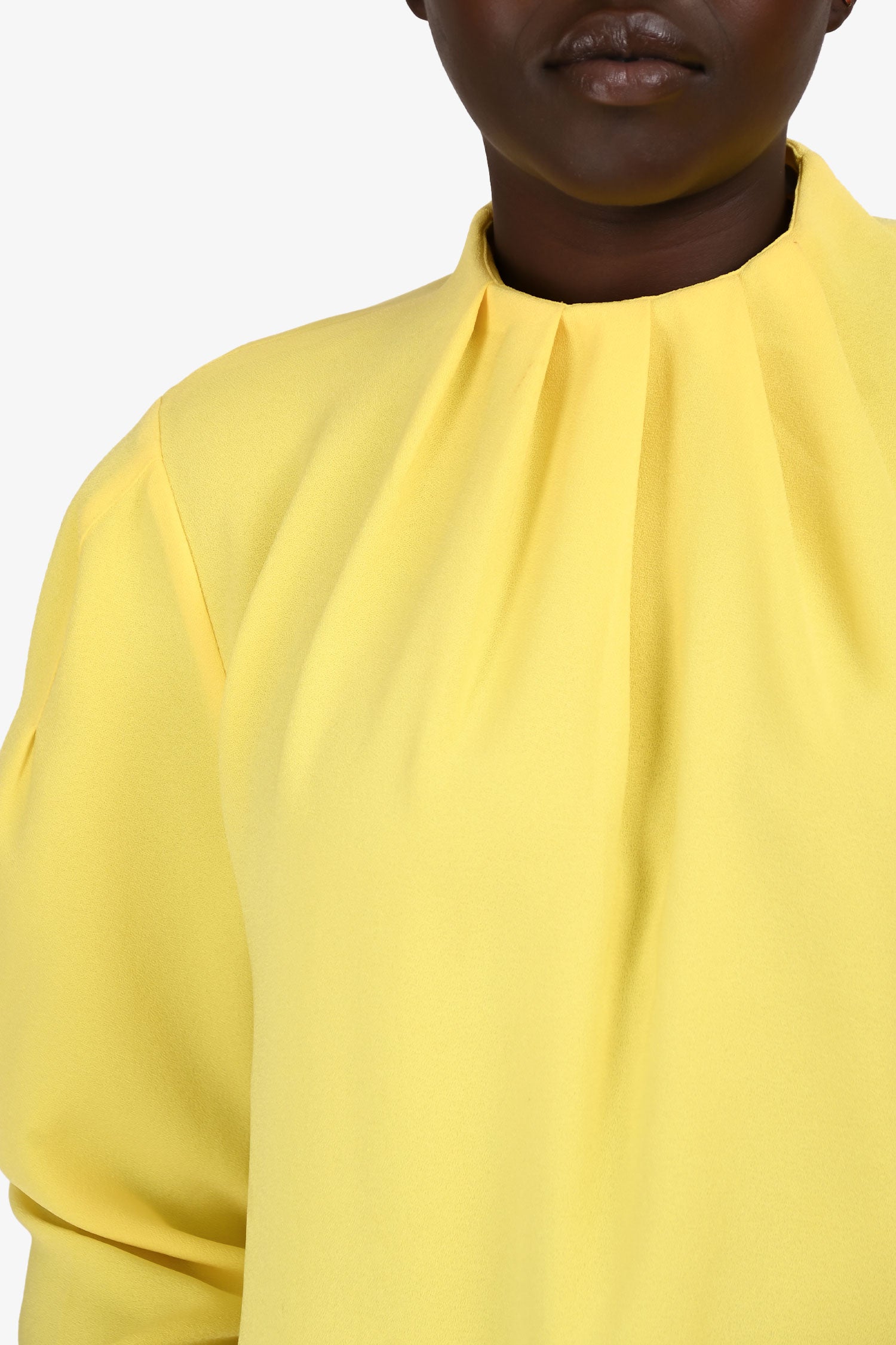 Refresh availabilityTibi Yellow Pleated Mockneck Long Sleeve Blouse. Rear zip closure.