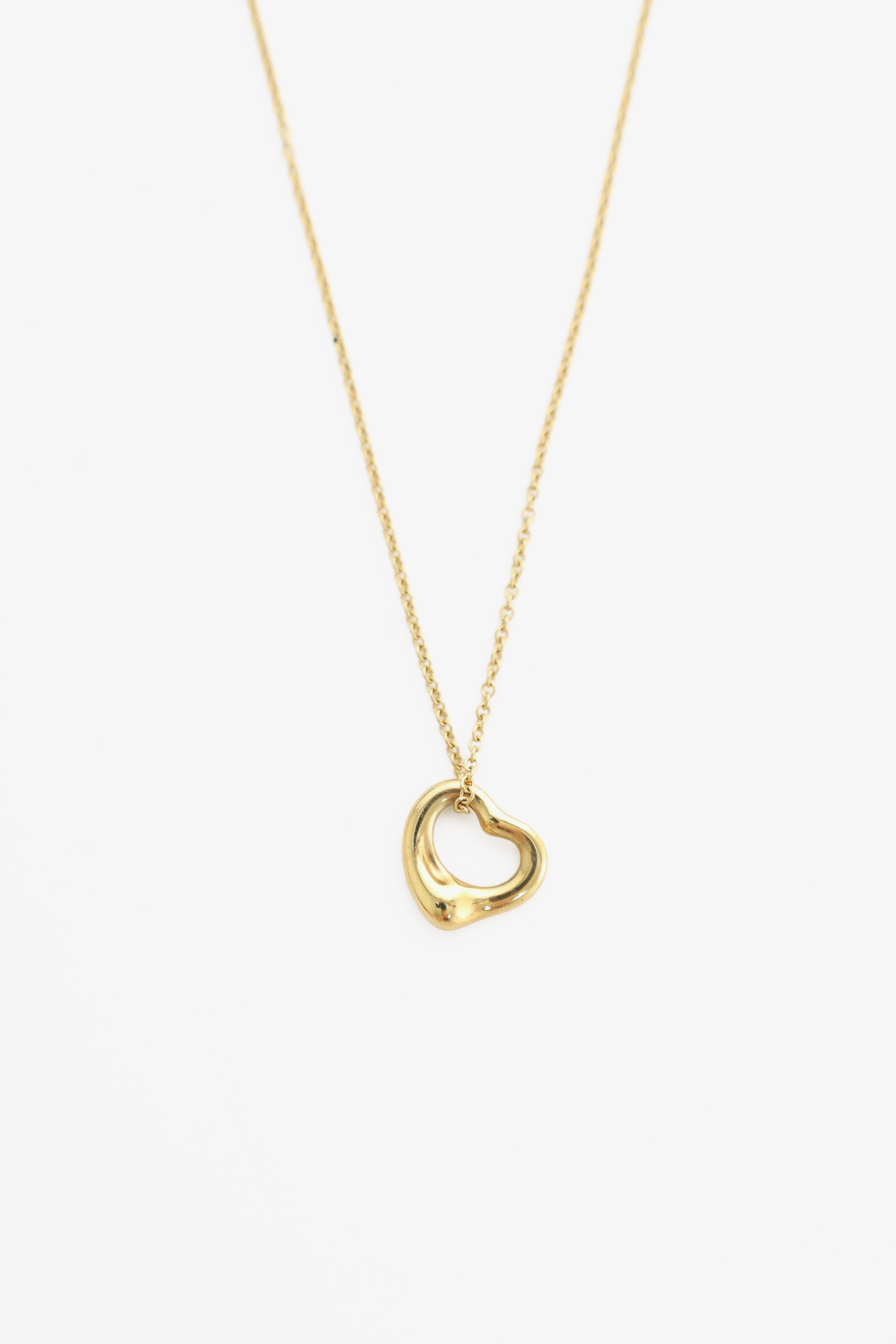 Refresh availabilityTiffany 18K Gold Elsa Peretti Open Heart Pendant Necklace. Spring ring closure.