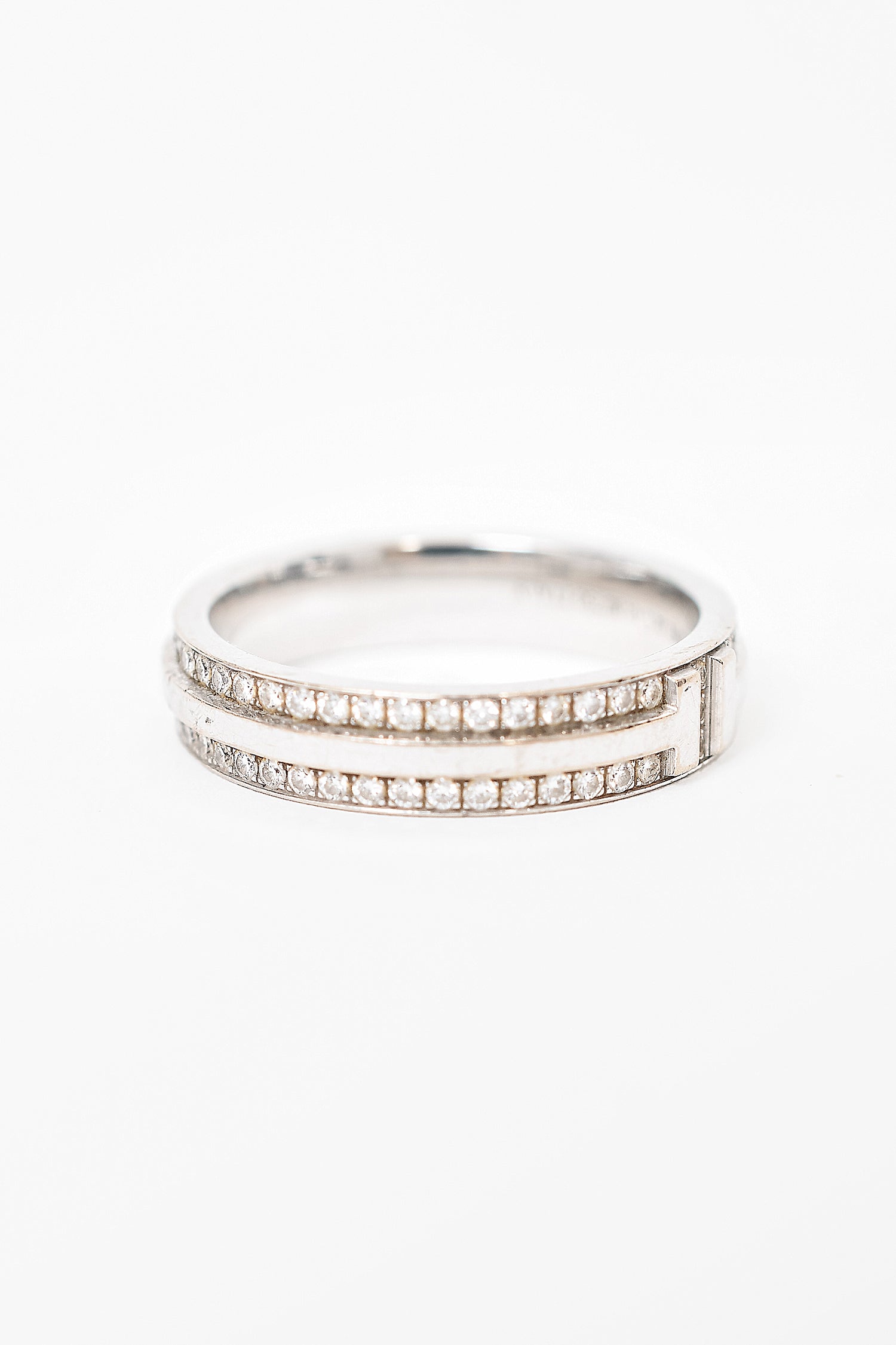 Tiffany & Co 18ct White Gold Tiffany T Narrow Pave Diamond Ring.