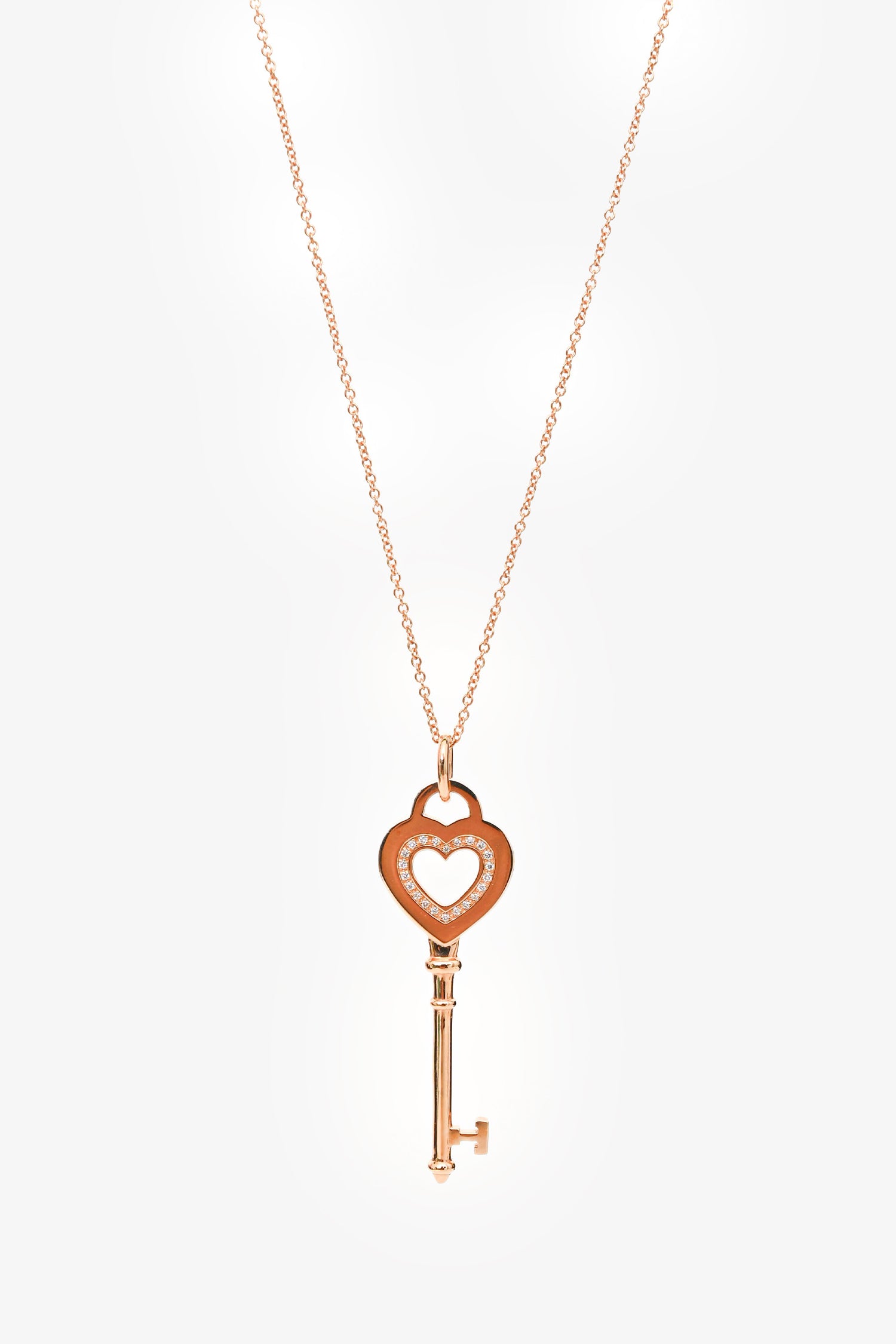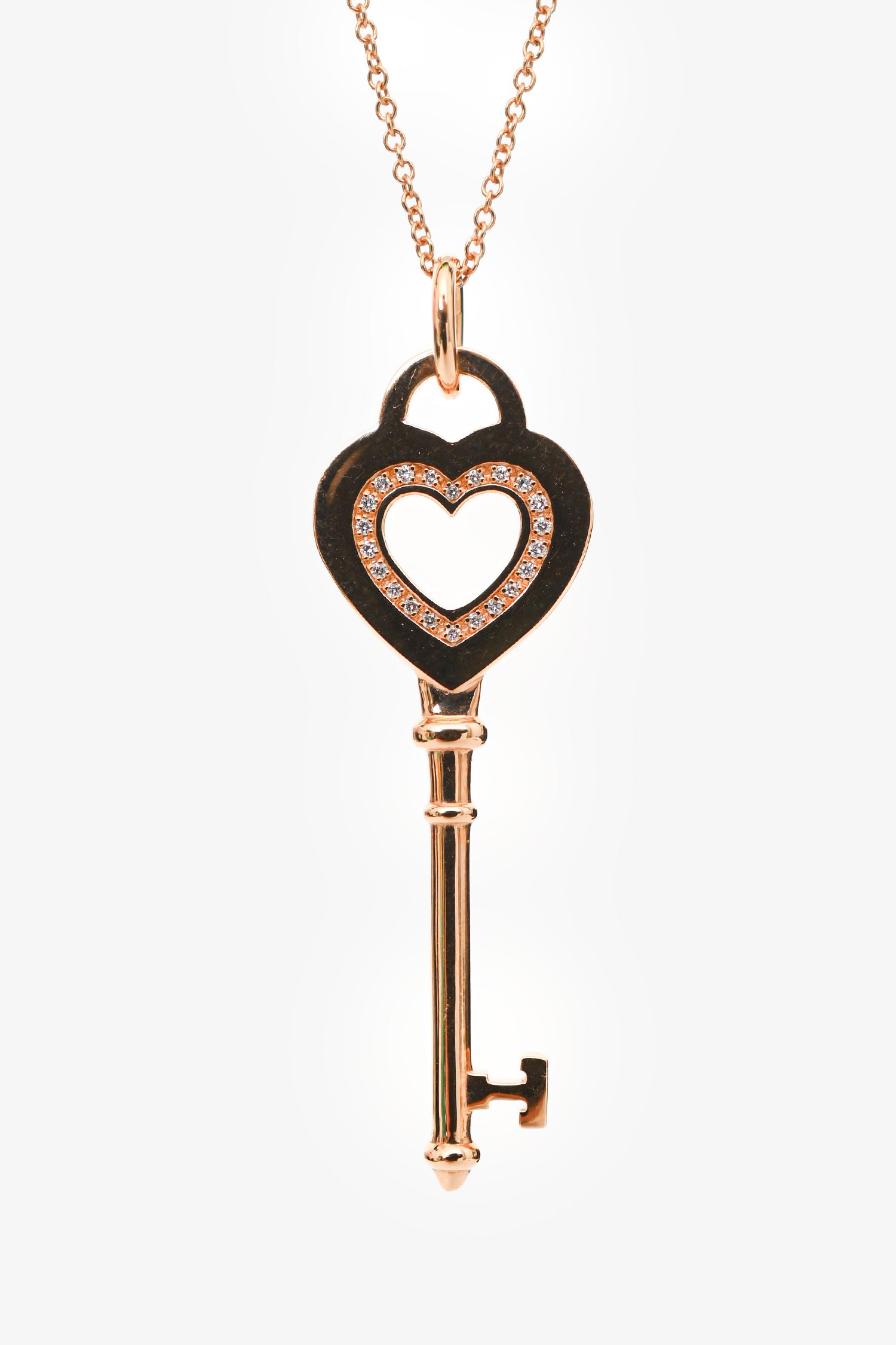 Refresh availabilityTiffany & Co. 18K Rose Gold Diamond Heart Key Necklace. Spring ring closure.