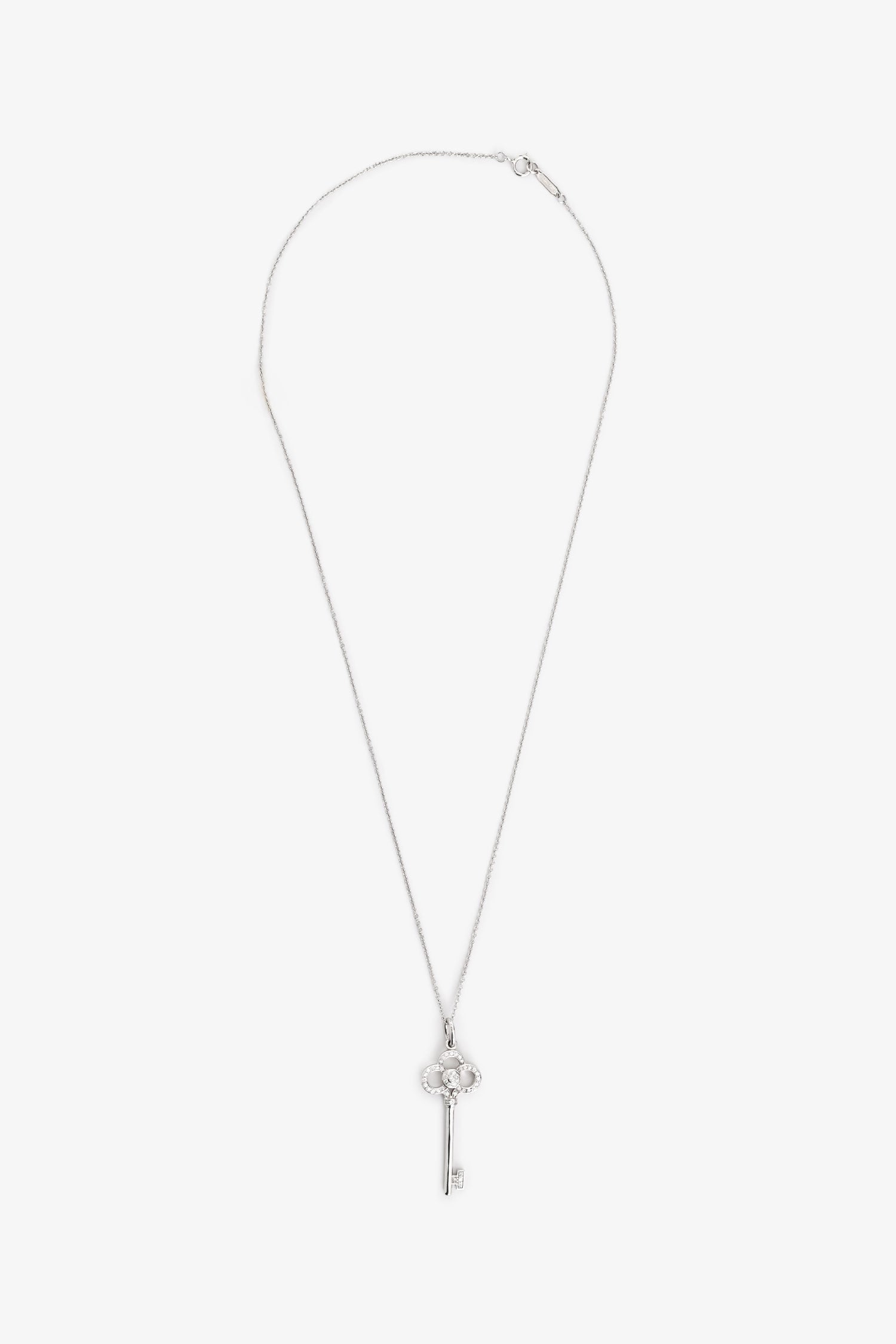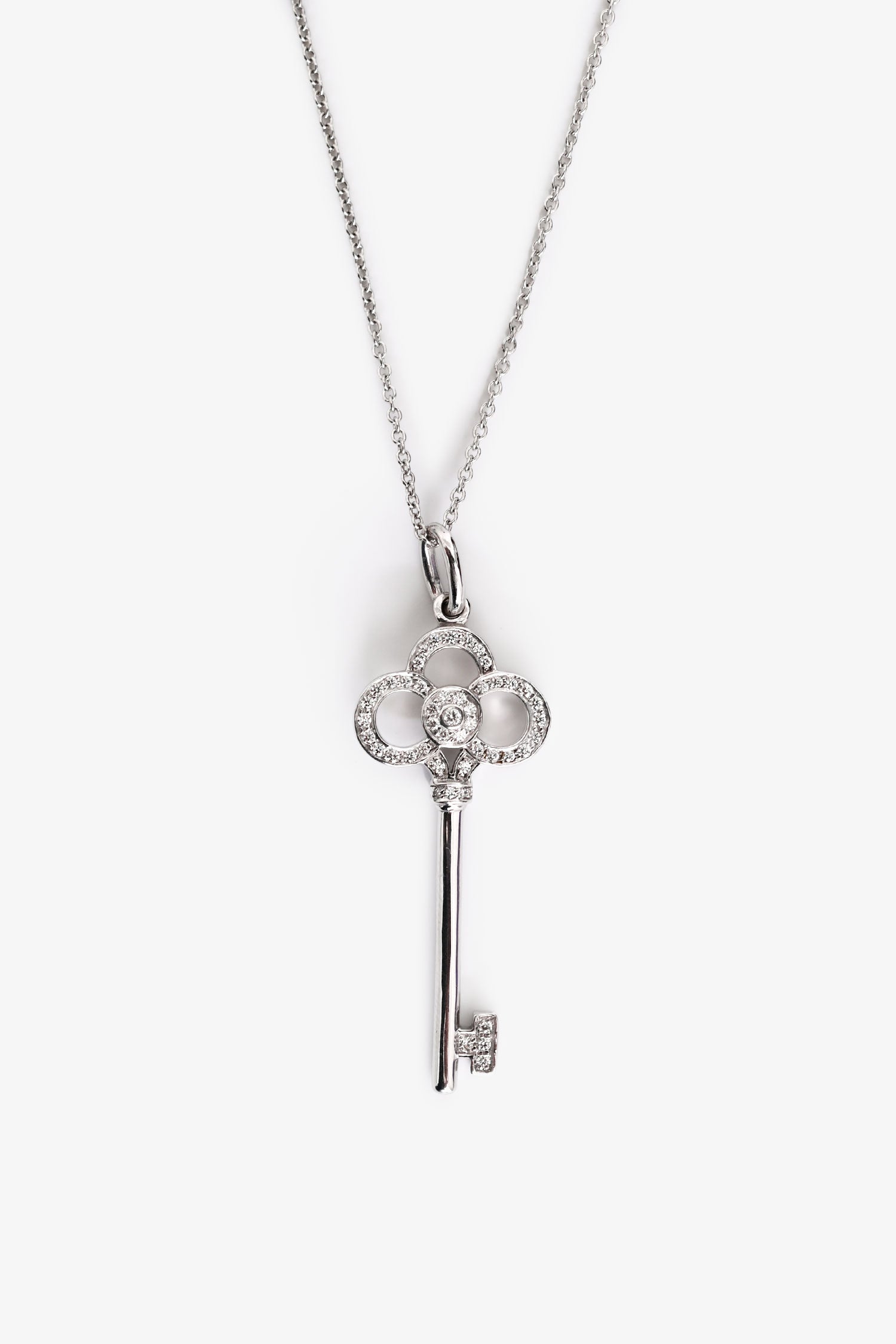 Refresh availabilityTiffany & Co. 18k White Gold Mini Crown Key Pendant with Round Brilliant Diamonds. Spring ring clasp. Silver-tone hardware.