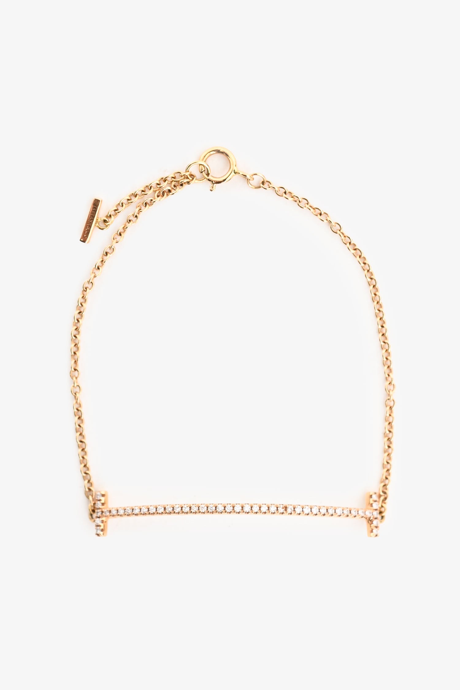 Refresh availabilityTiffany & Co. 18K Yellow Gold Diamond Set Tiffany T Bracelet. Adjustable with spring ring closure.