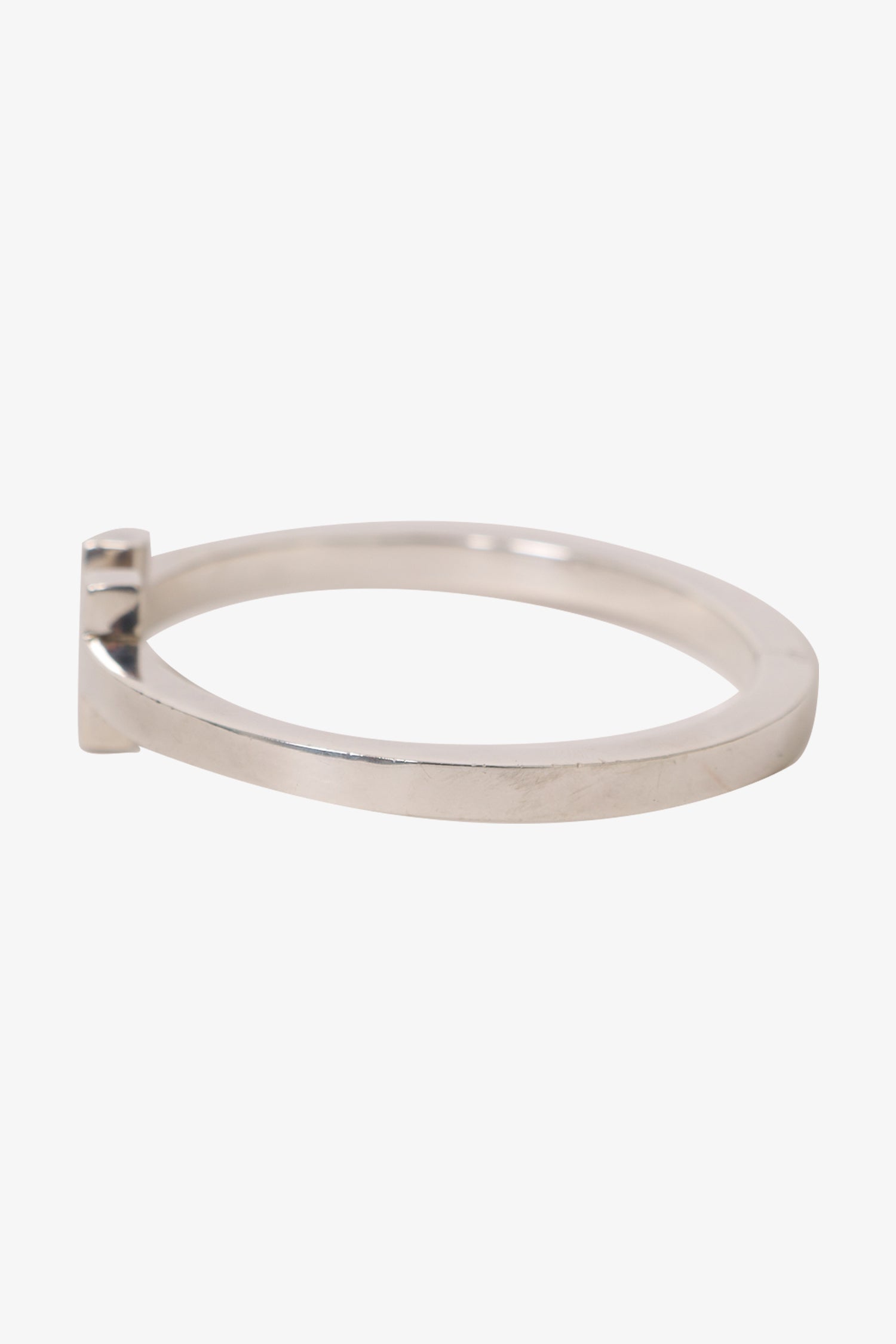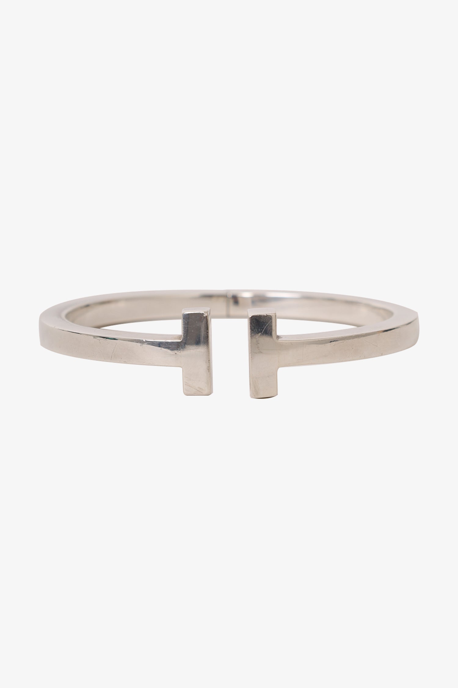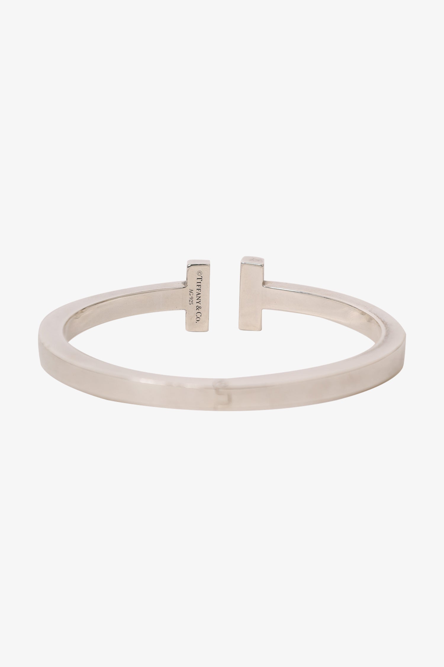 Tiffany & Co Silver T Square Bracelet. Open bracelet. Hinge at the back.