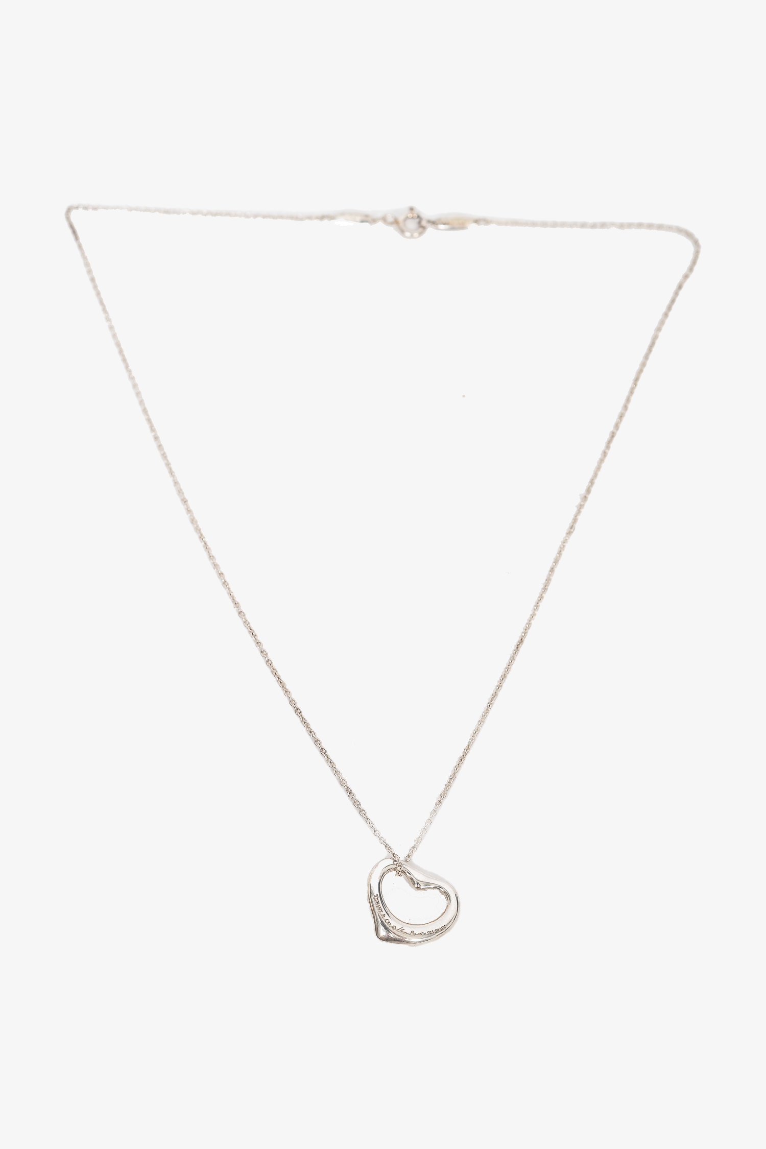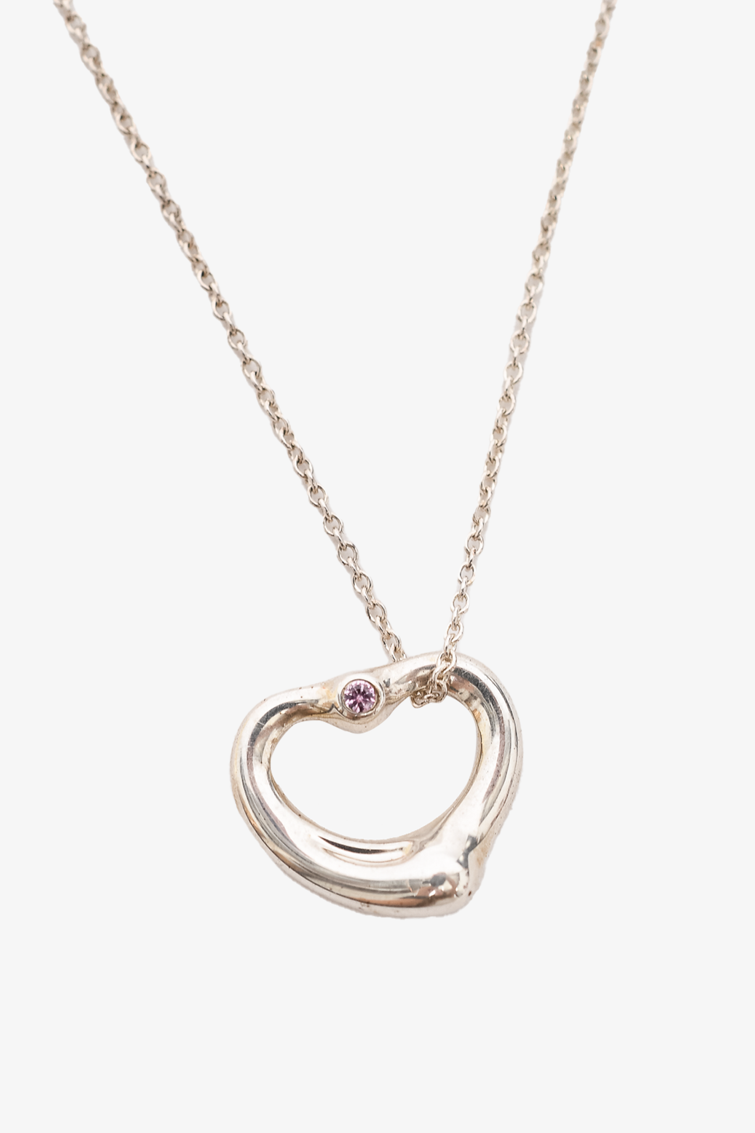 Tiffany & Co. Sterling Silver Small Open Heart Pendant Necklace with Pink Sapphire