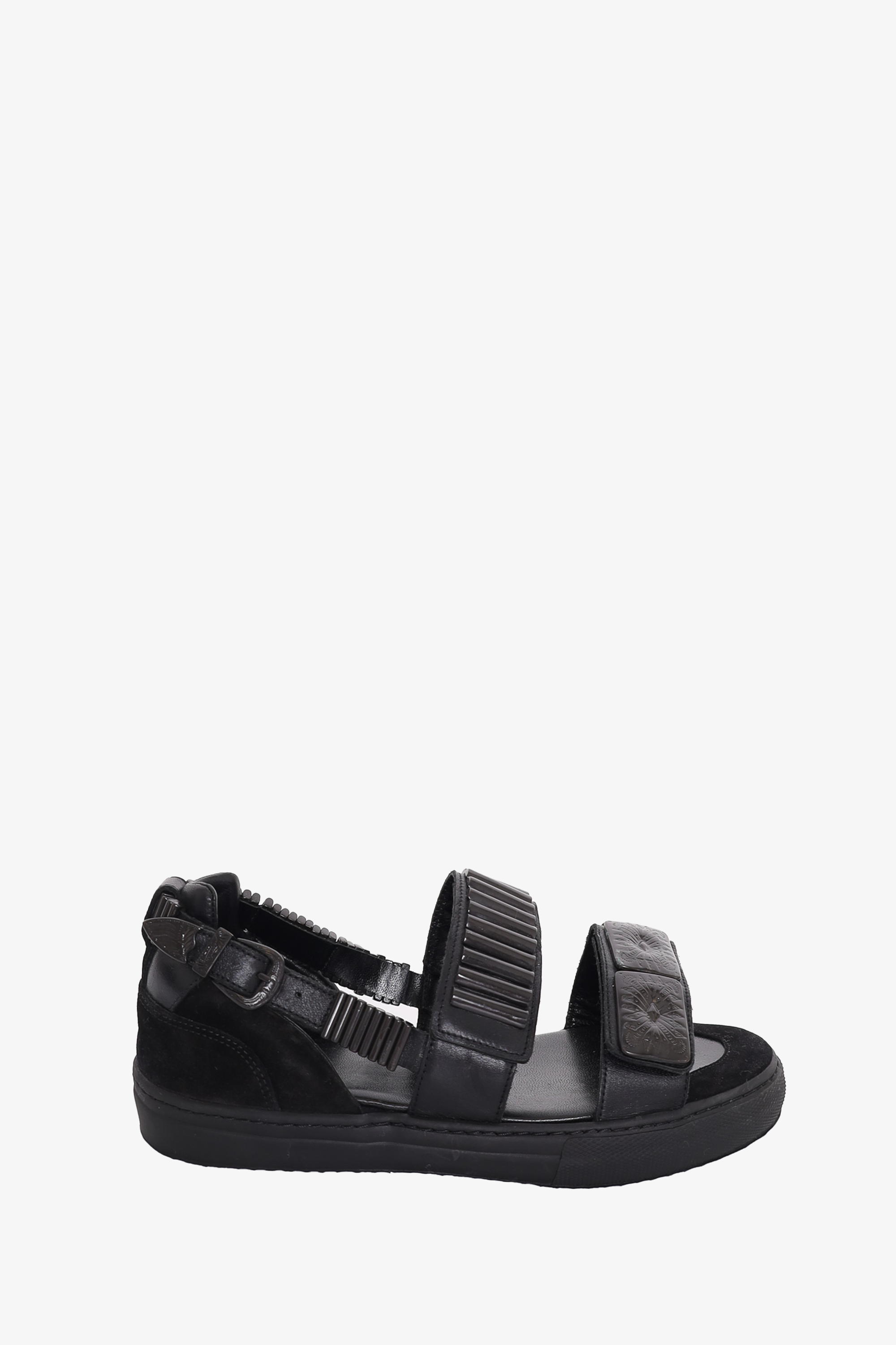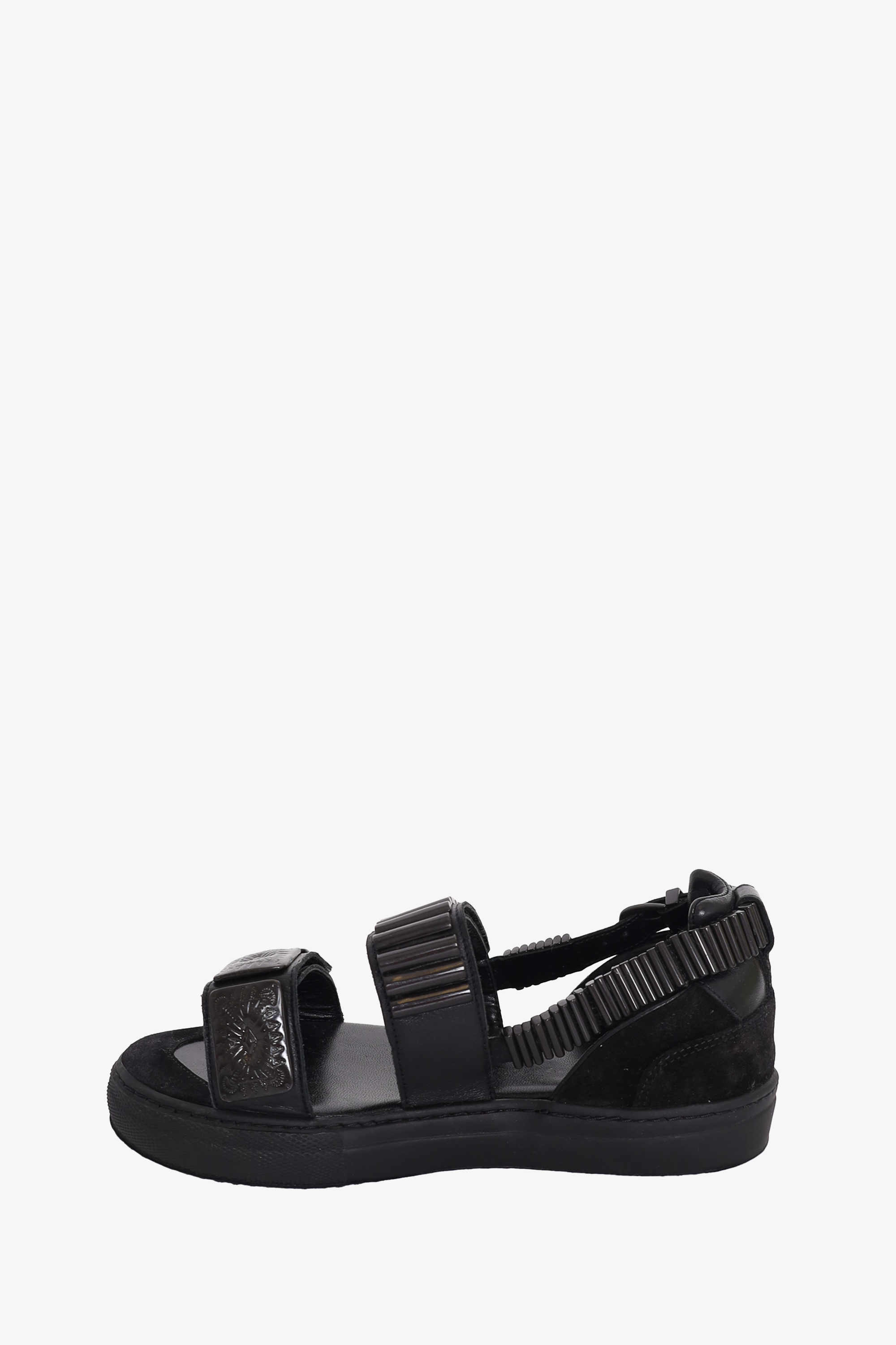 Toga Pulla Black Leather Buckled Flat Sandals Size 38